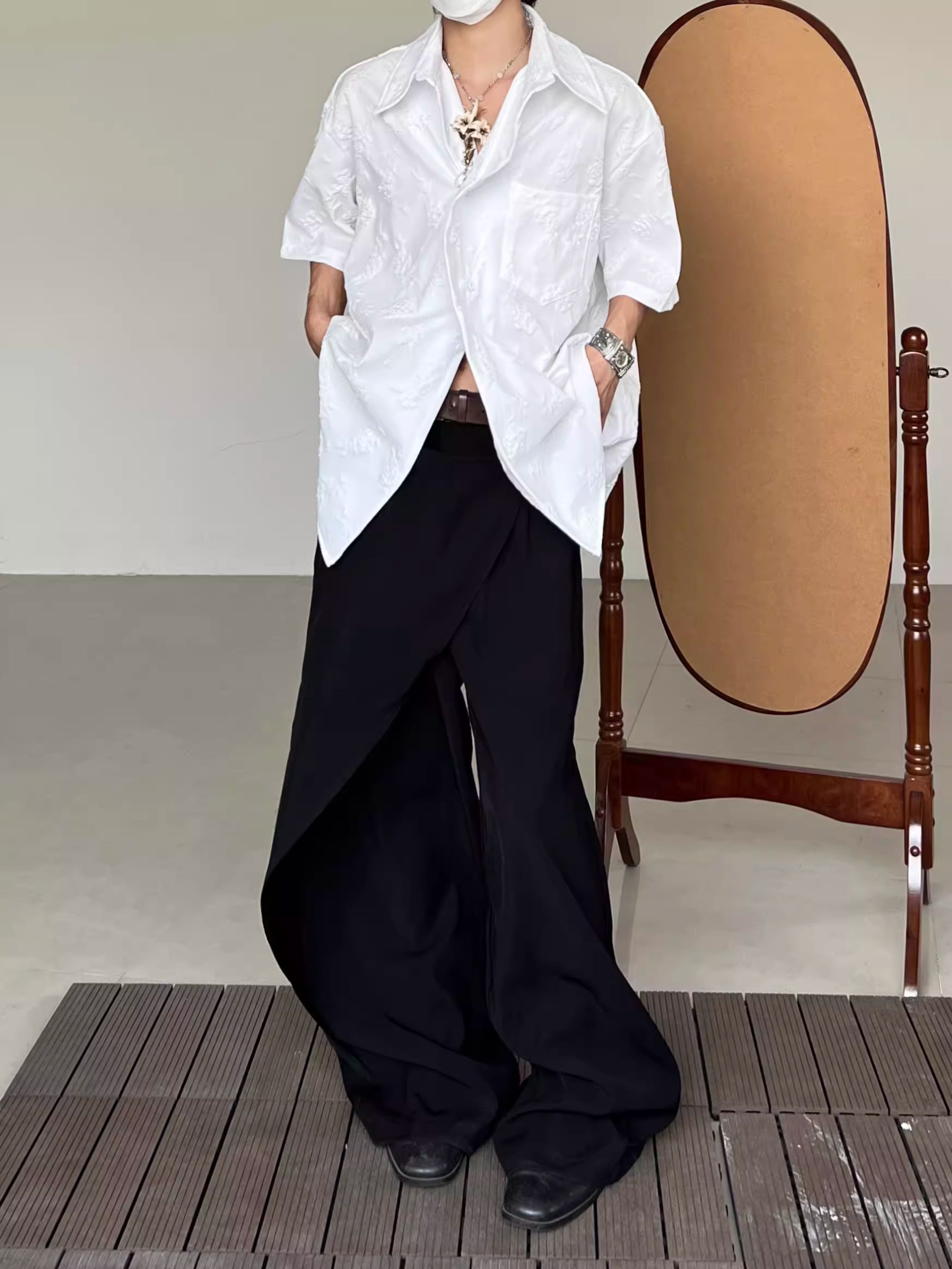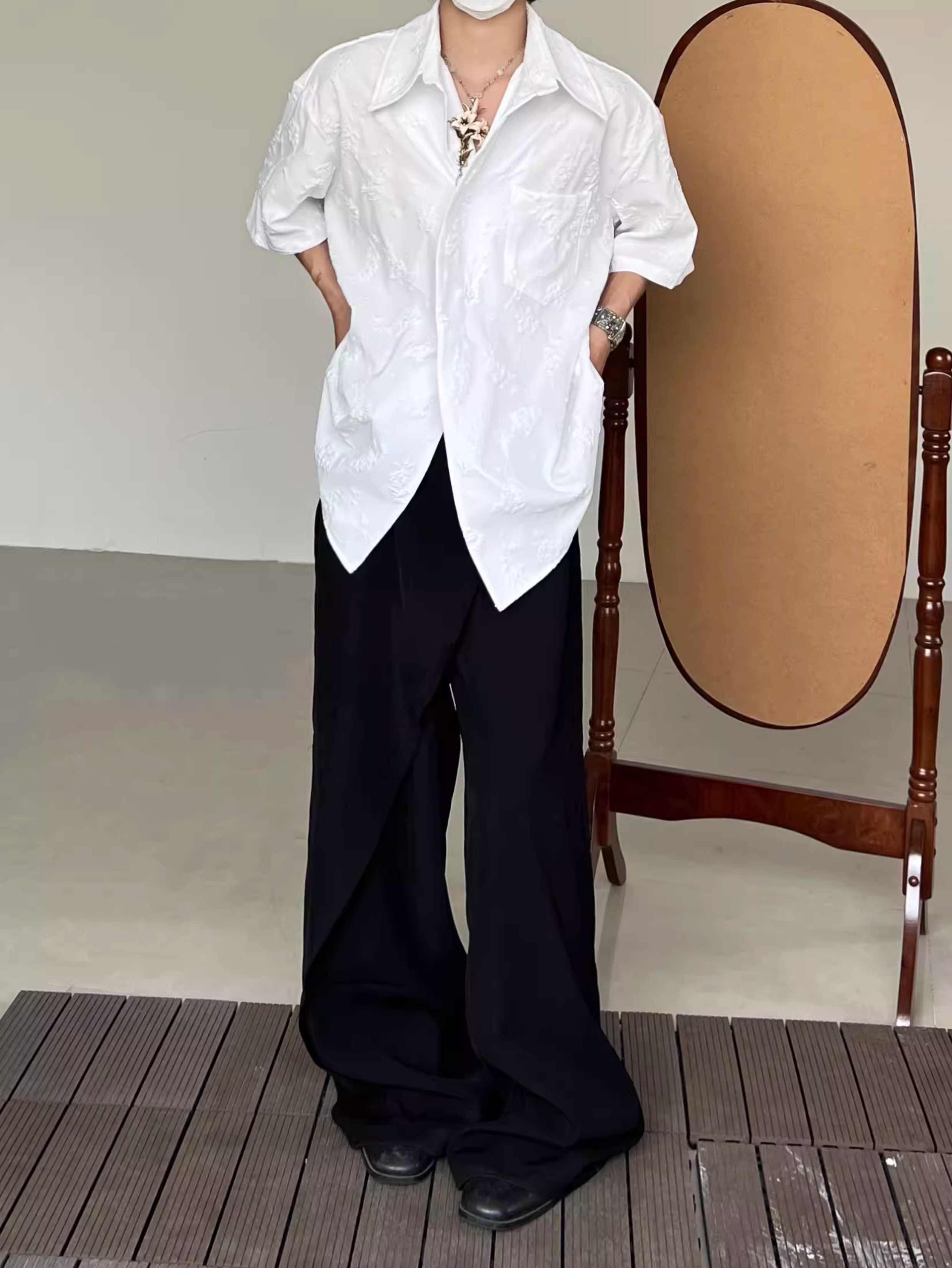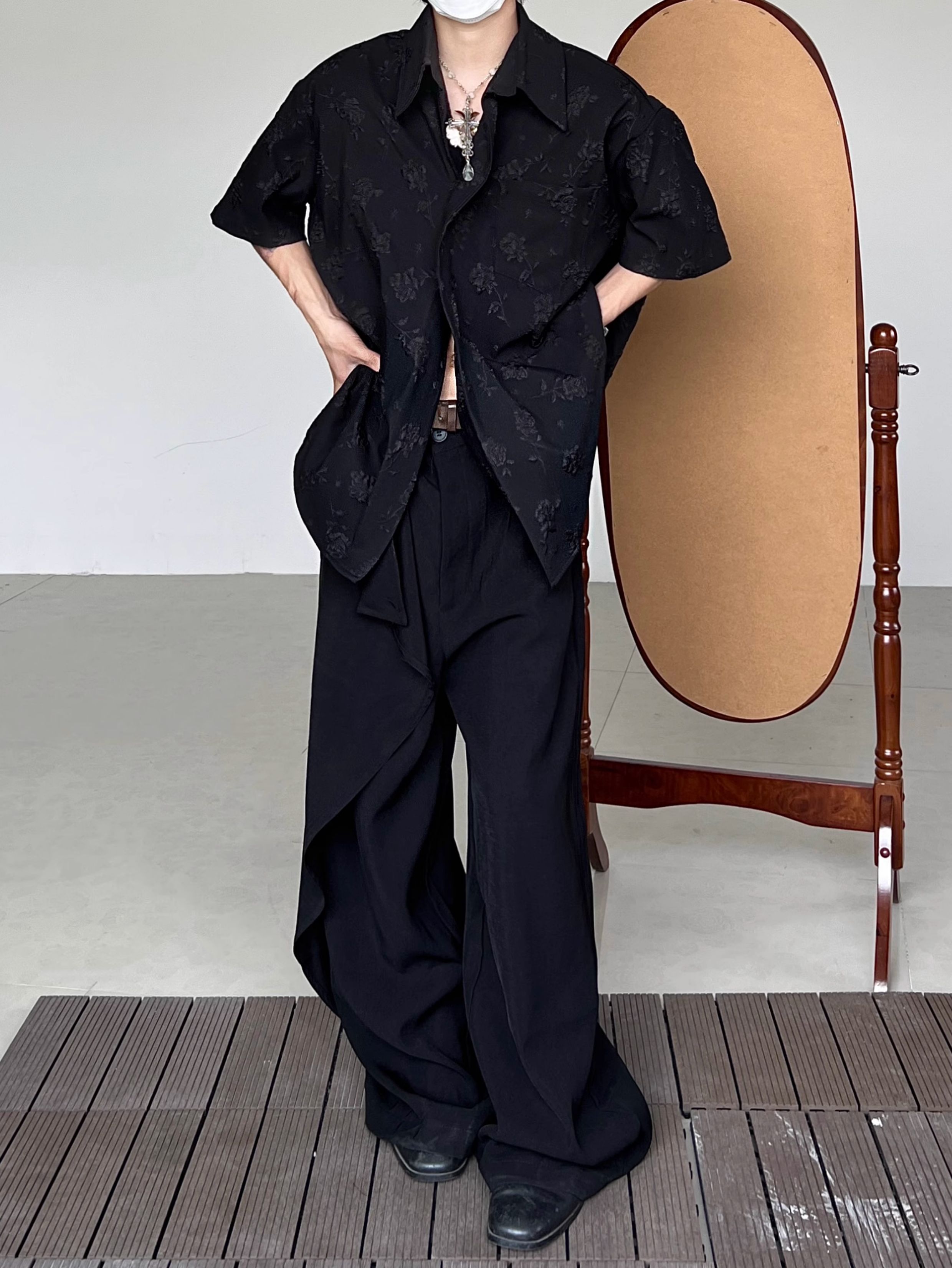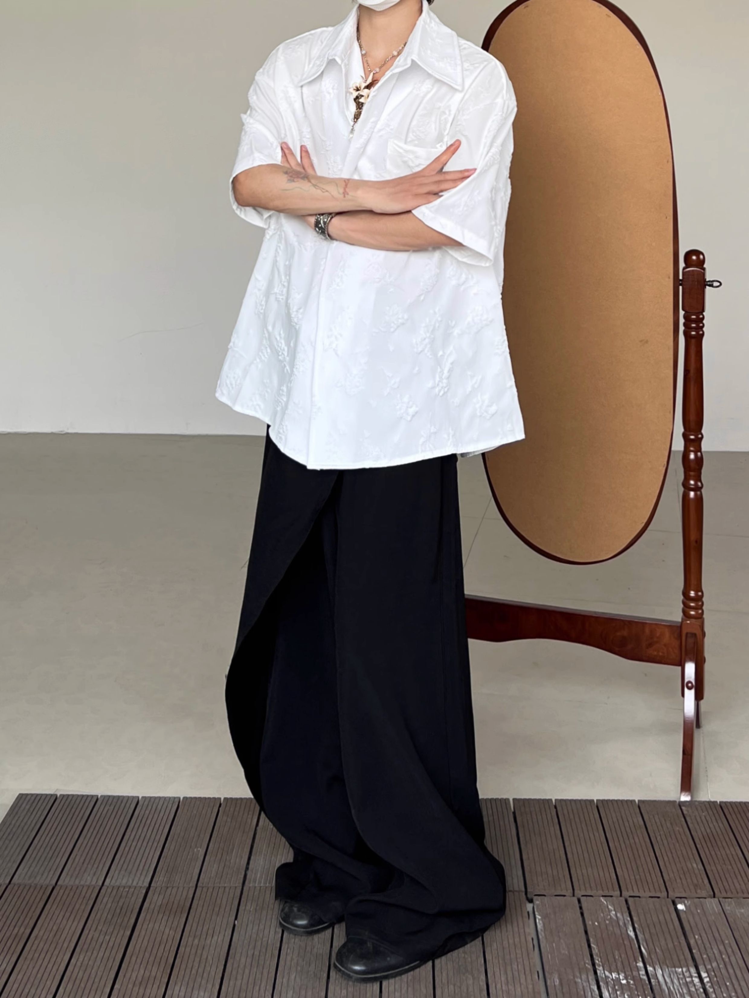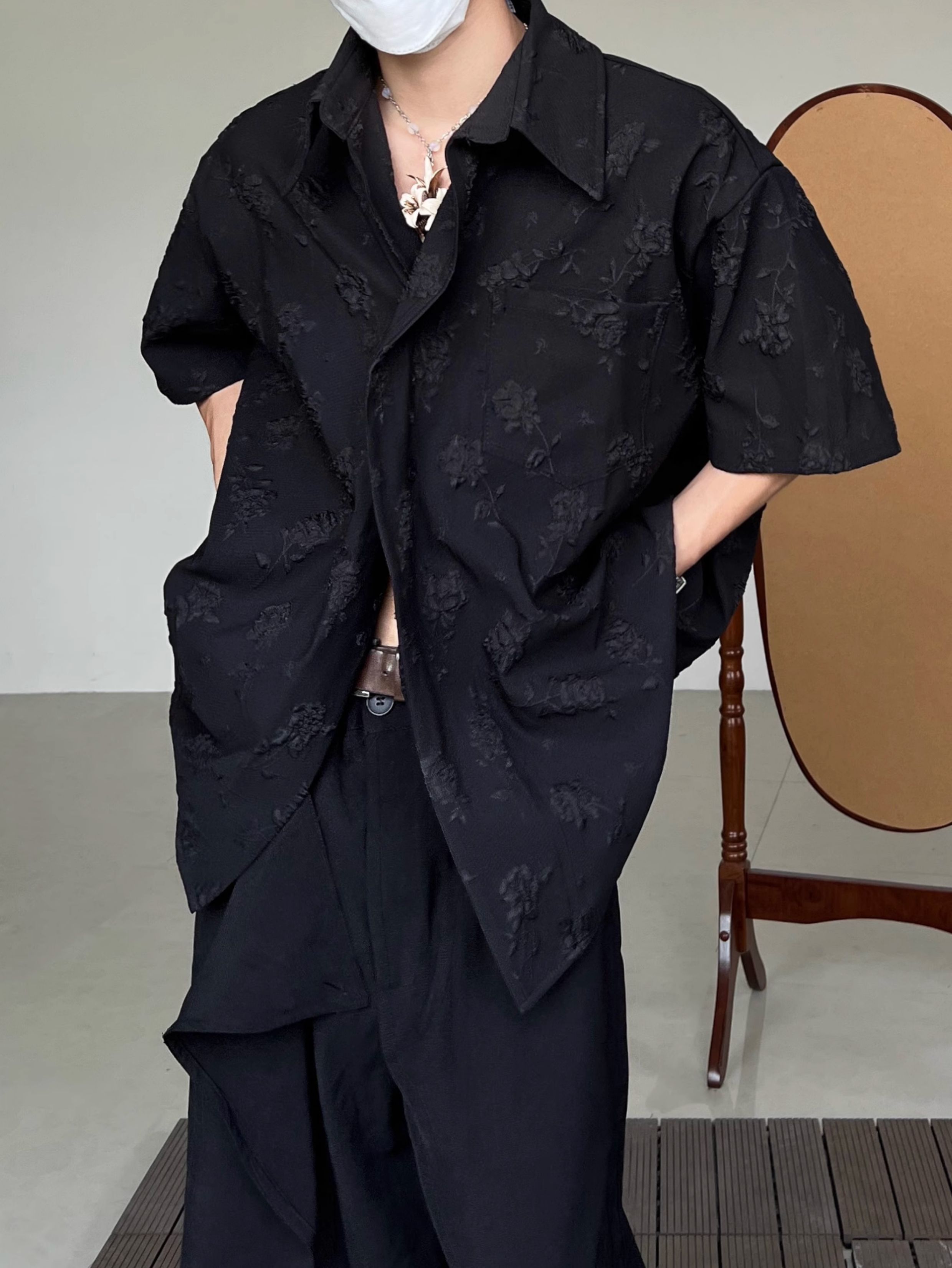Embroidery Floral Two-Button Jacquard Short Sleeve Shirt WN20018