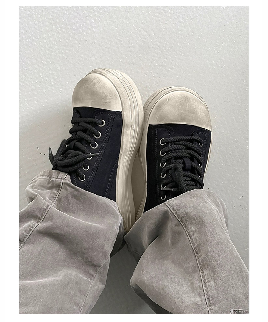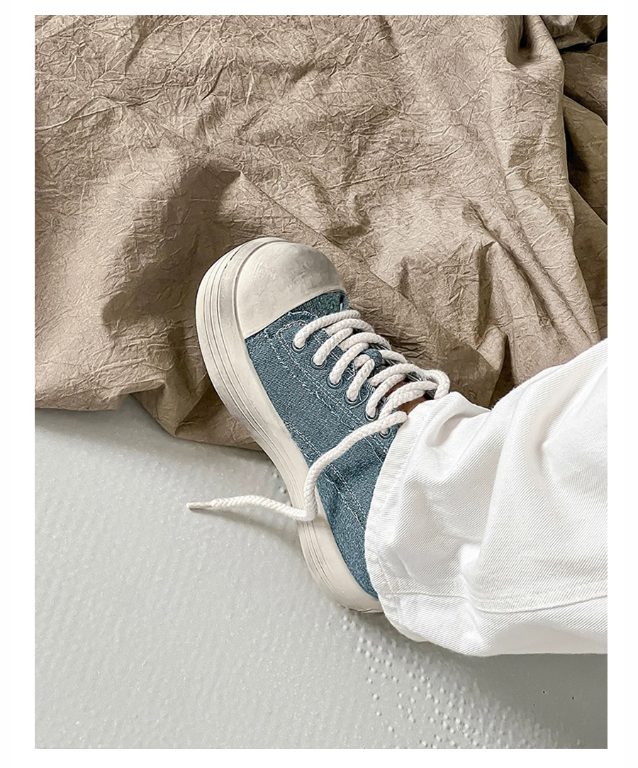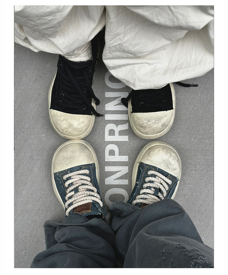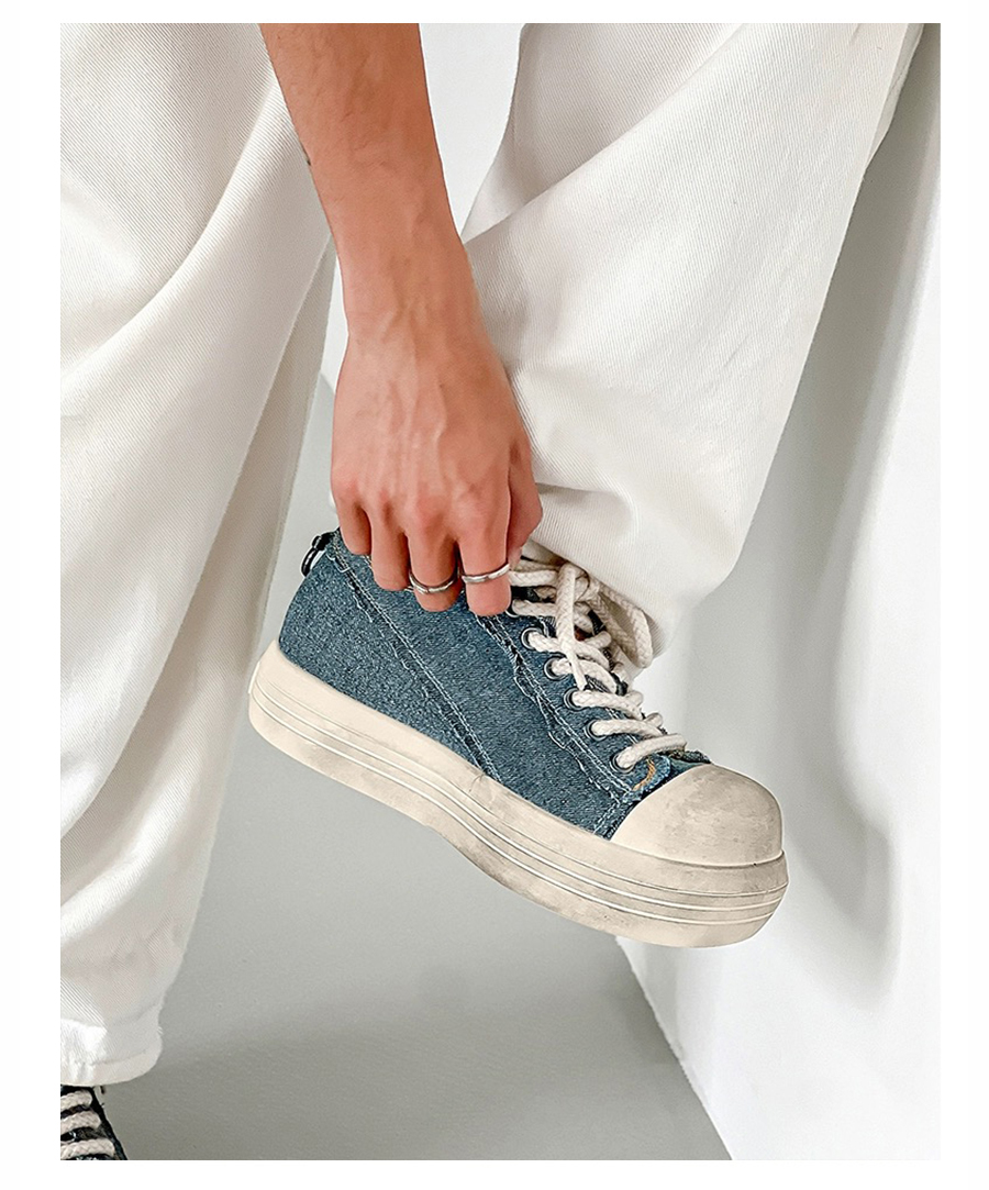 Chunky Sole Dirty Wash Denim Canvas Shoes WN20781