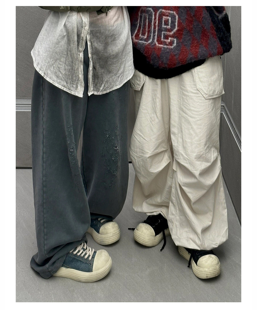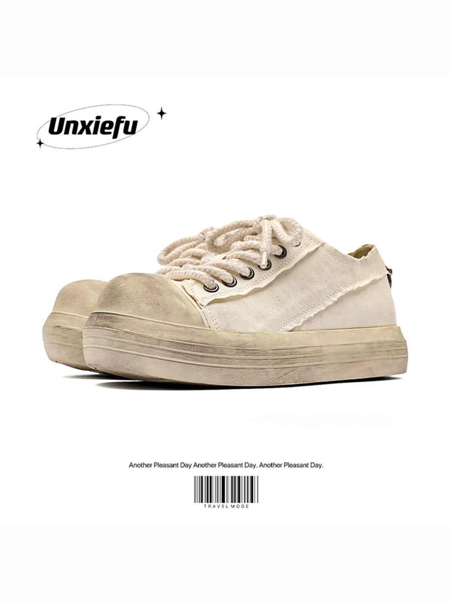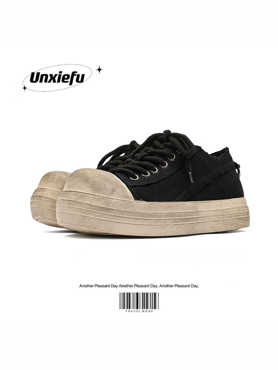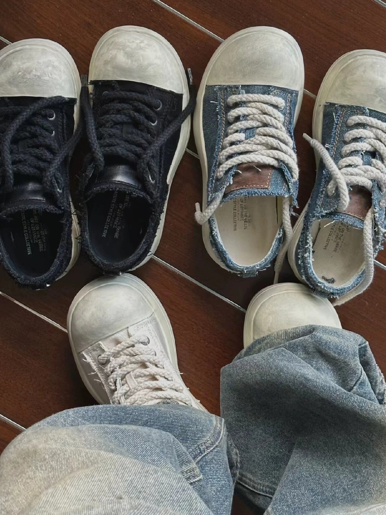 Chunky Sole Dirty Wash Denim Canvas Shoes WN20781