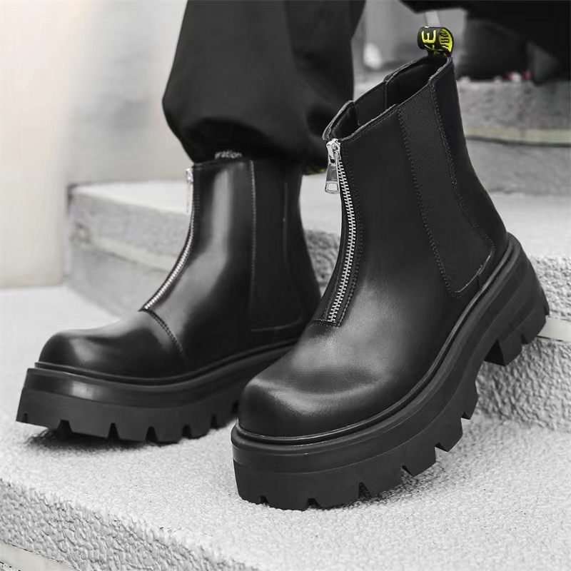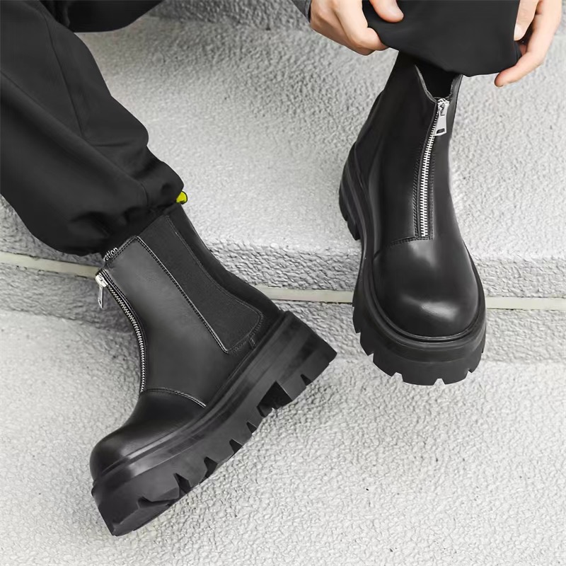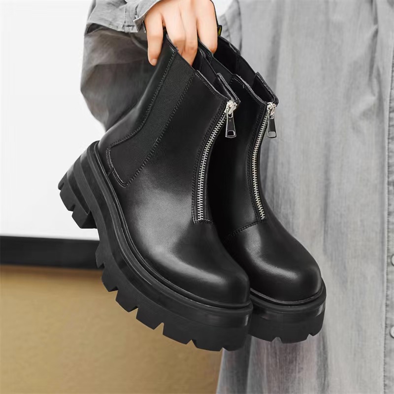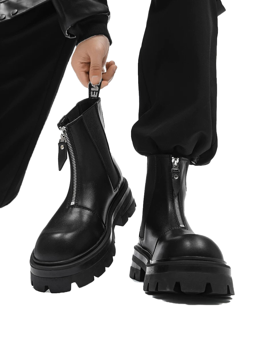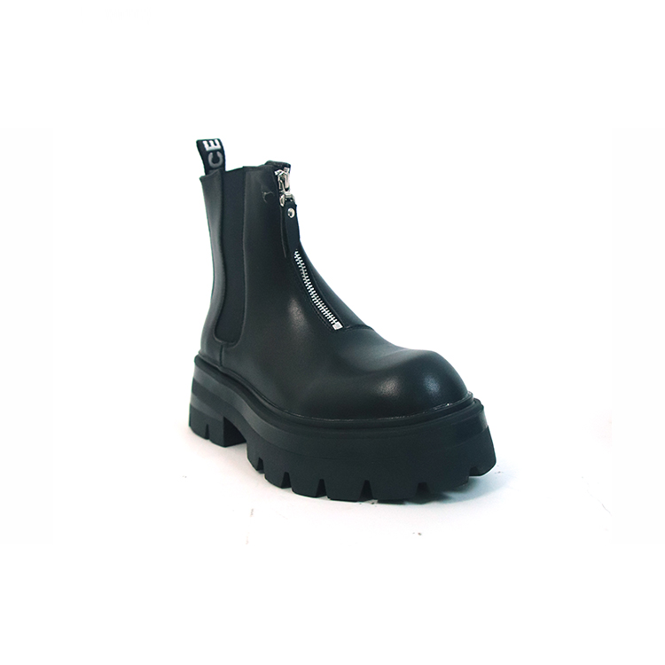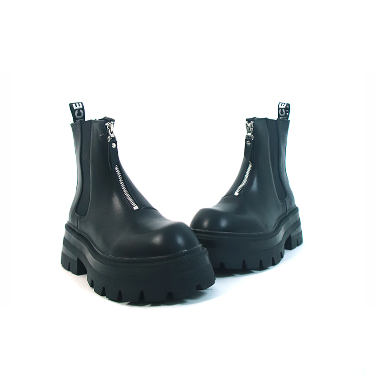 Chunky Sole Leather Zipper Chelsea Boots WN20786