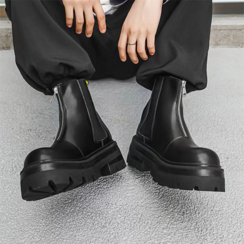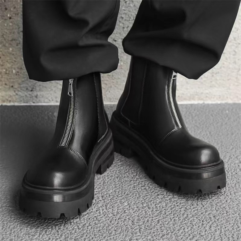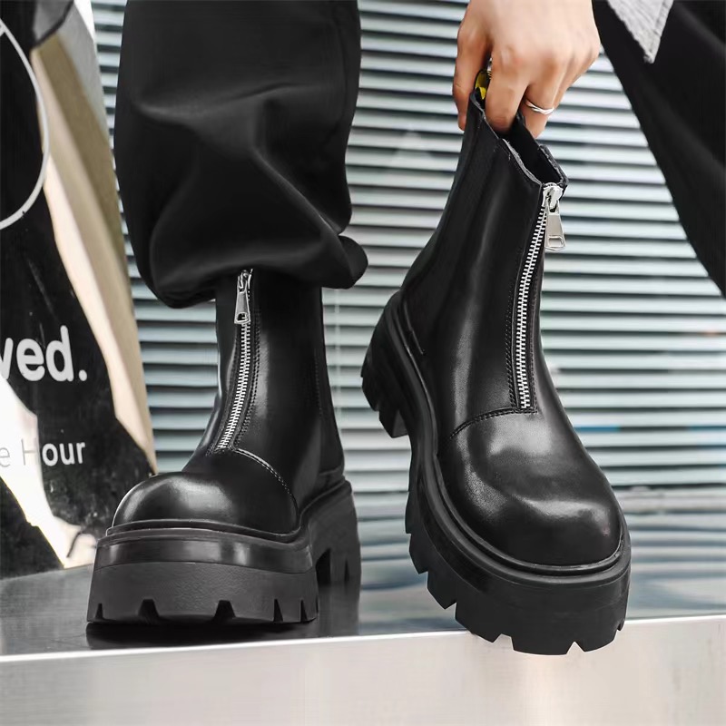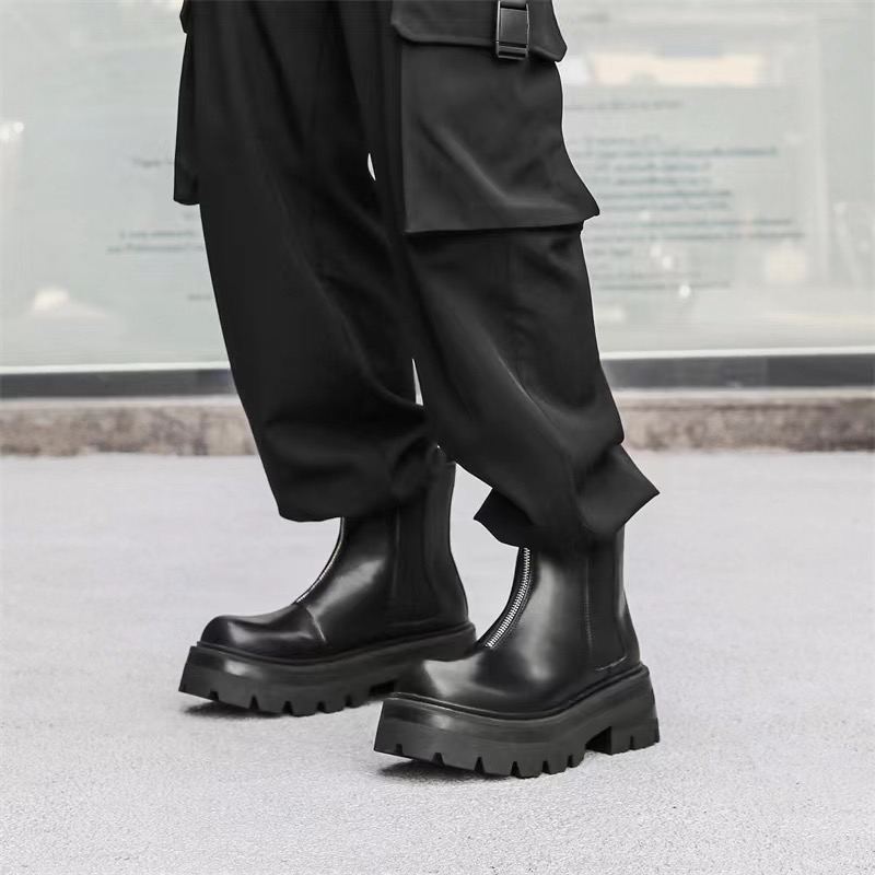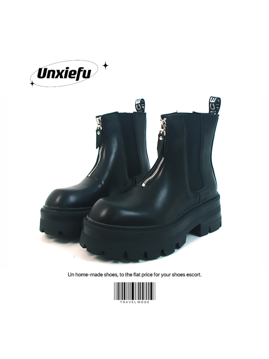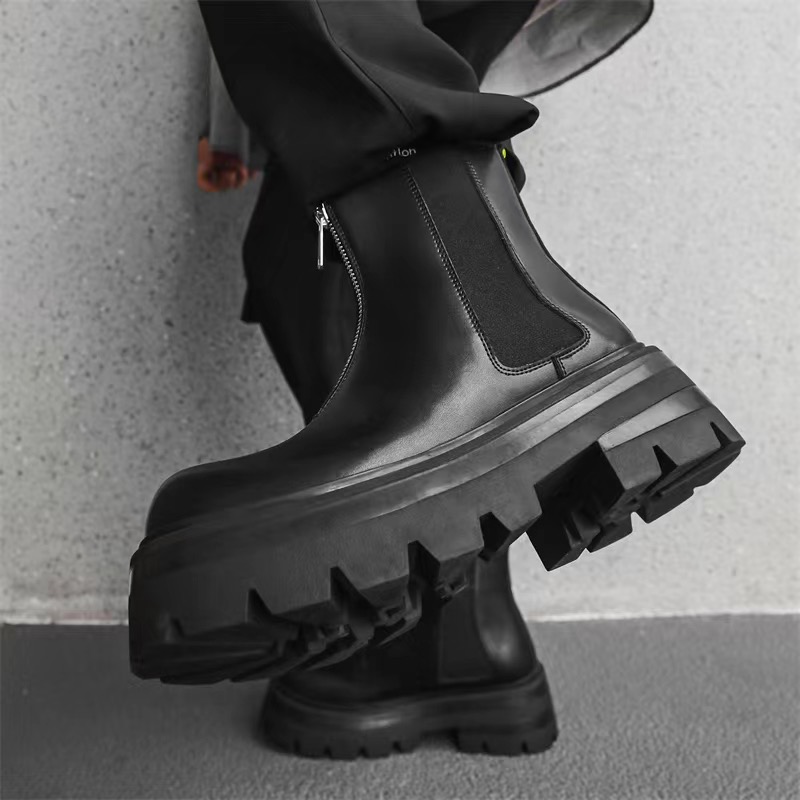 Chunky Sole Leather Zipper Chelsea Boots WN20786