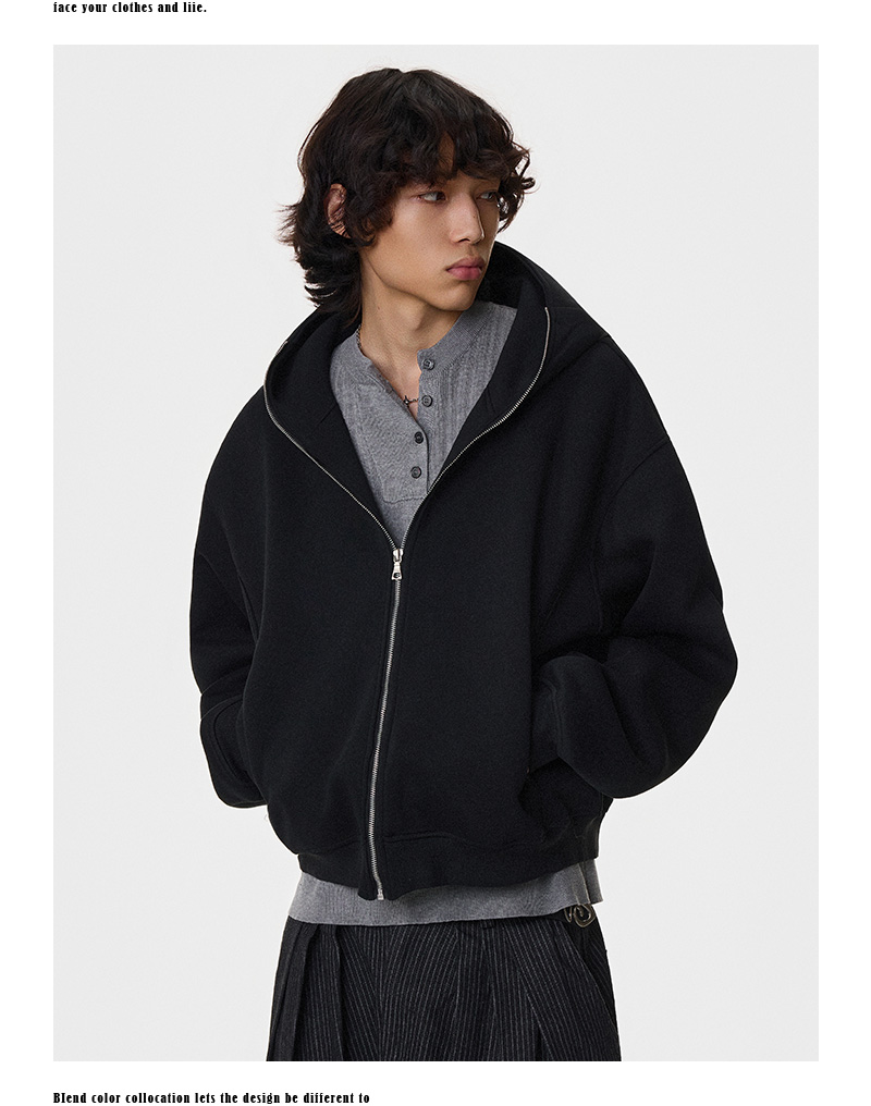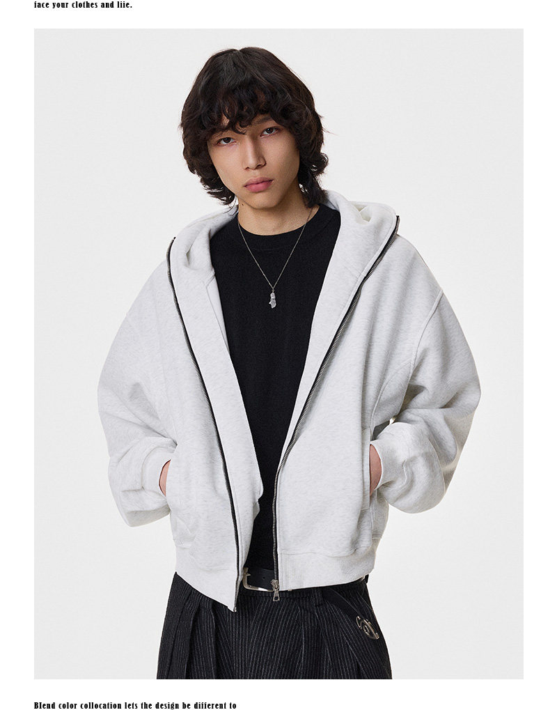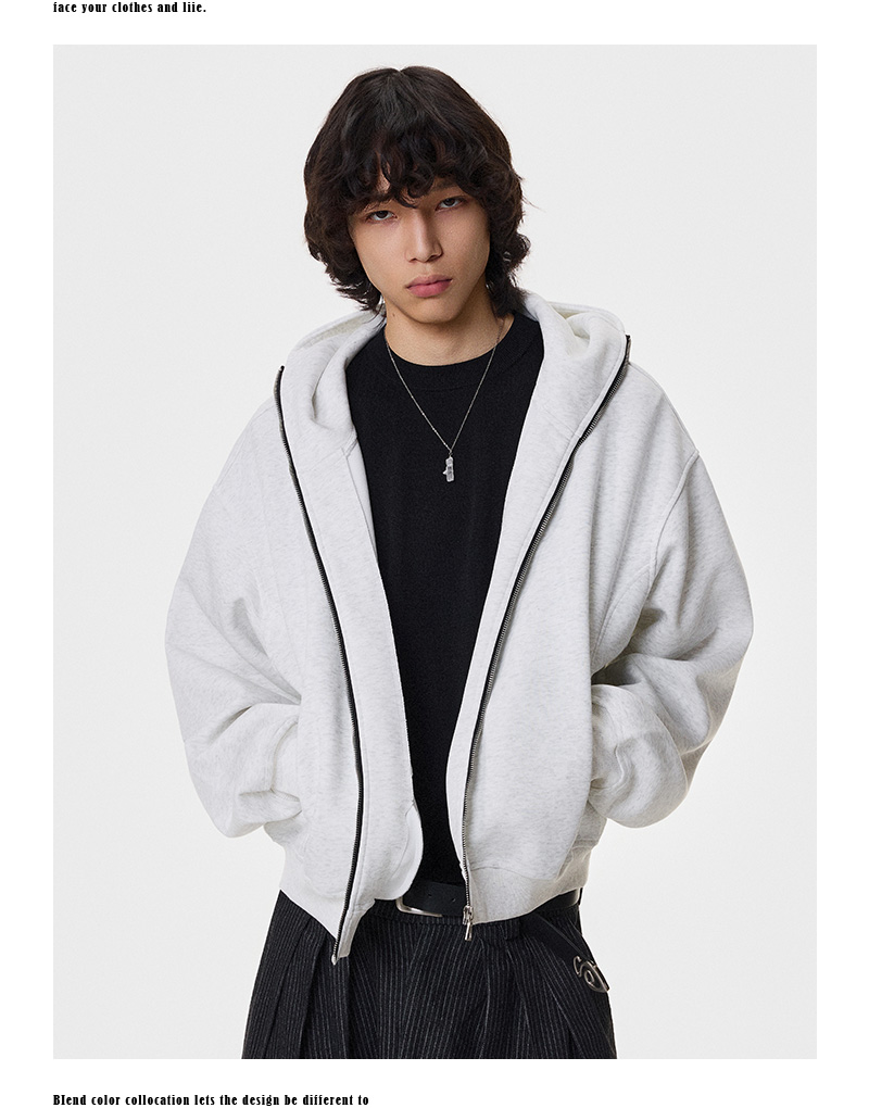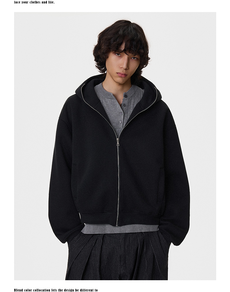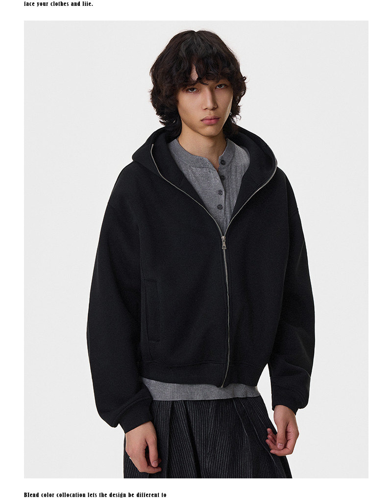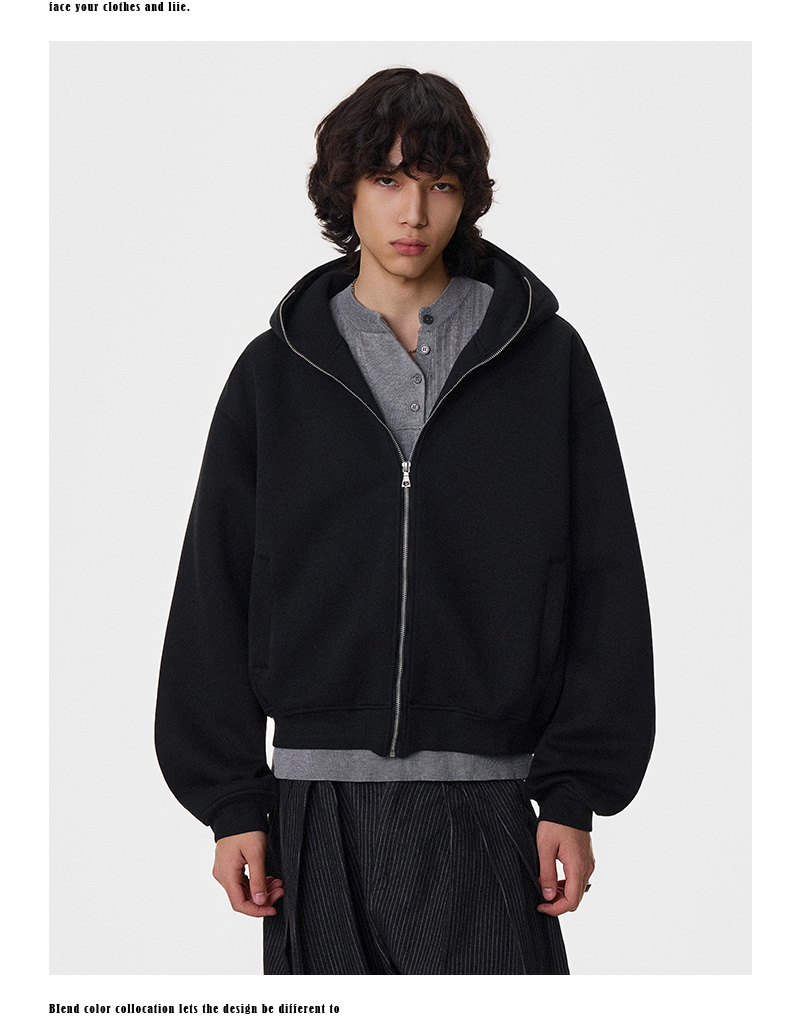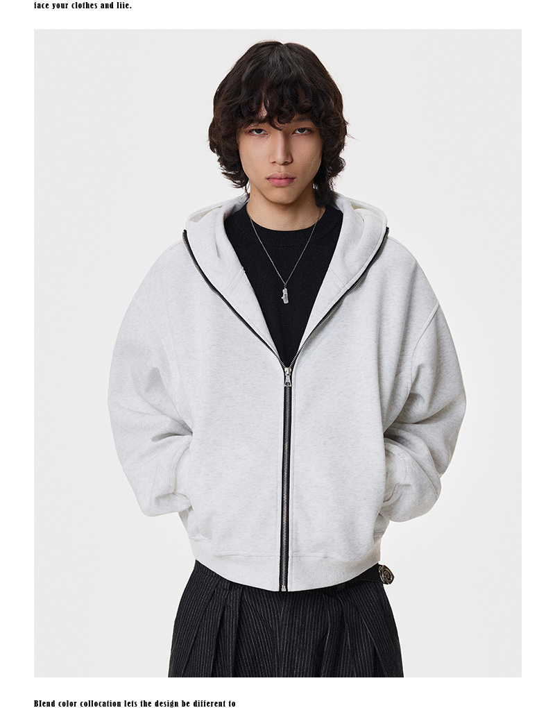 Heavy Air-Cotton Short Zipper Hoodie WN21404