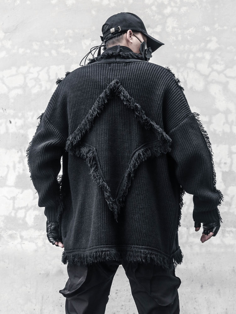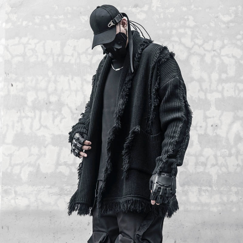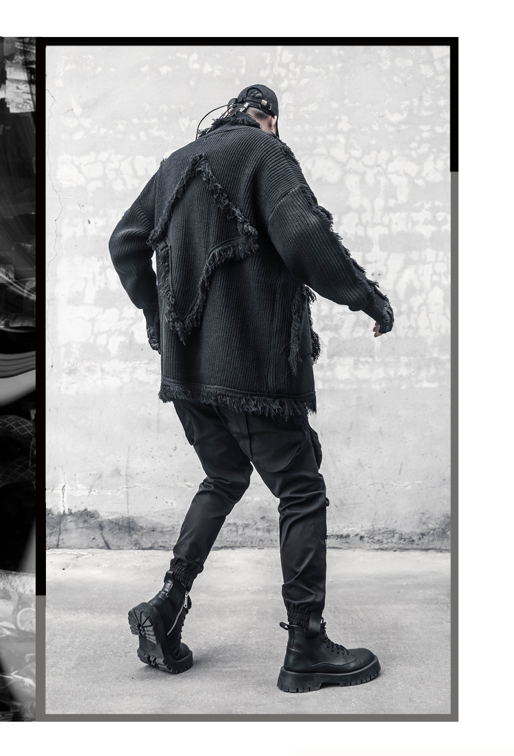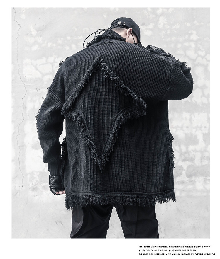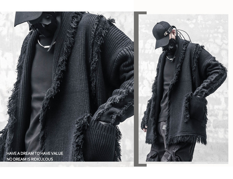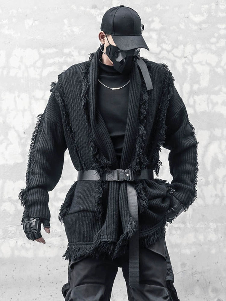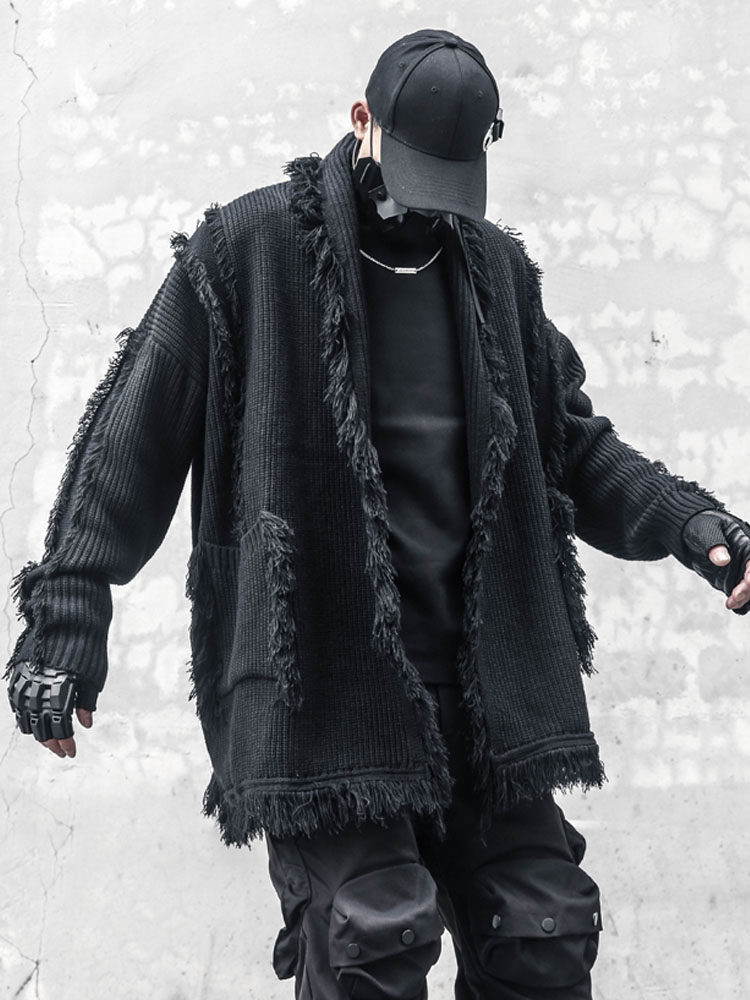 Oversize Asymmetric Cut Tassel Knit Cardigan WN22416