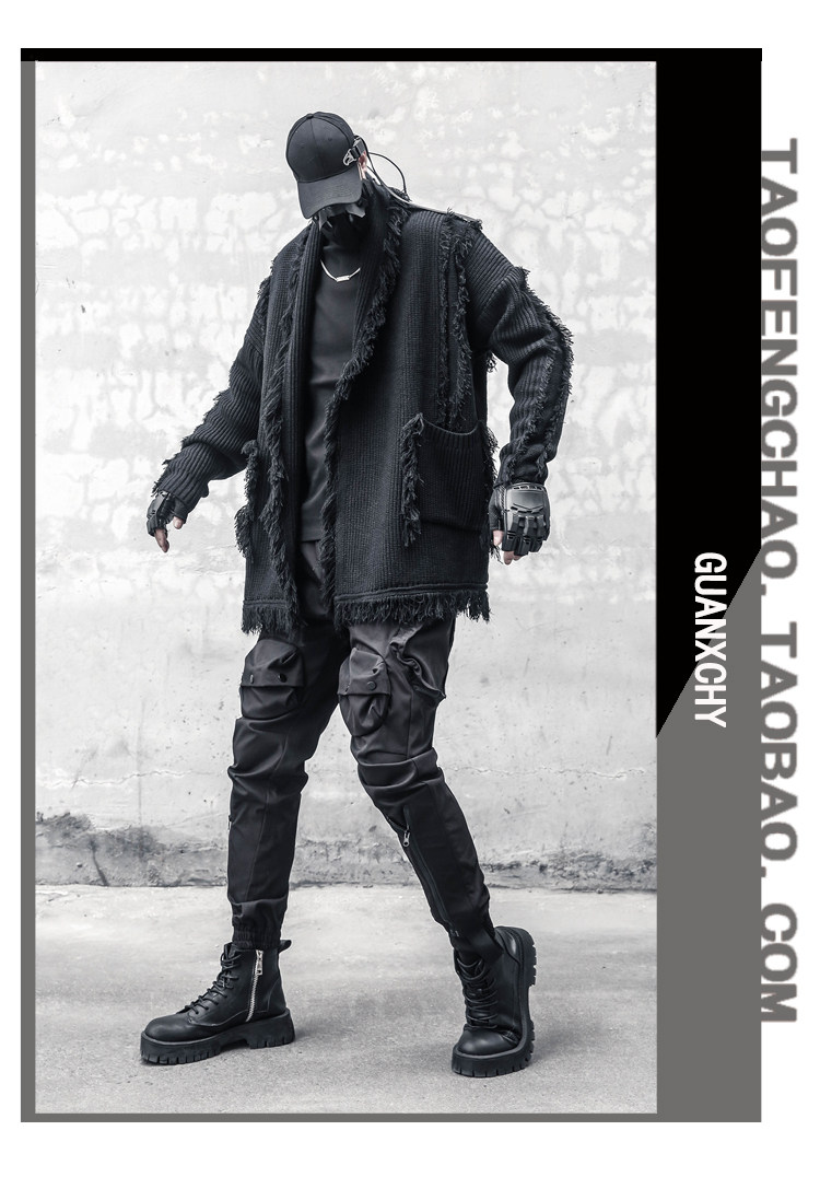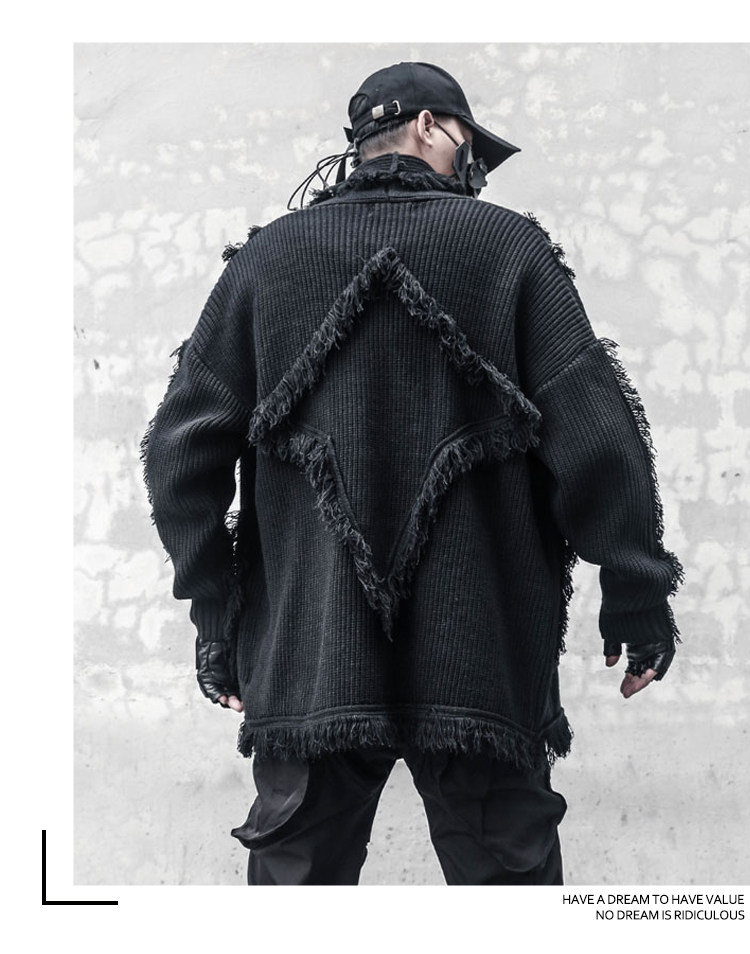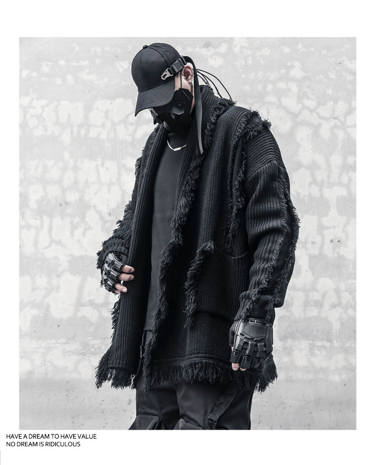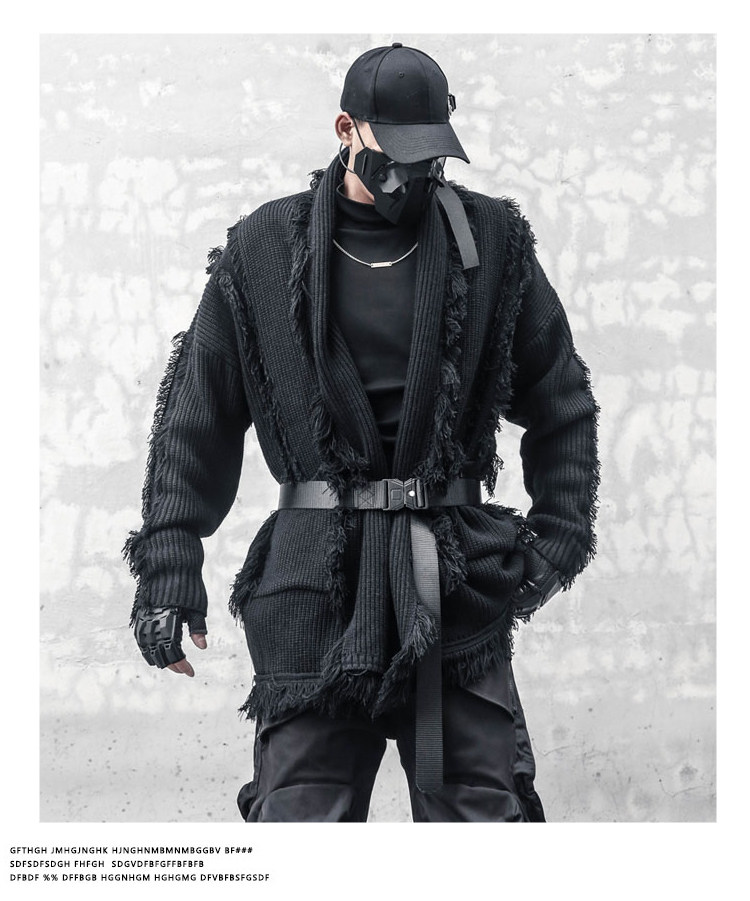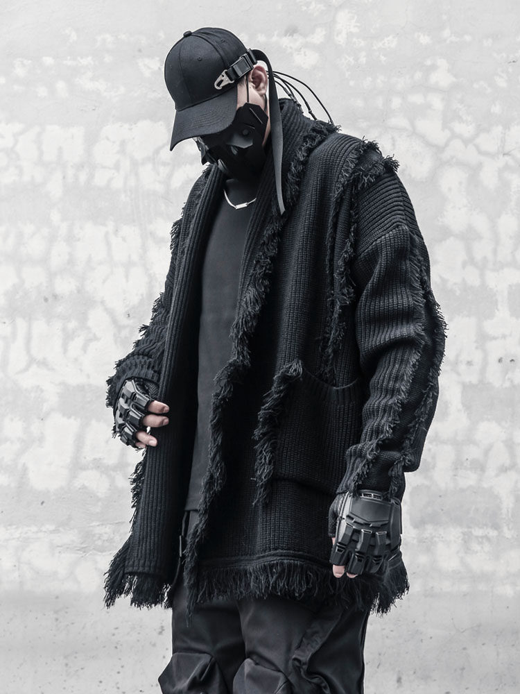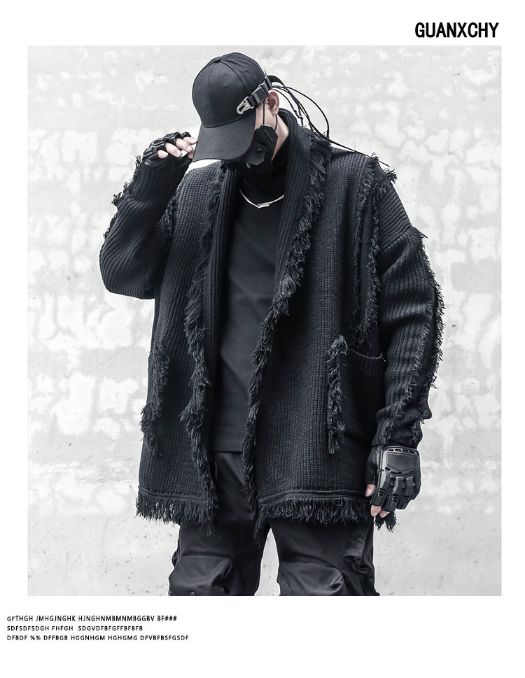 Oversize Asymmetric Cut Tassel Knit Cardigan WN22416