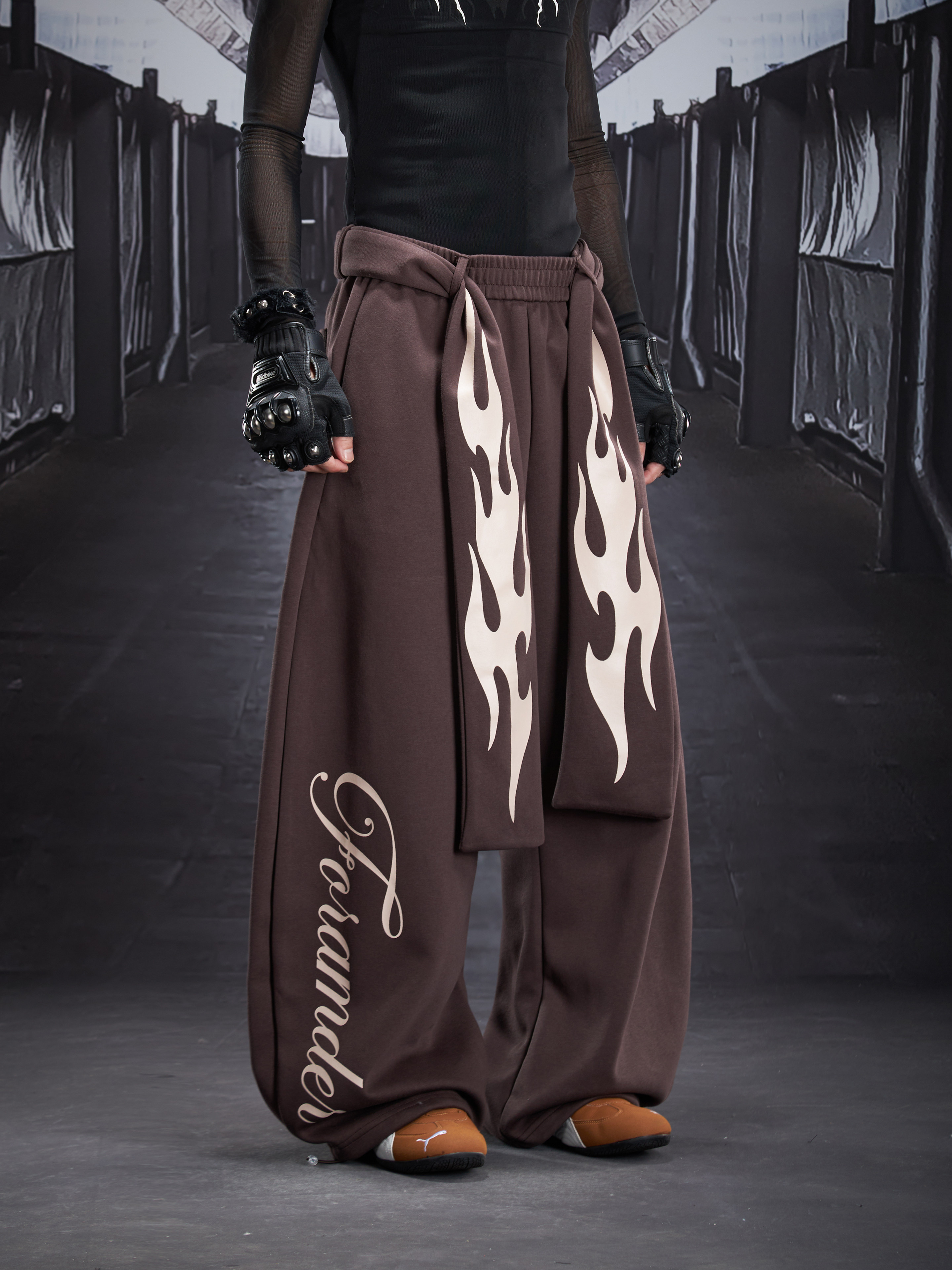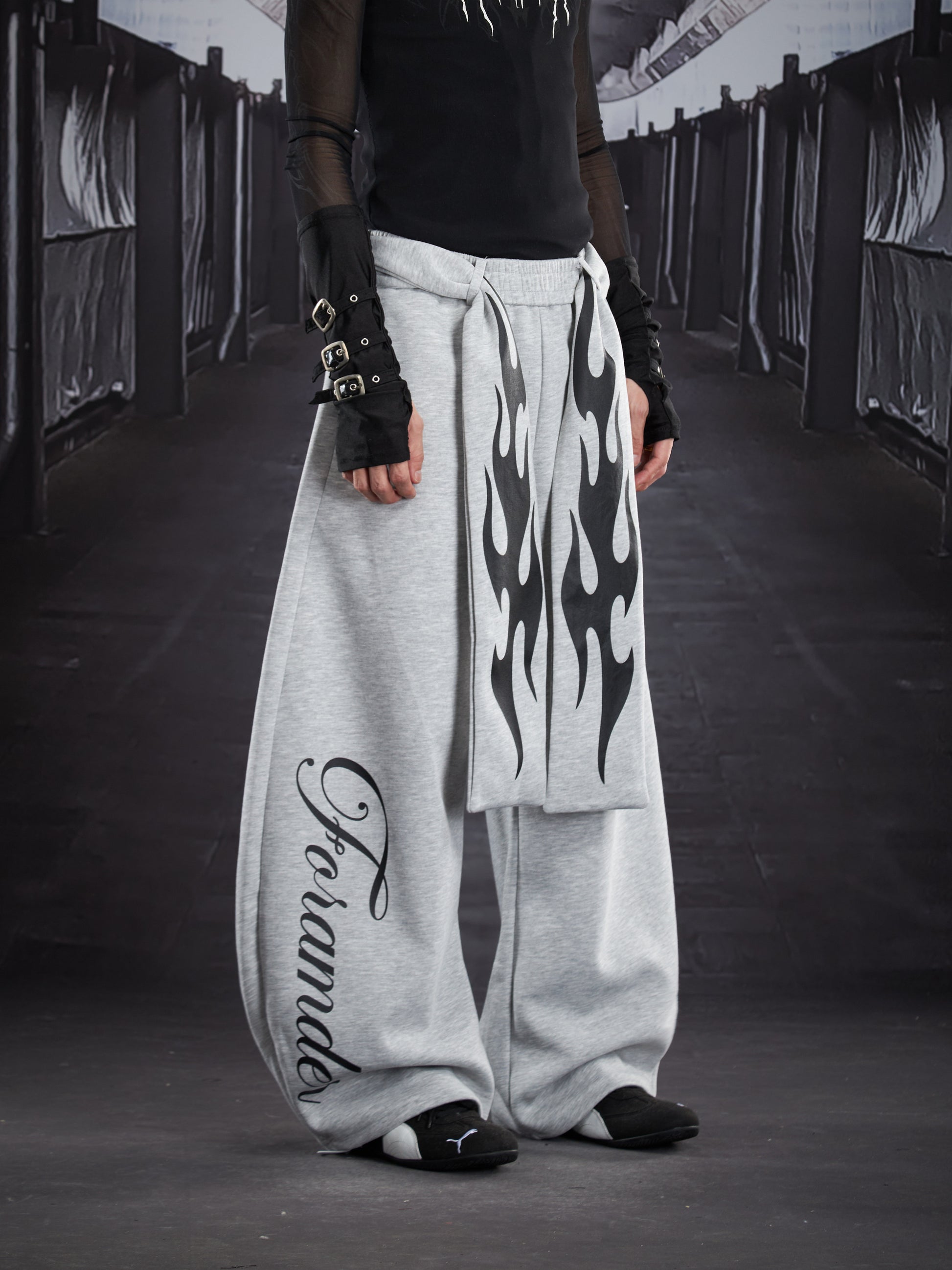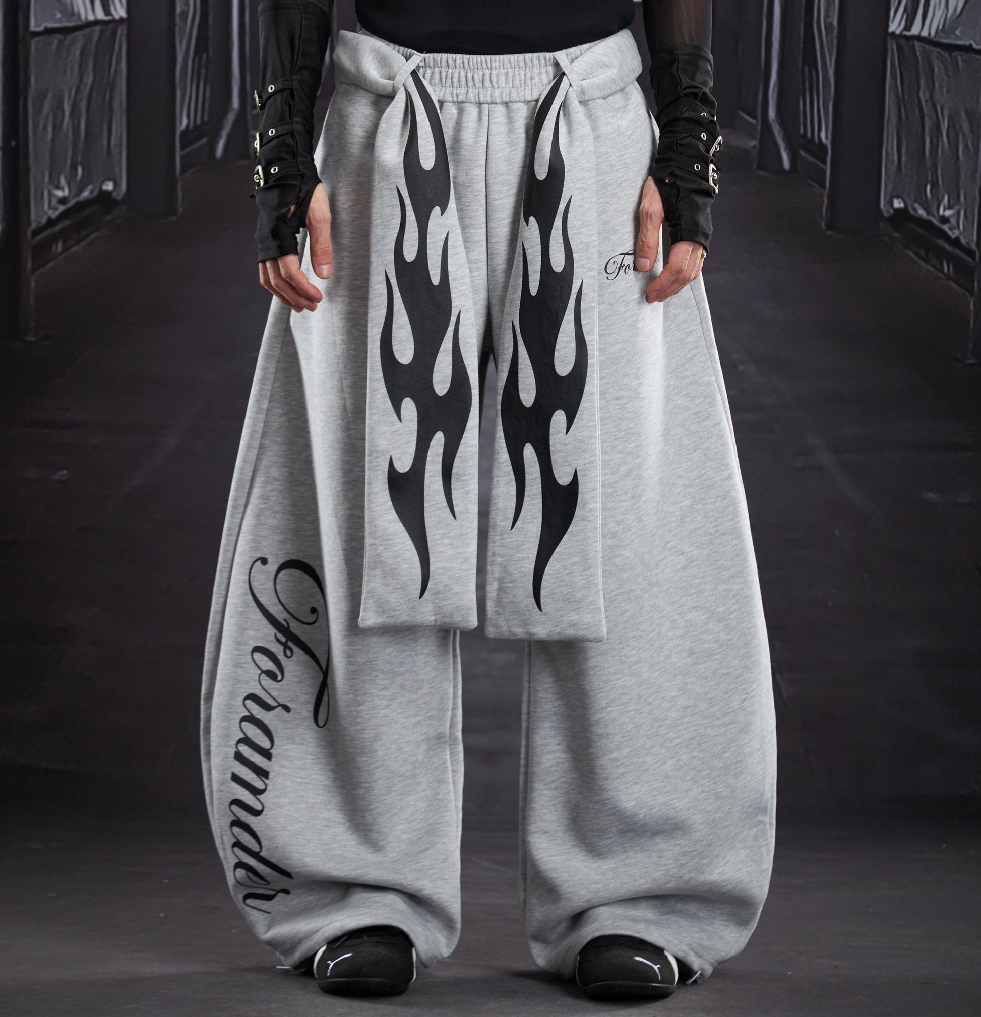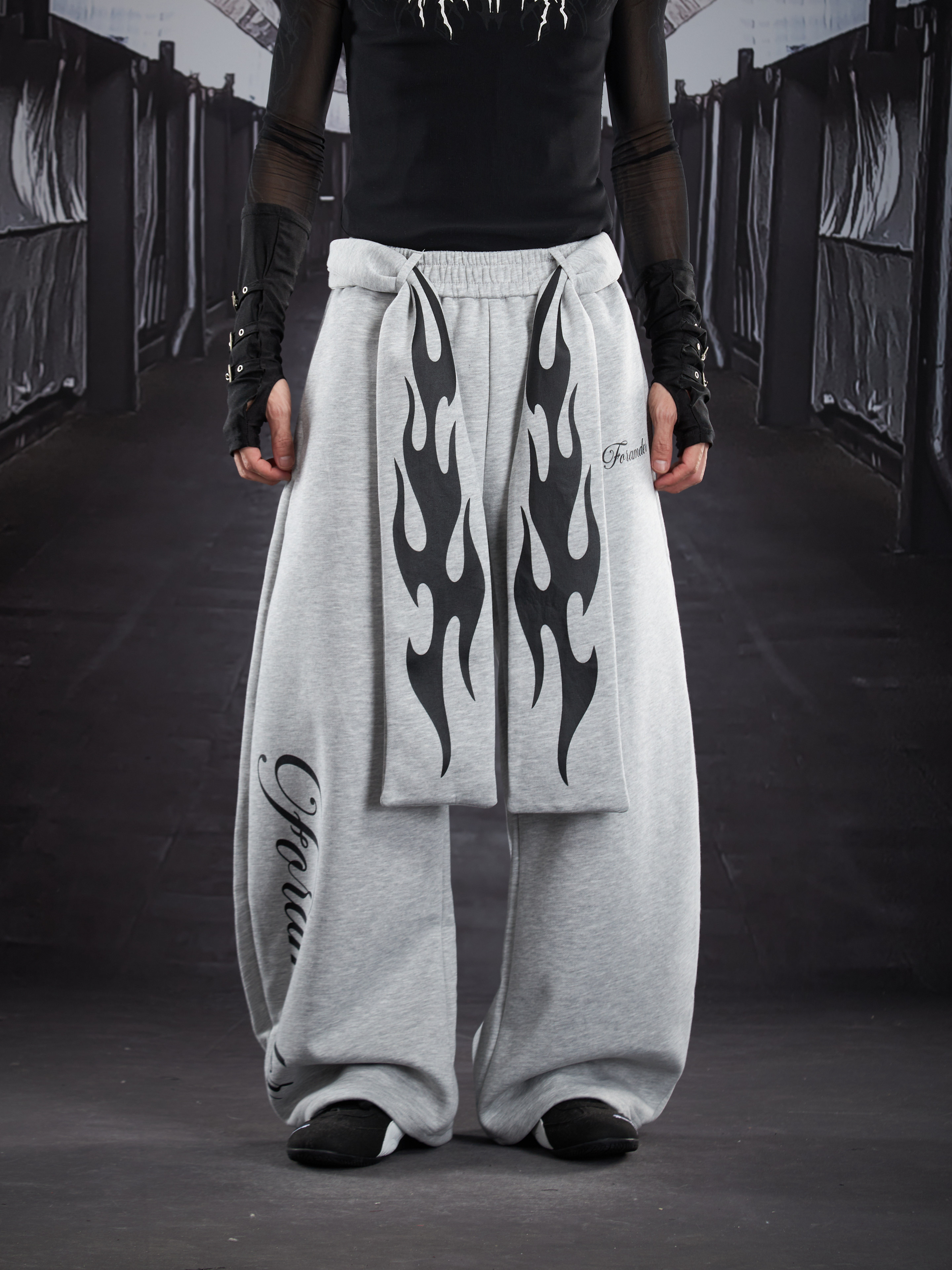 Flame Print Wide Leg Sweatpants WN22789
