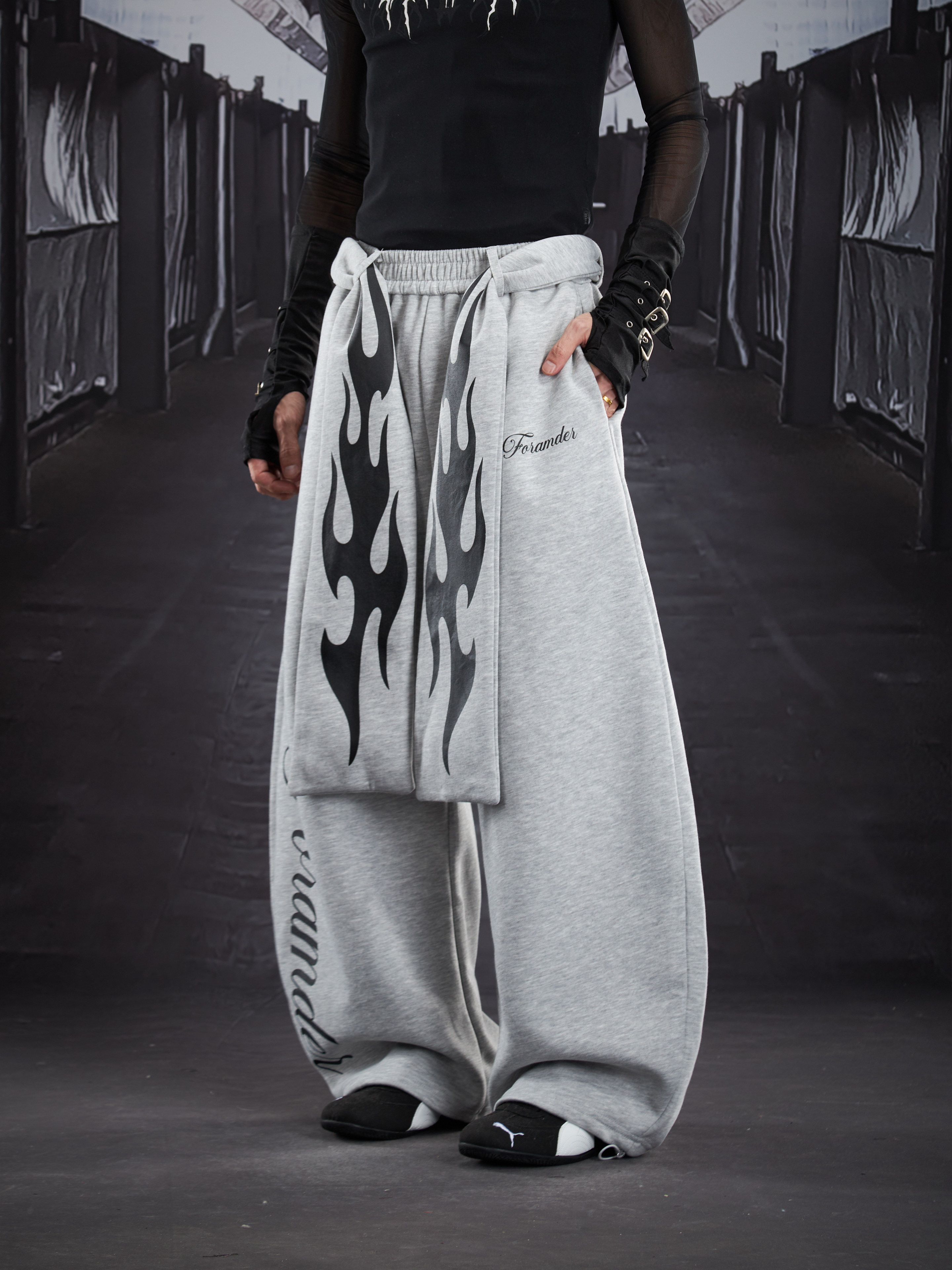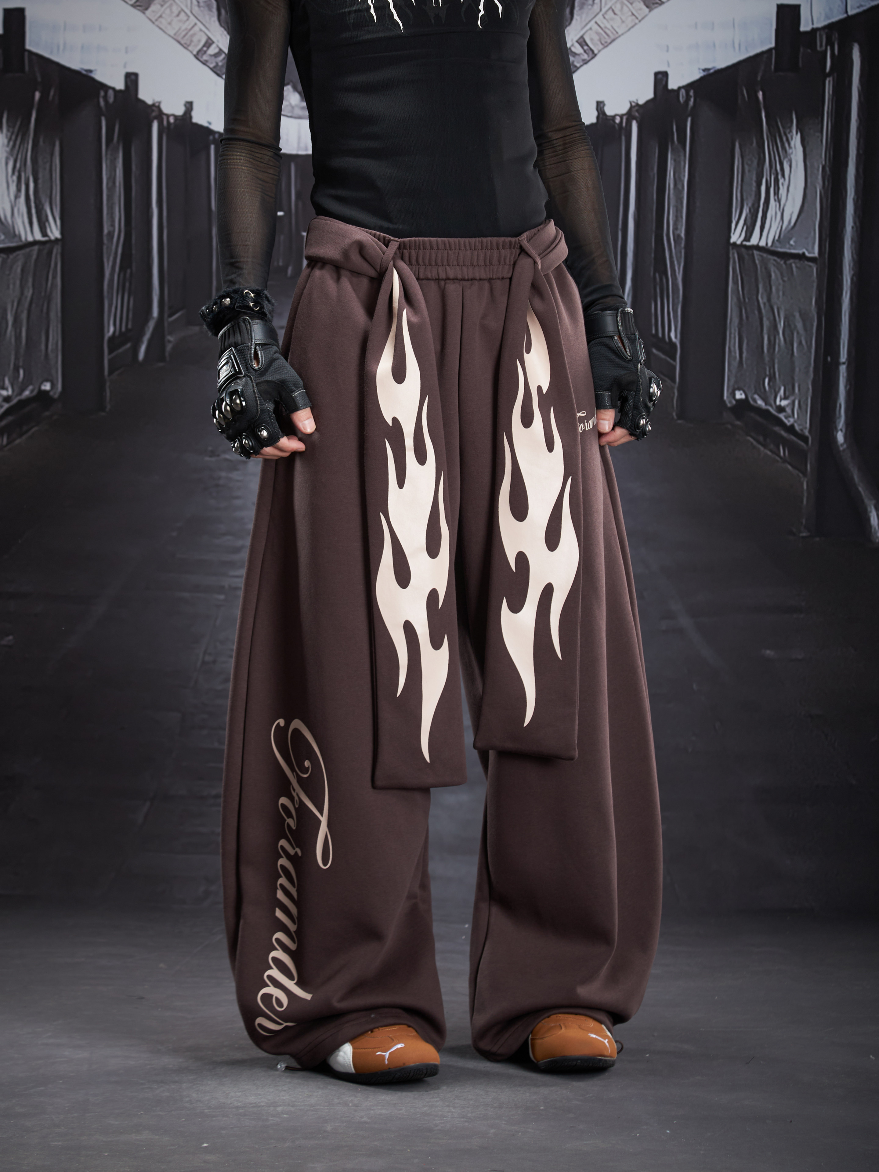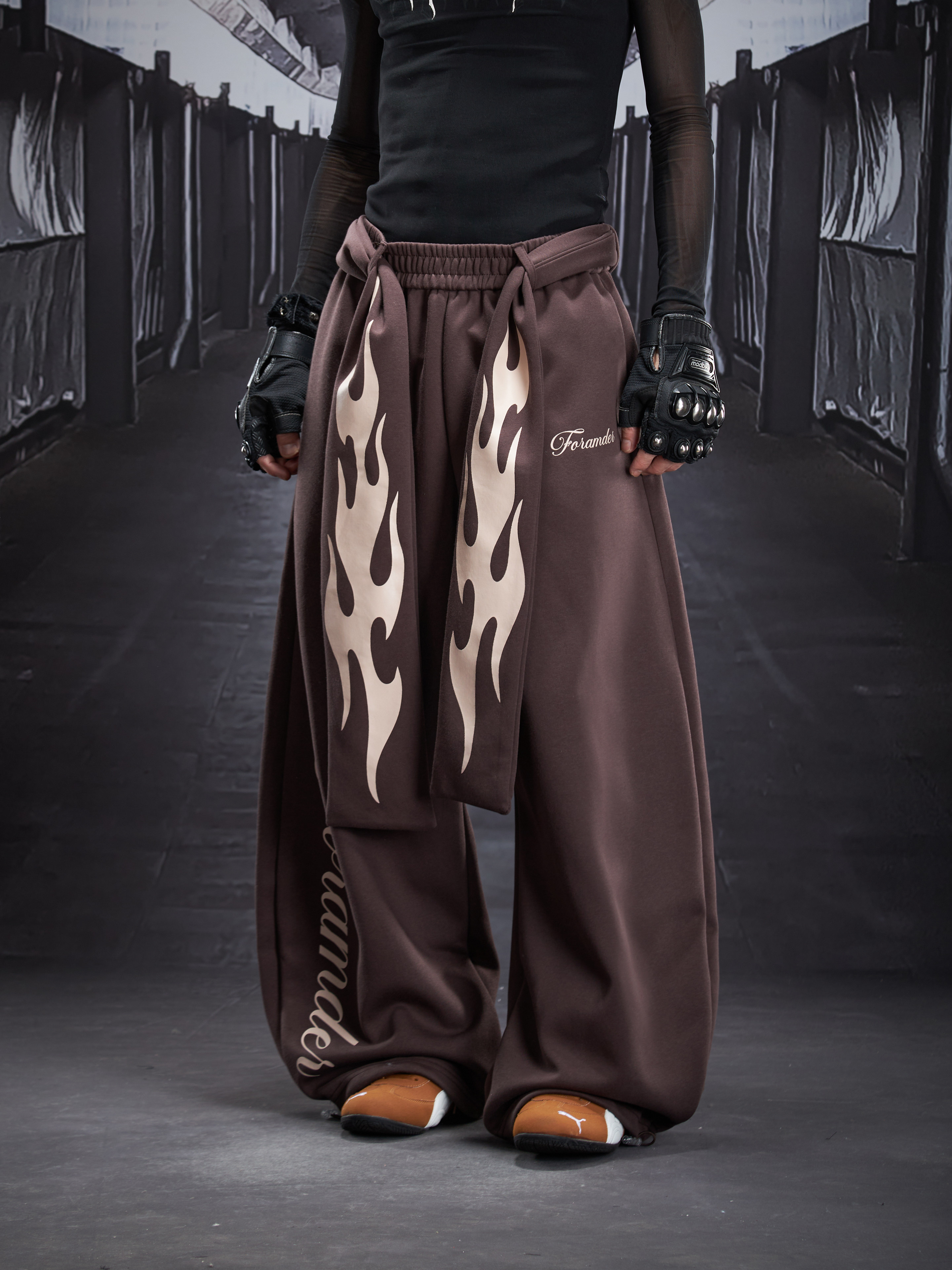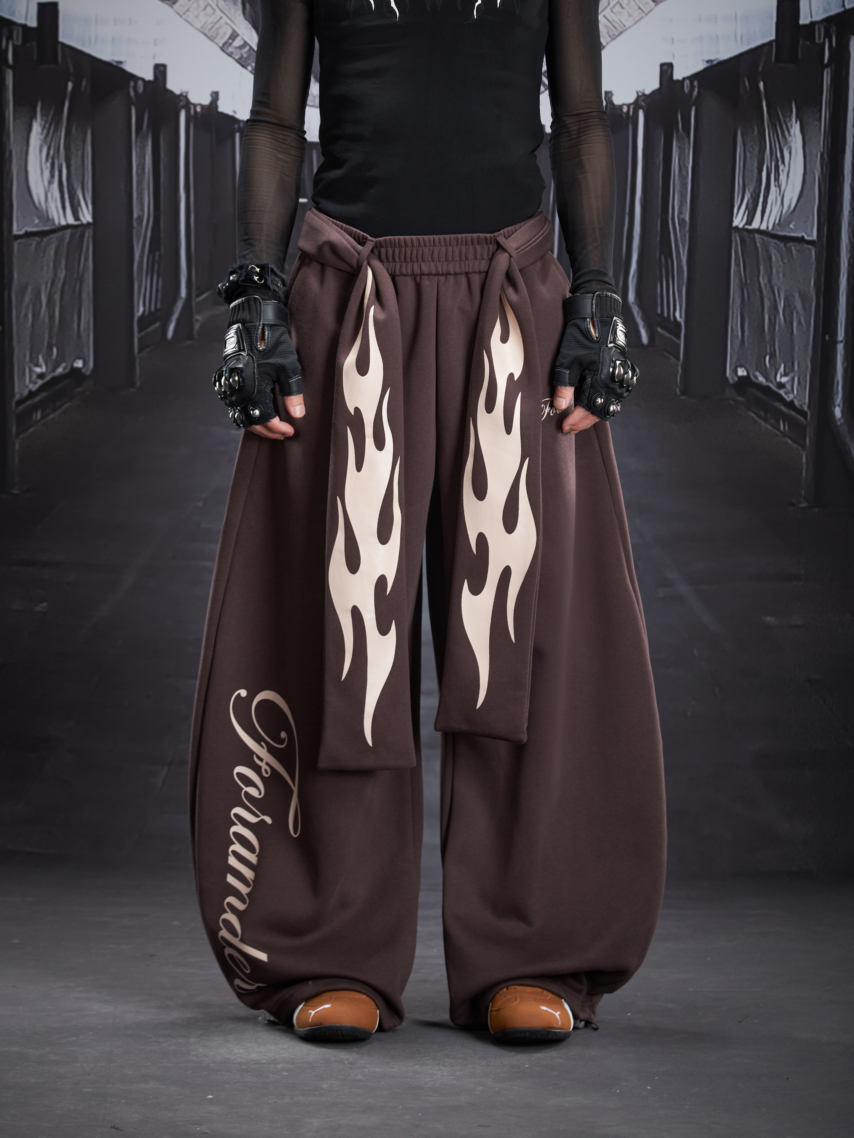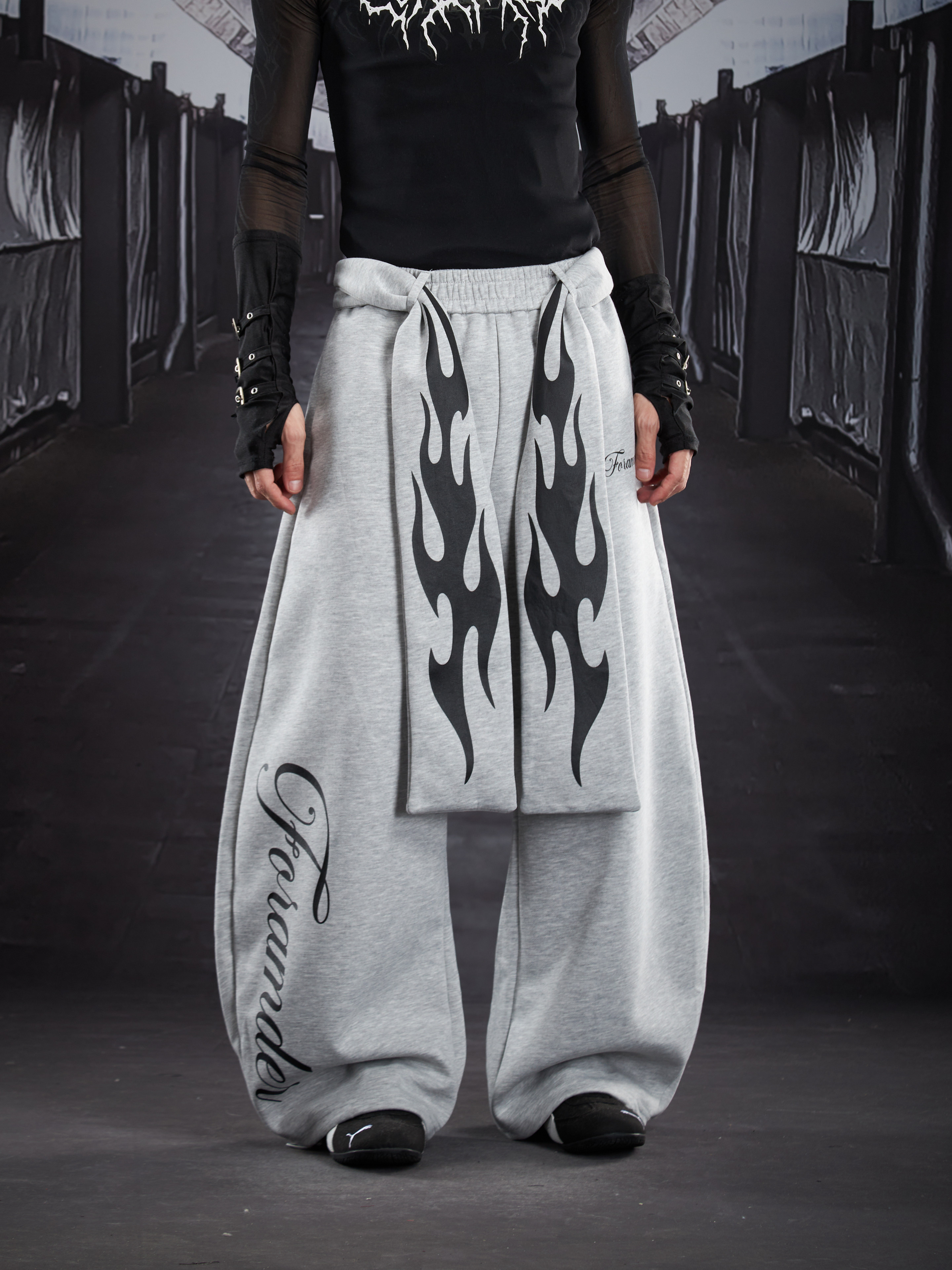 Flame Print Wide Leg Sweatpants WN22789