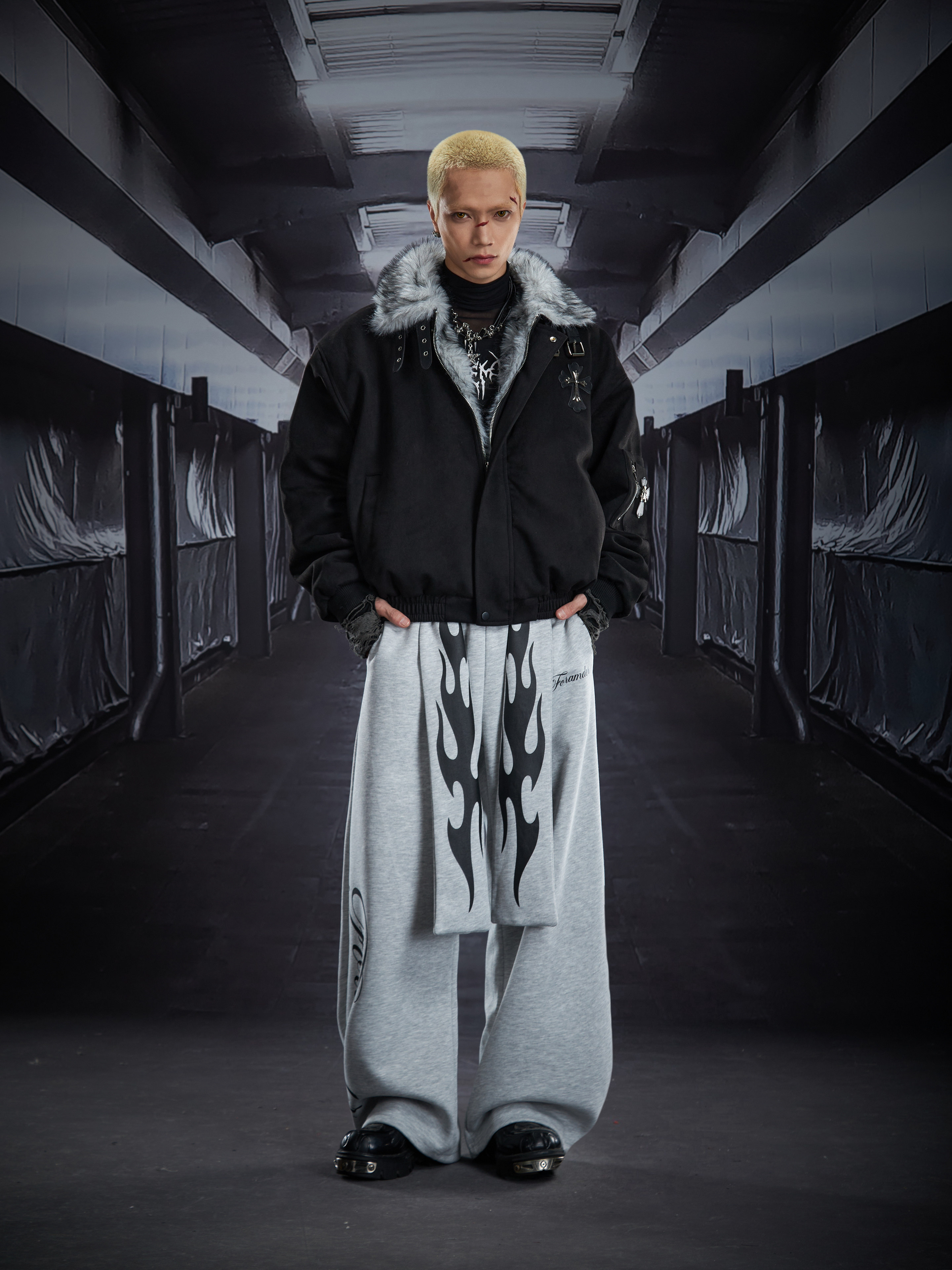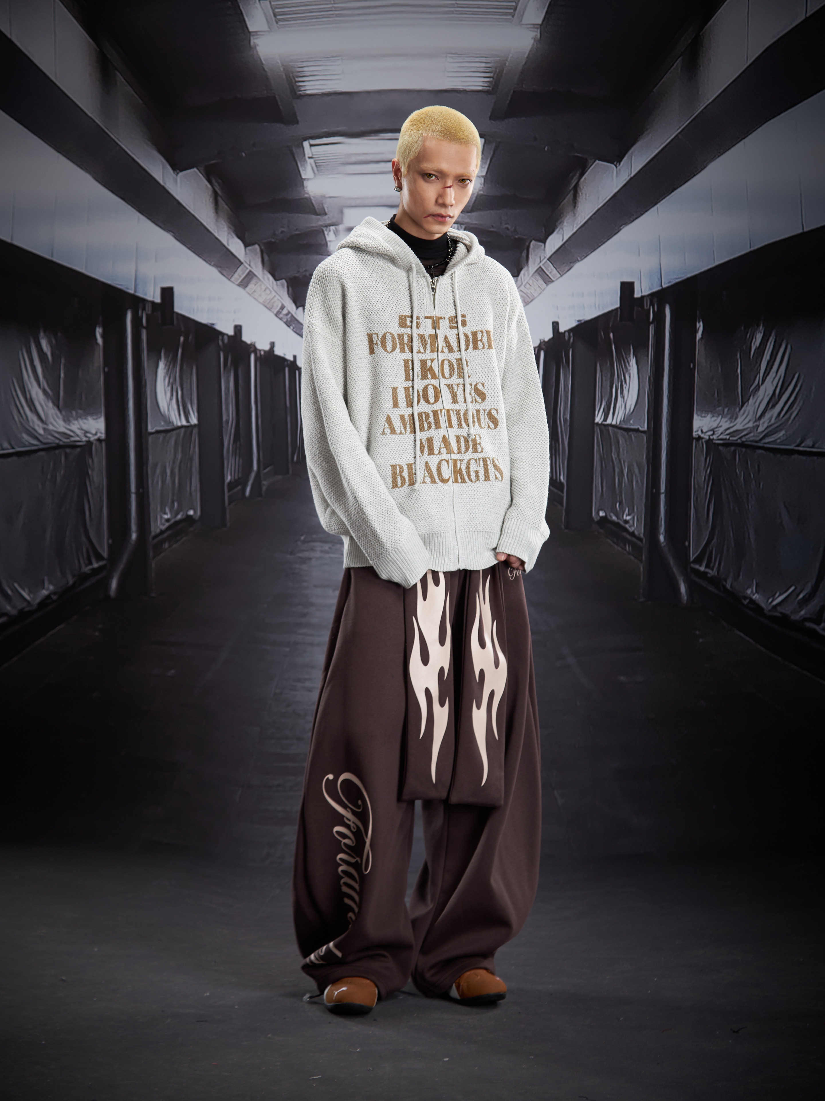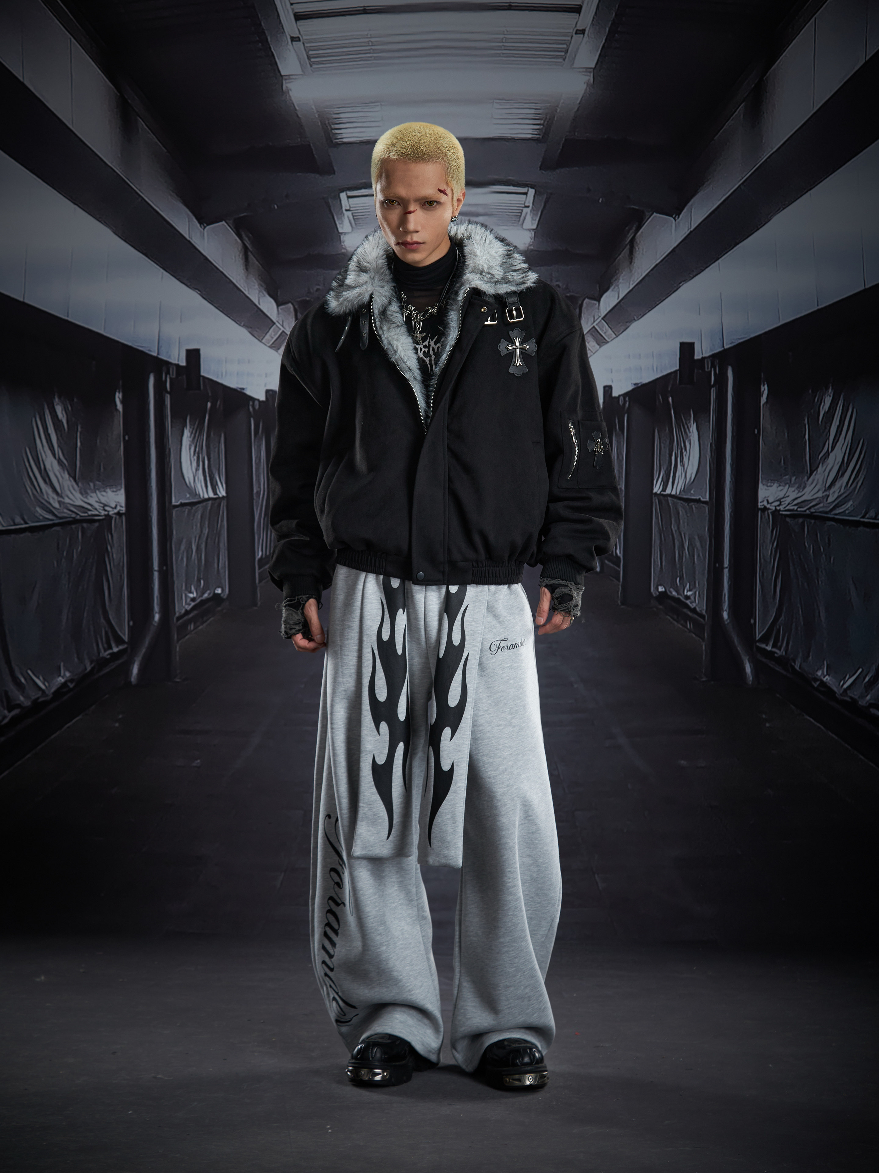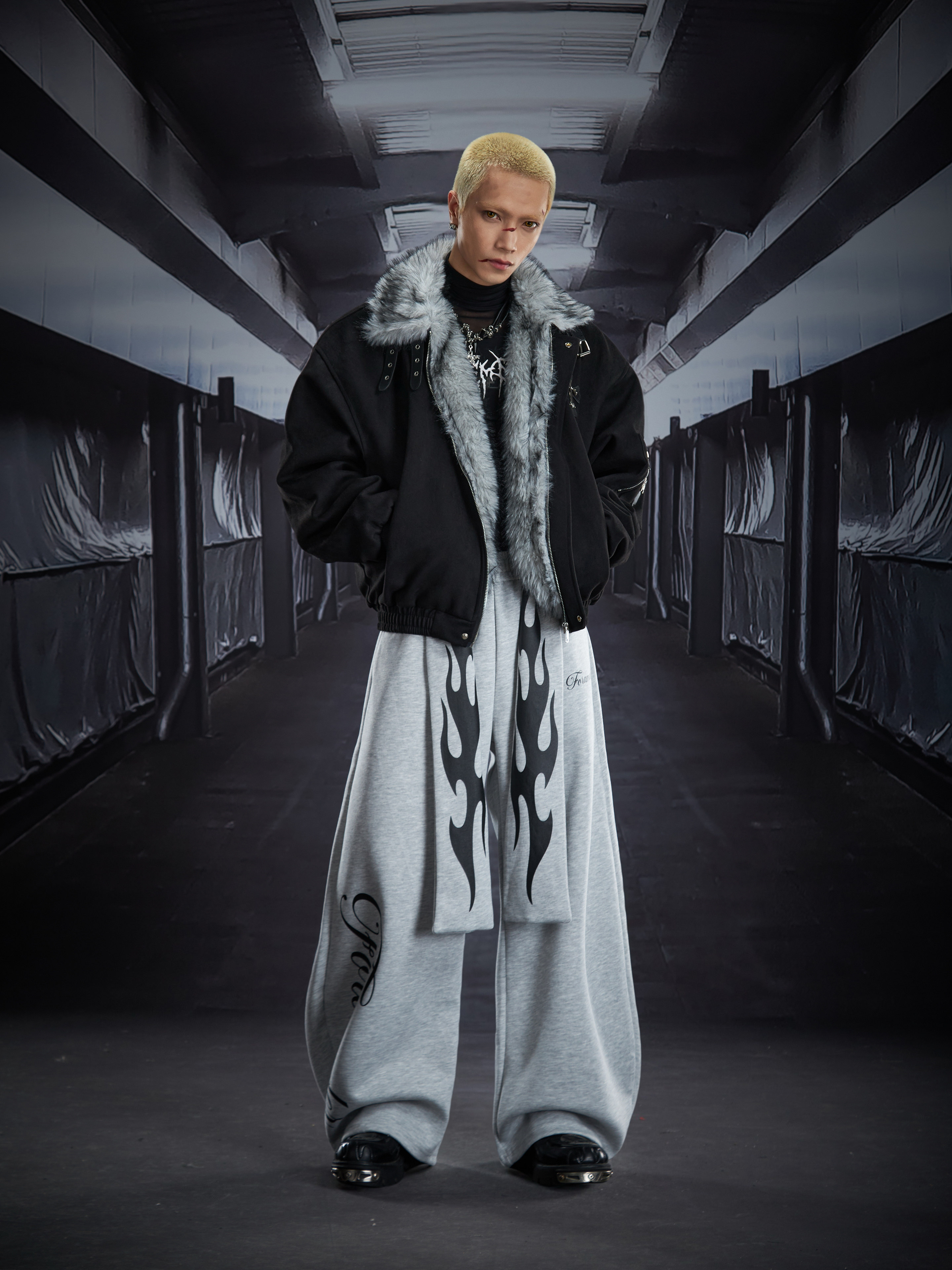 Flame Print Wide Leg Sweatpants WN22789