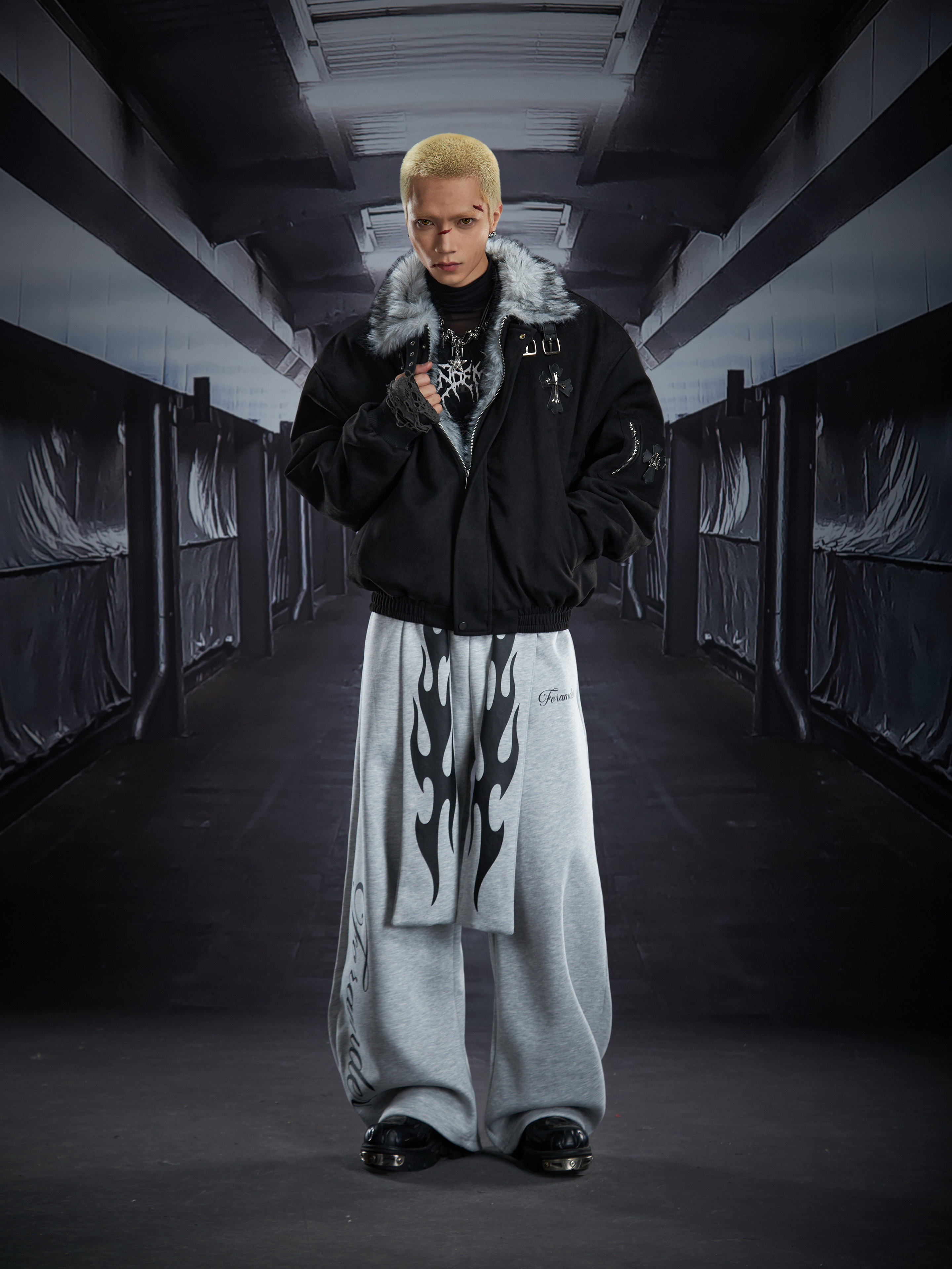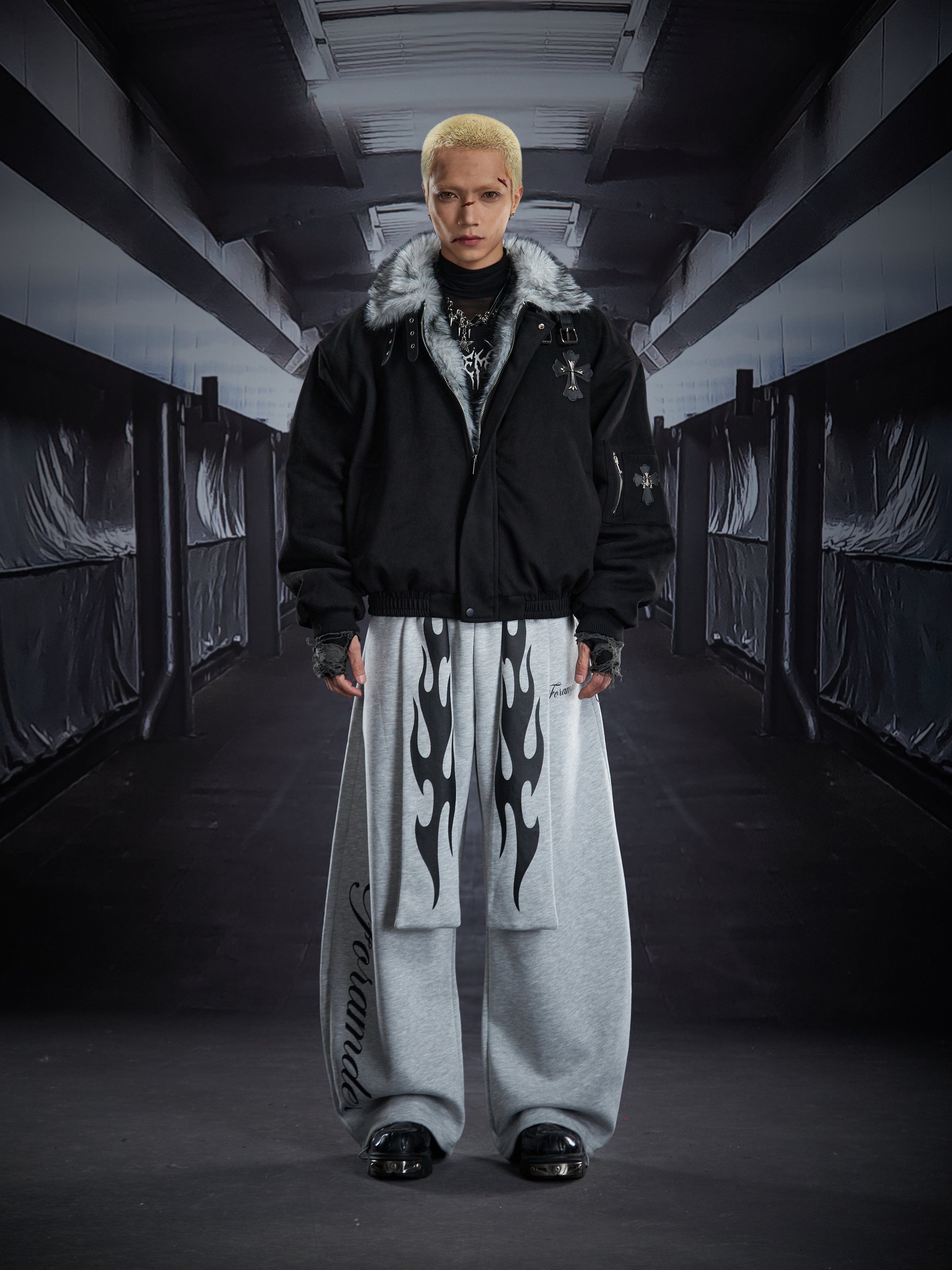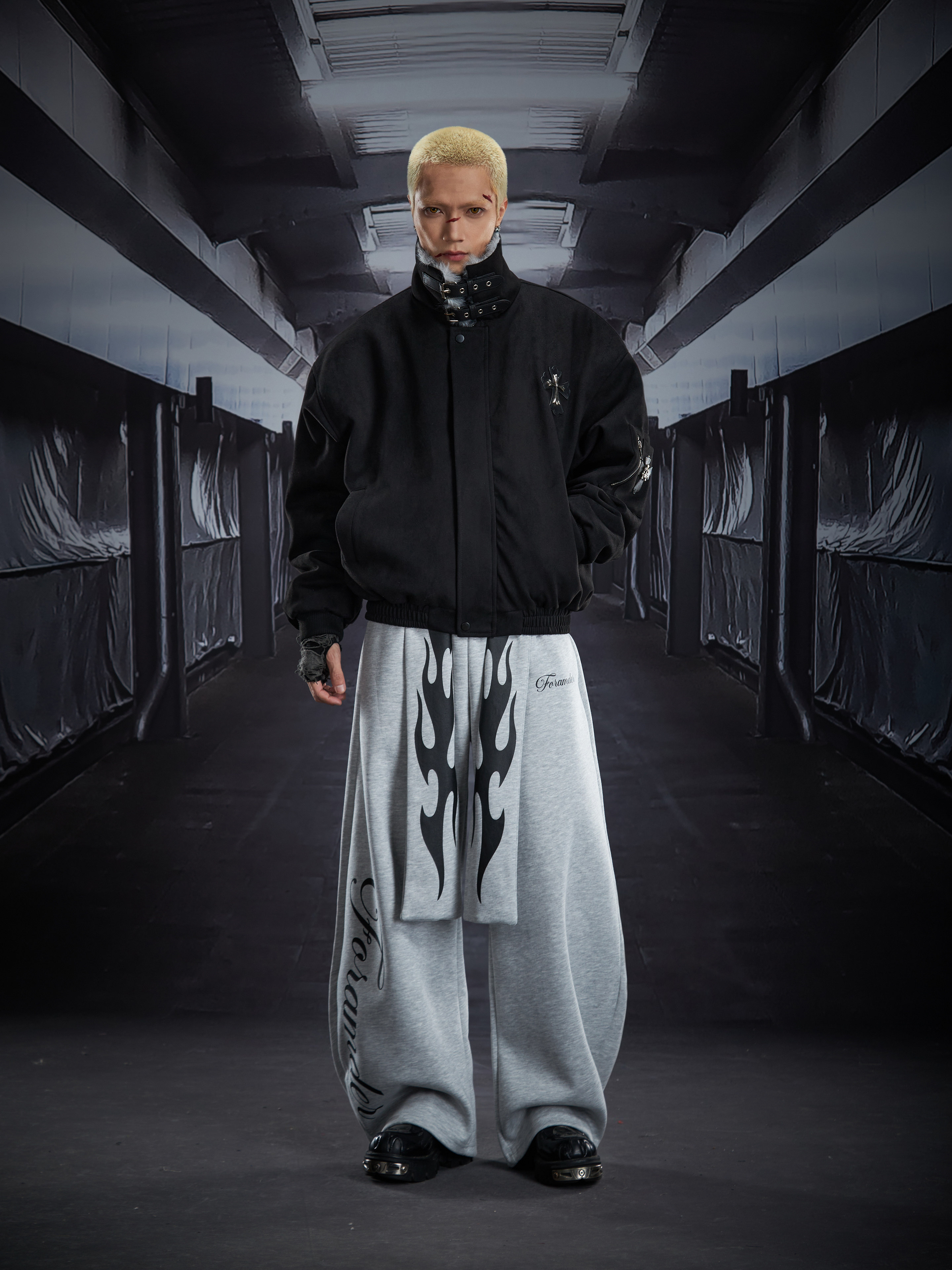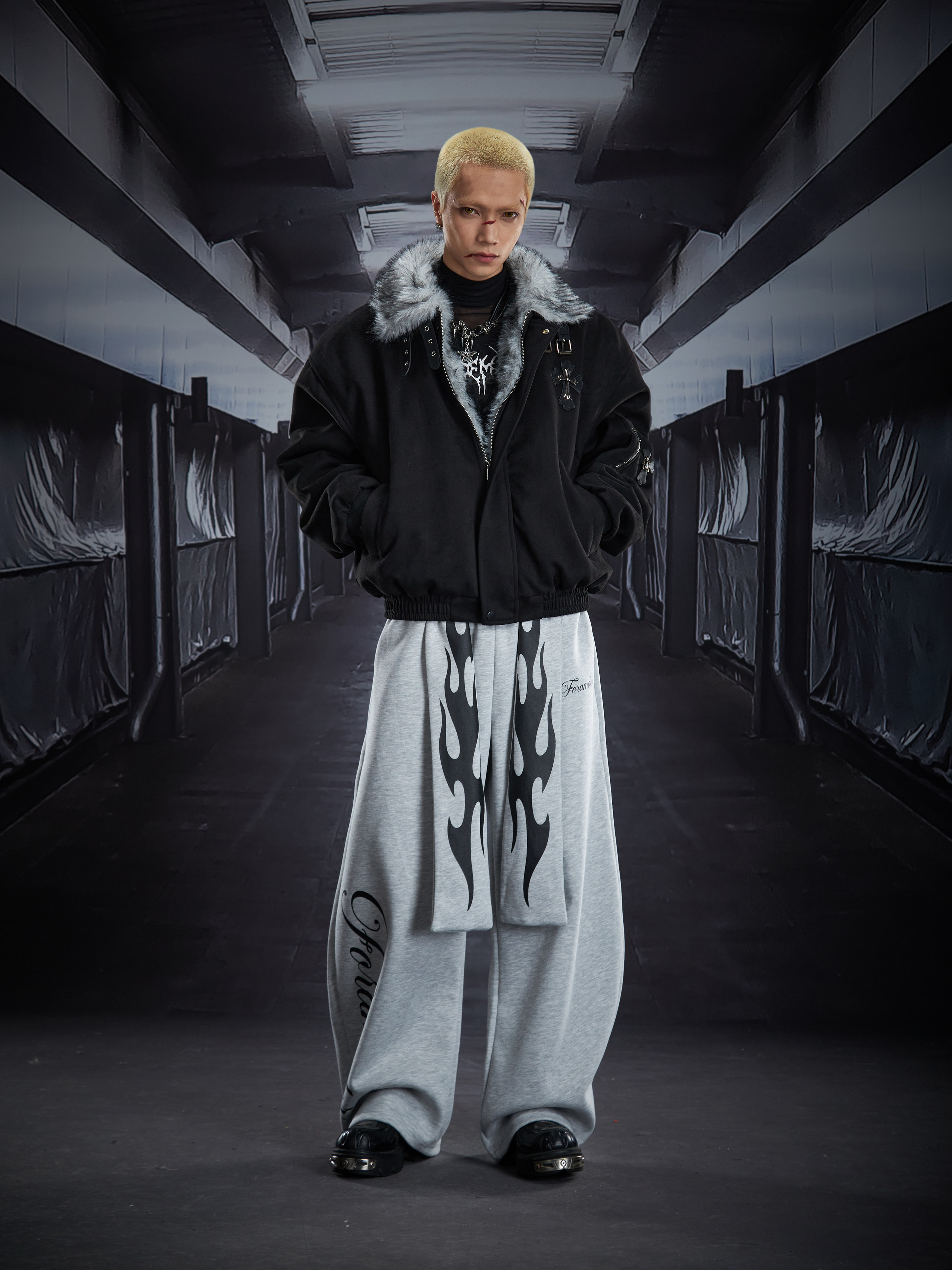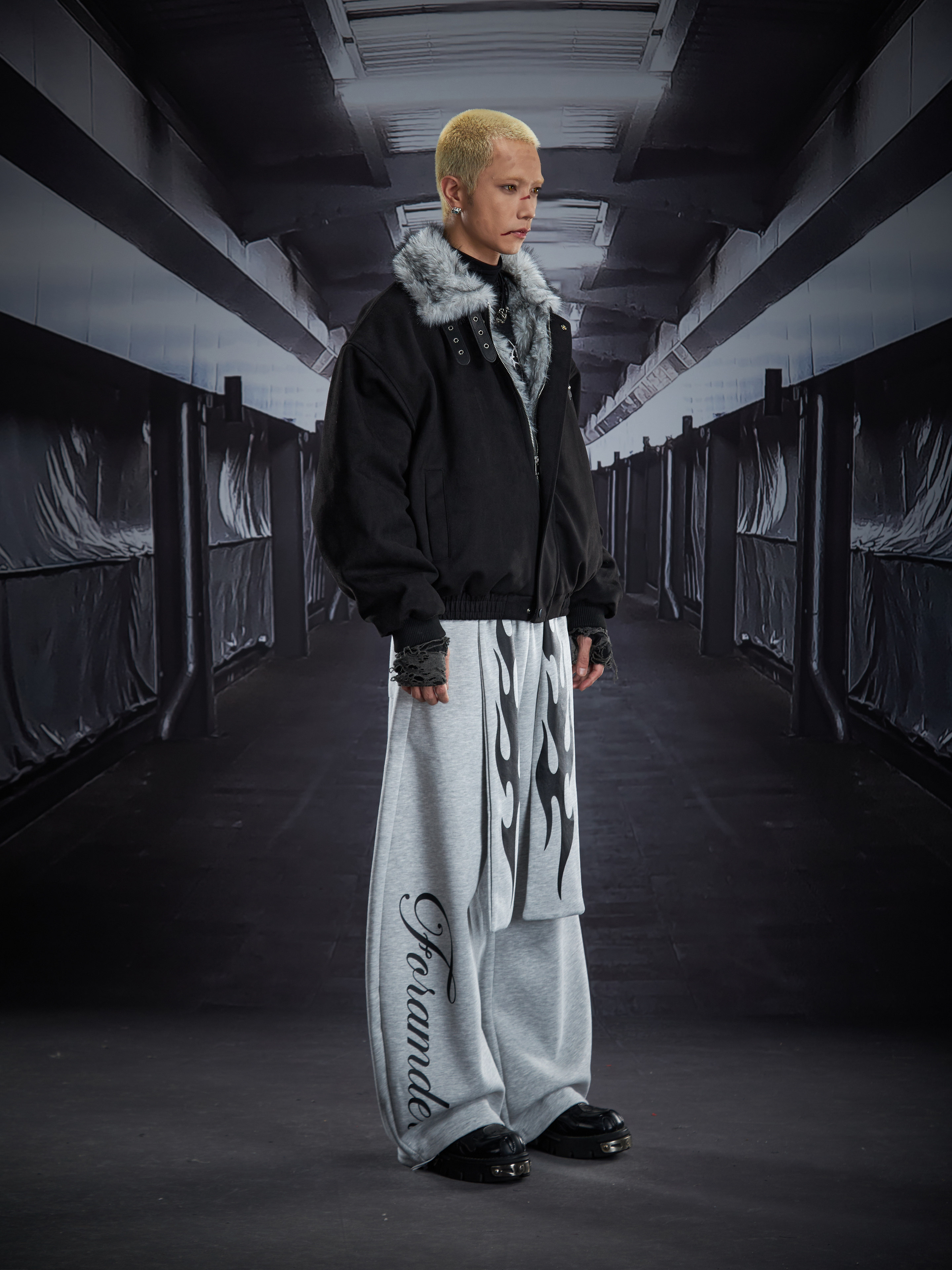 Flame Print Wide Leg Sweatpants WN22789