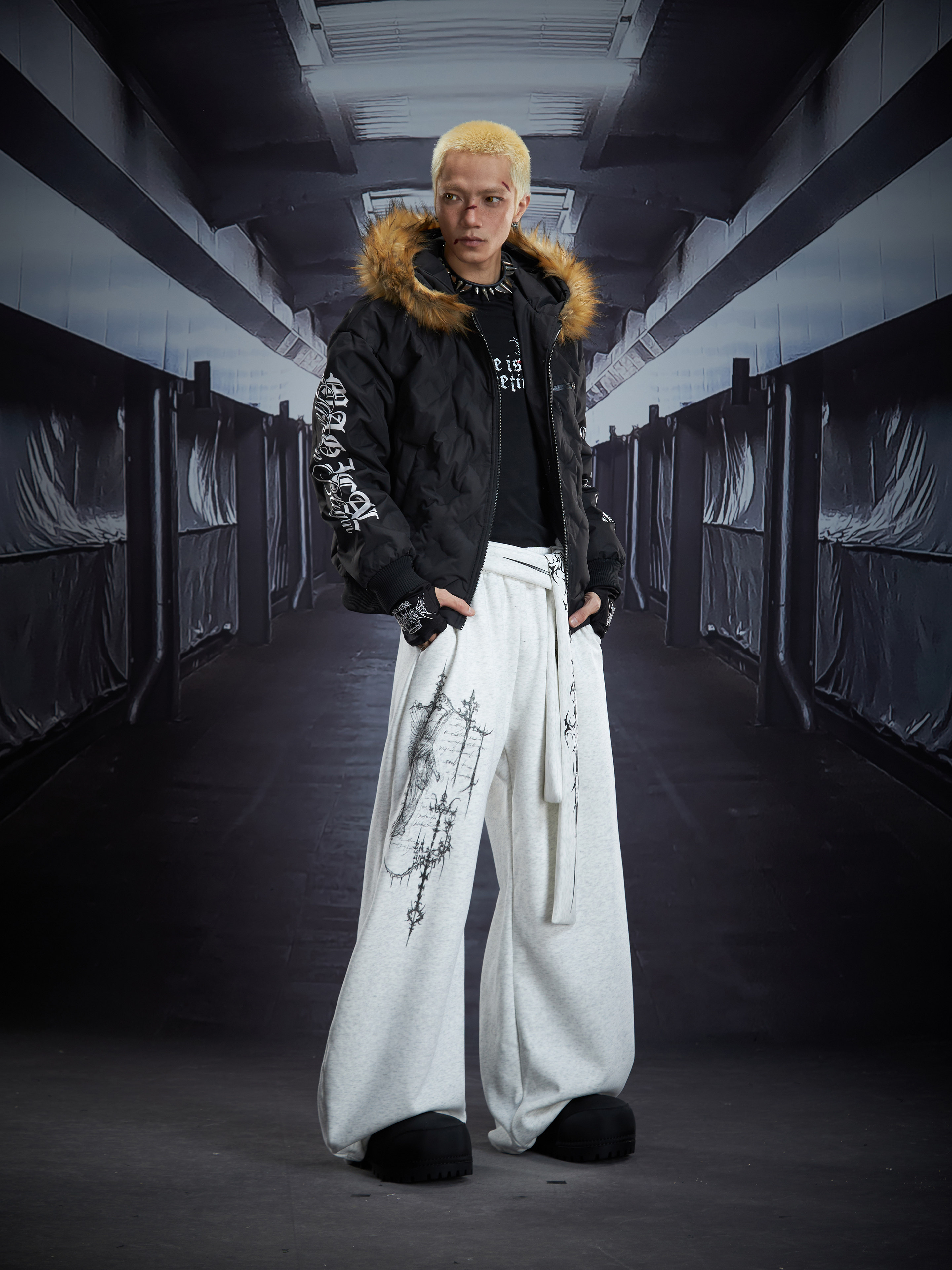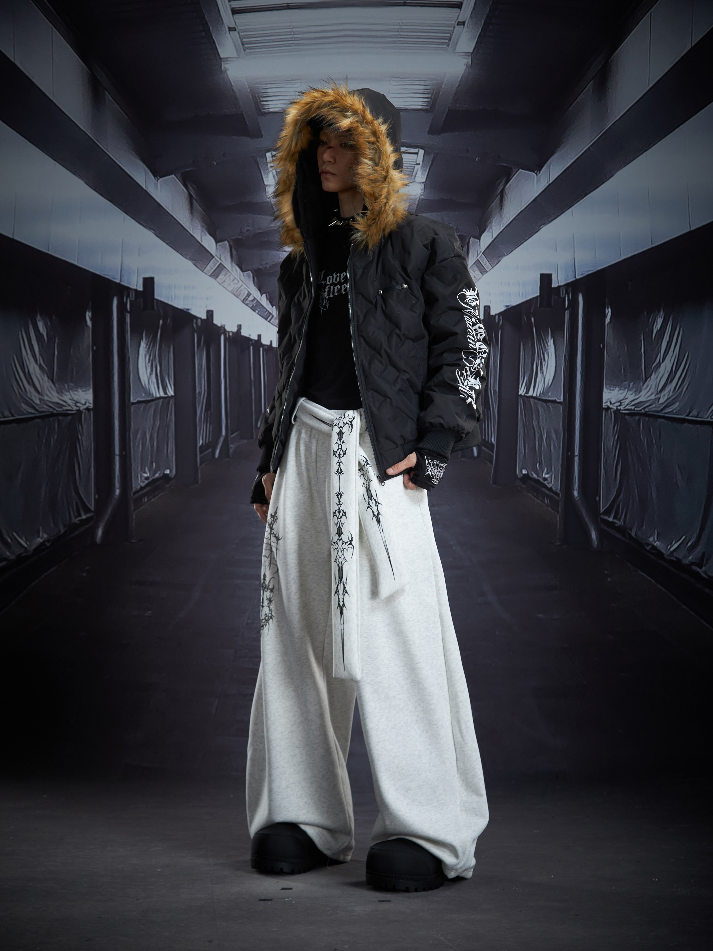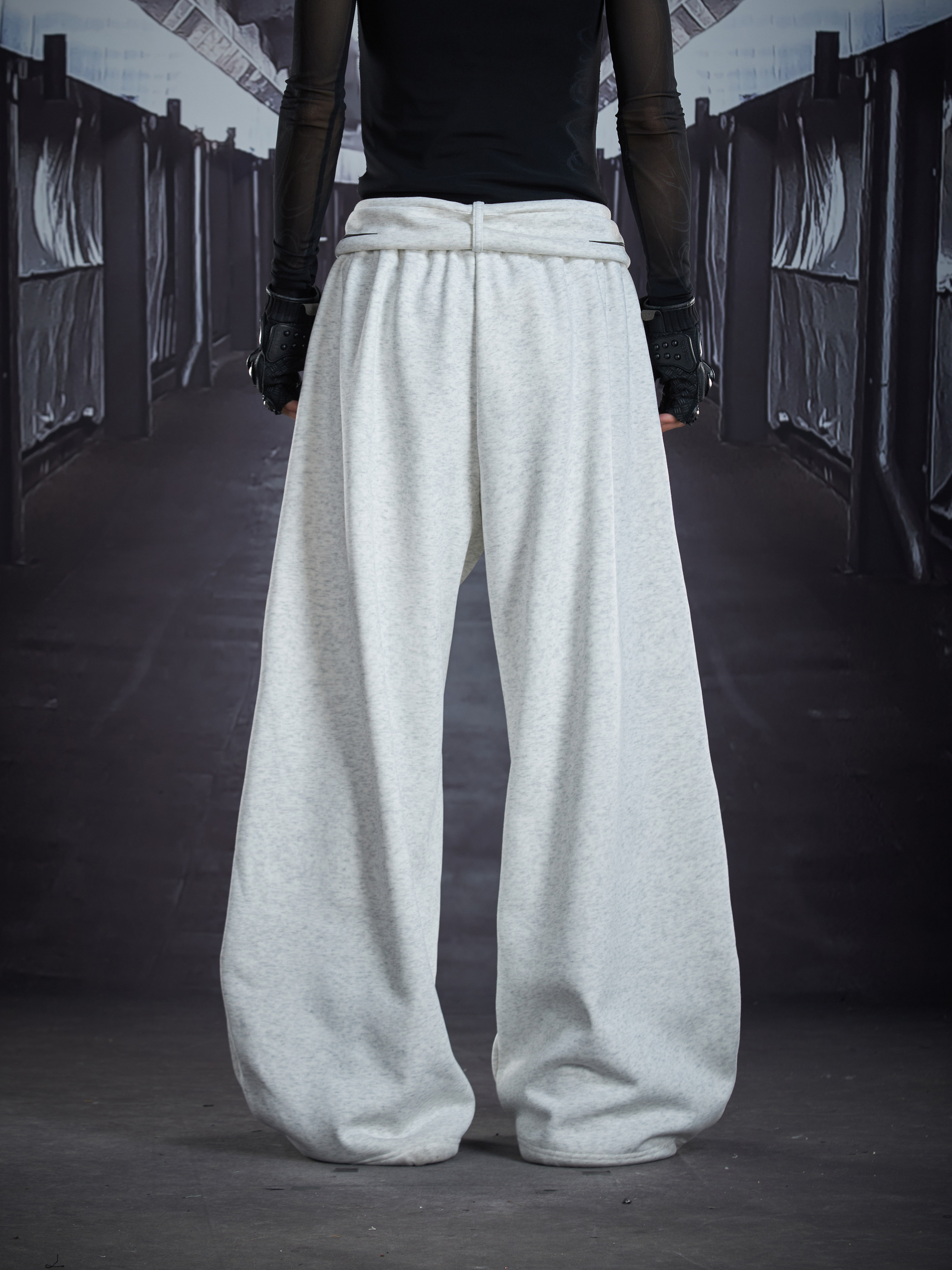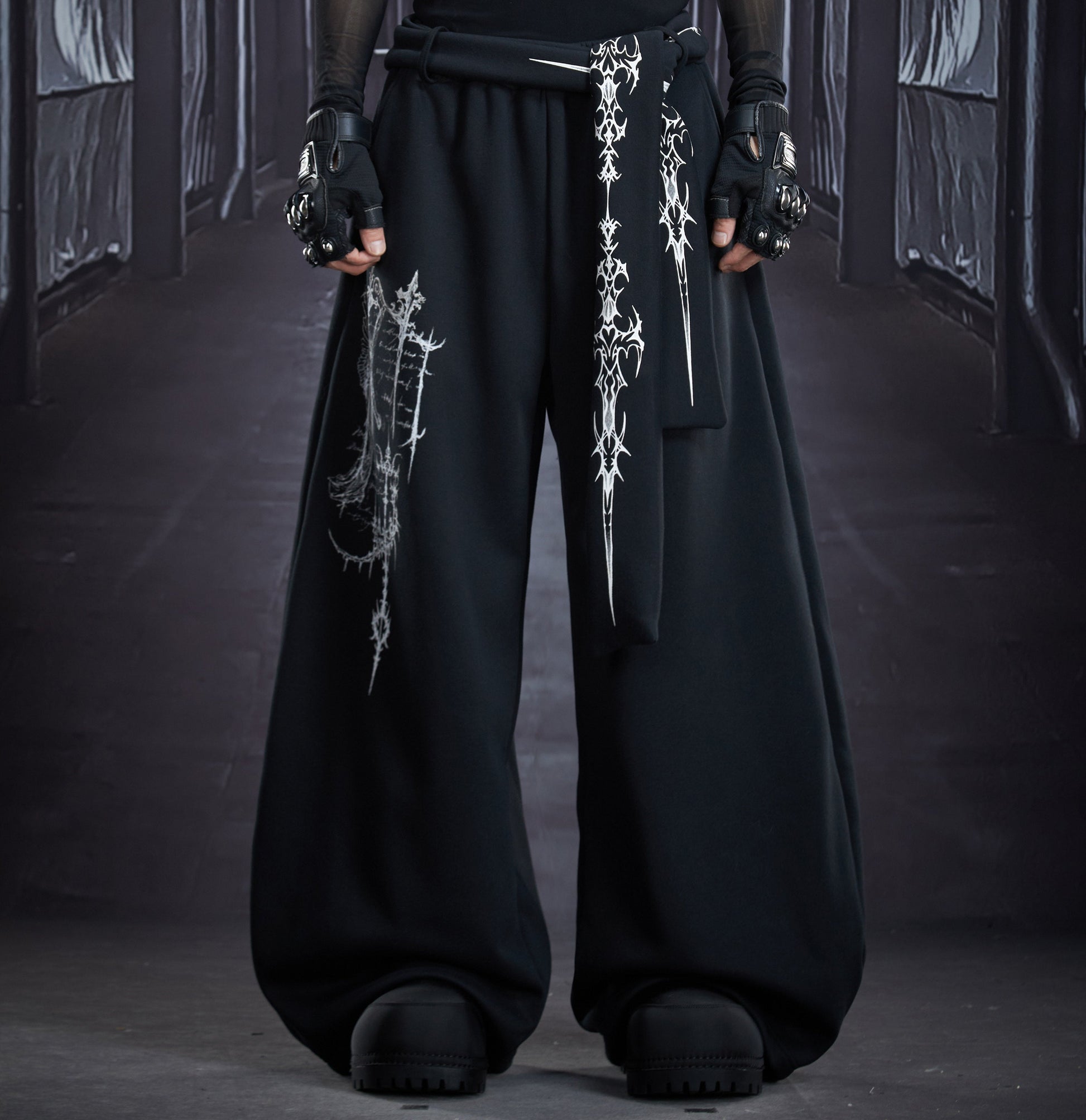 Totem Print Detachable Ribbon Wide Leg Barrel Sweatpants WN22918