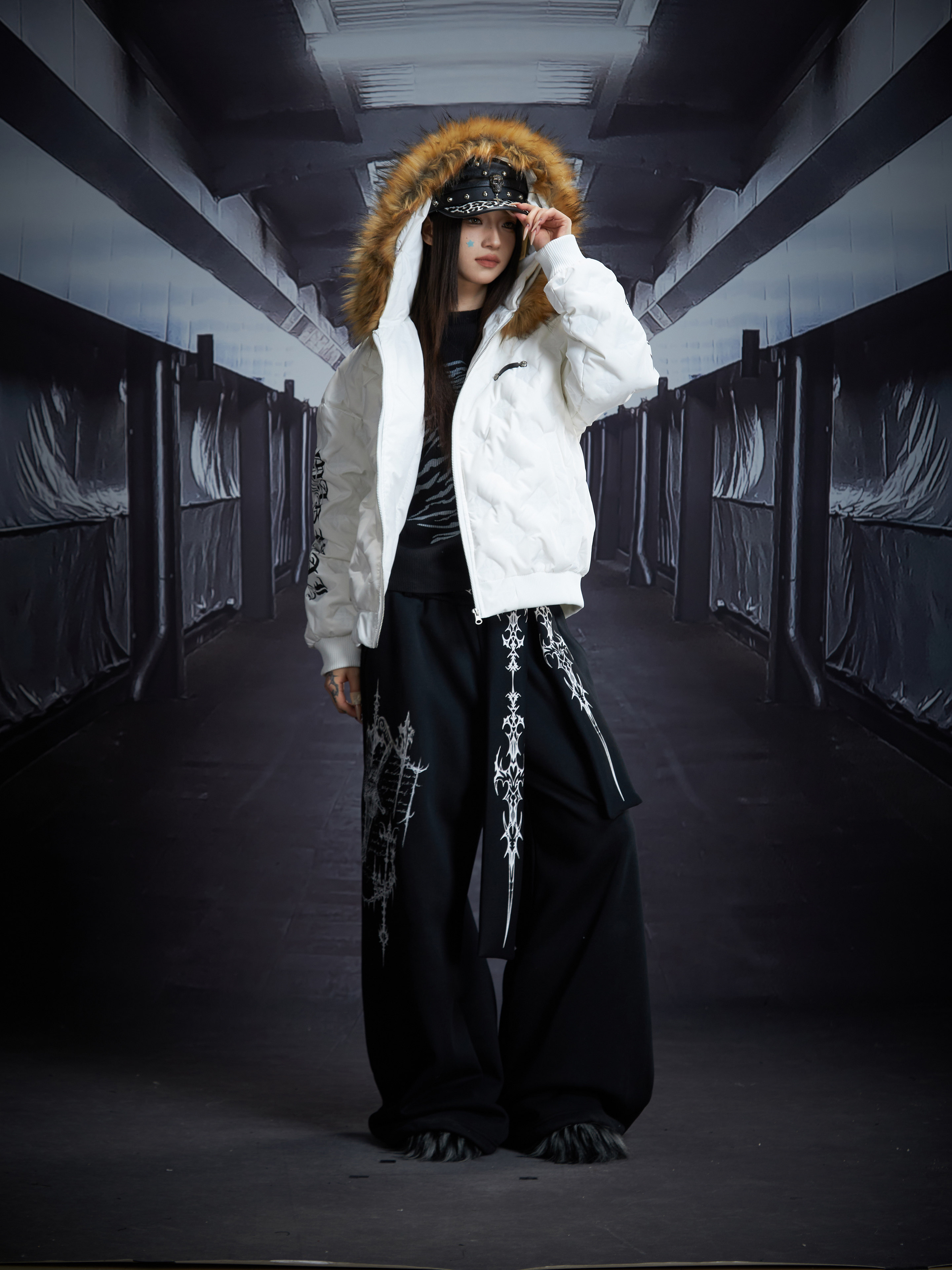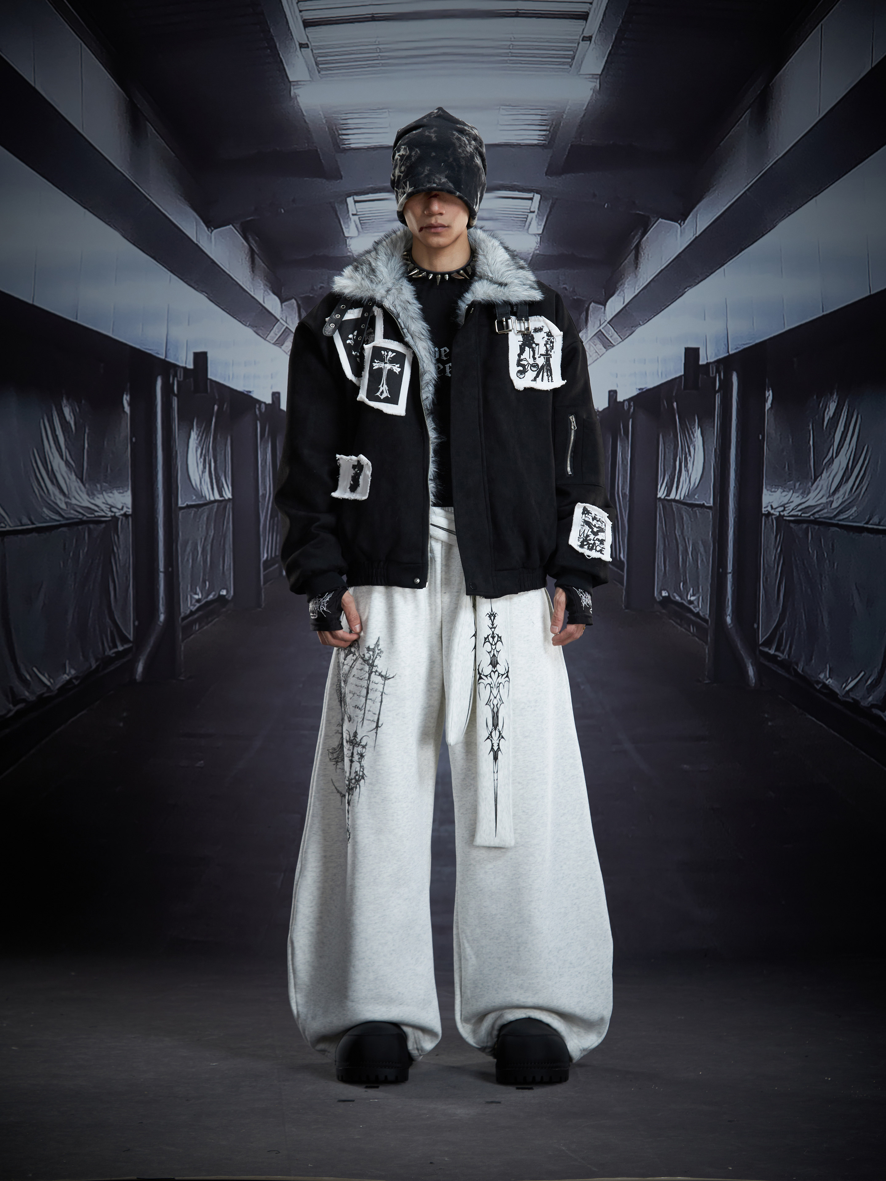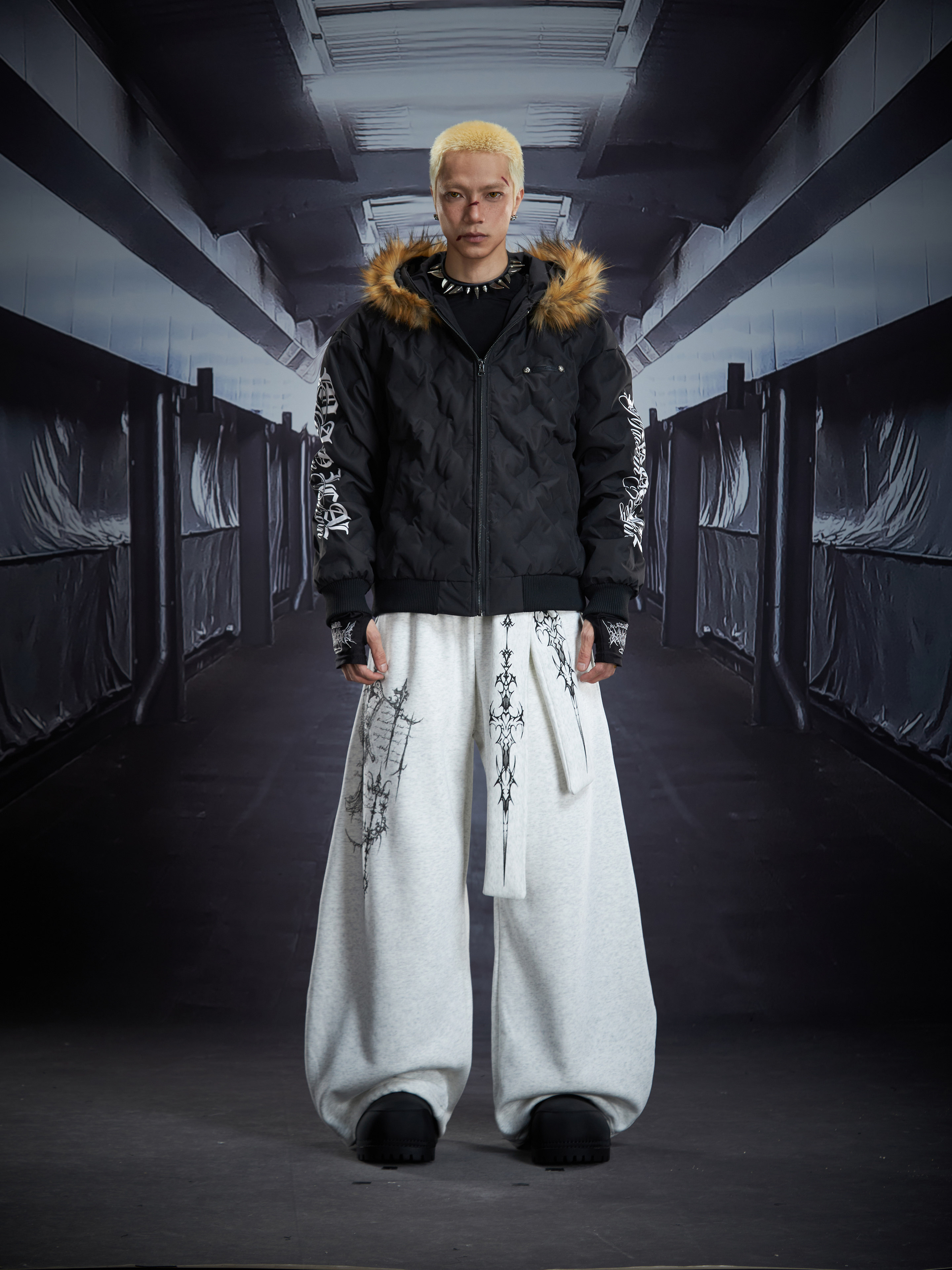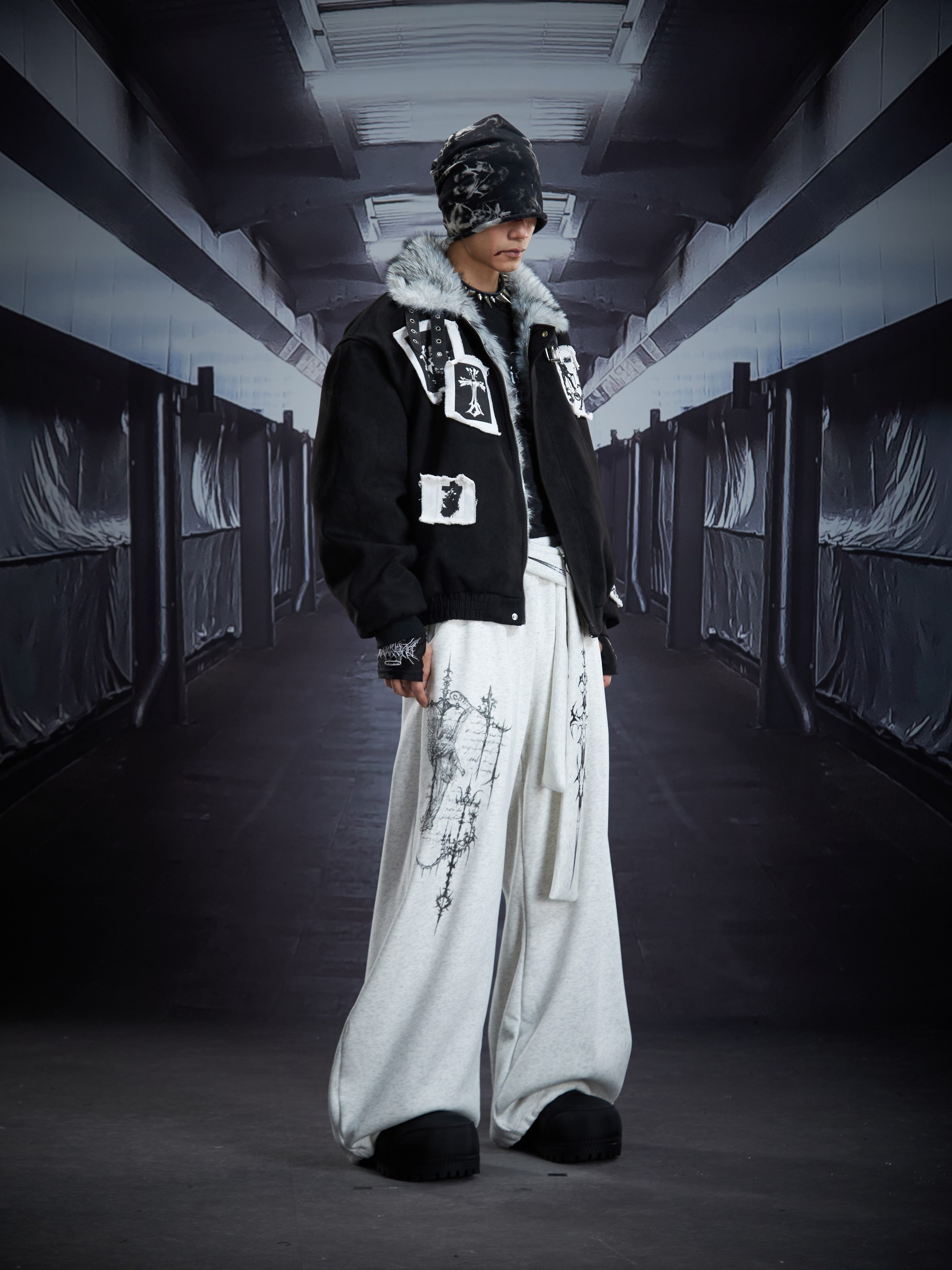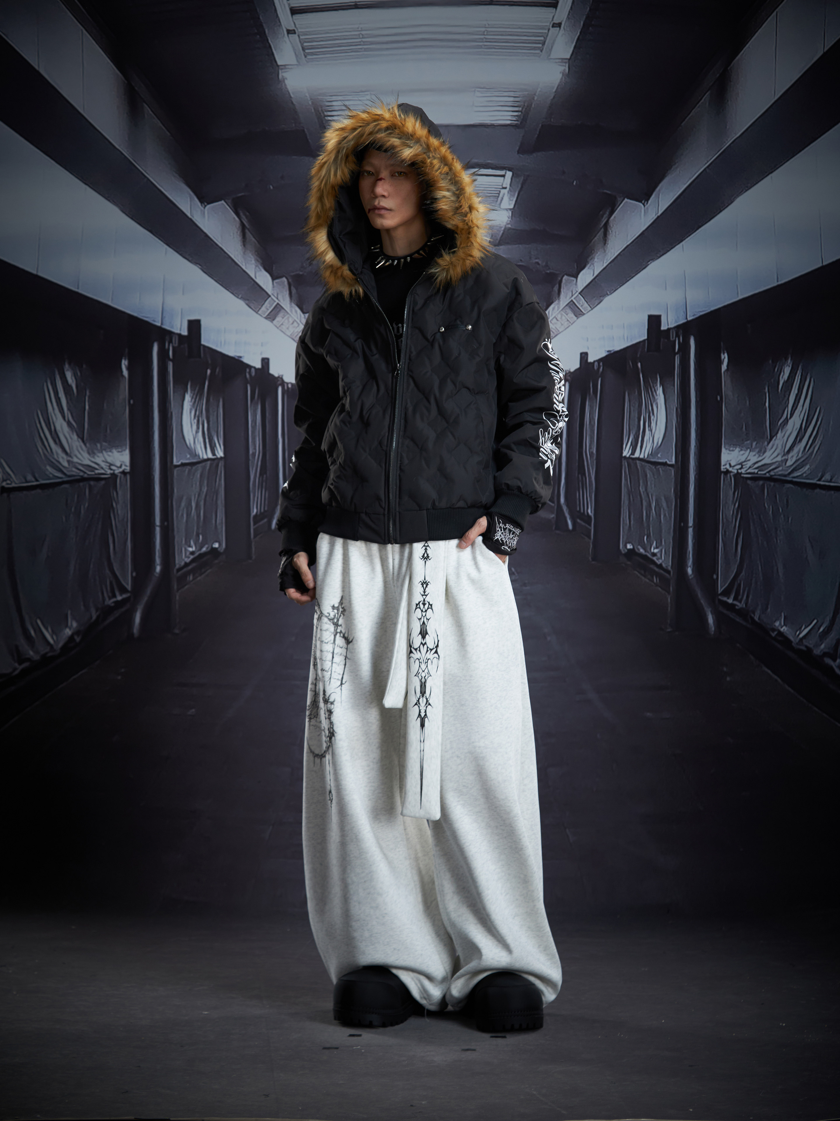 Totem Print Detachable Ribbon Wide Leg Barrel Sweatpants WN22918