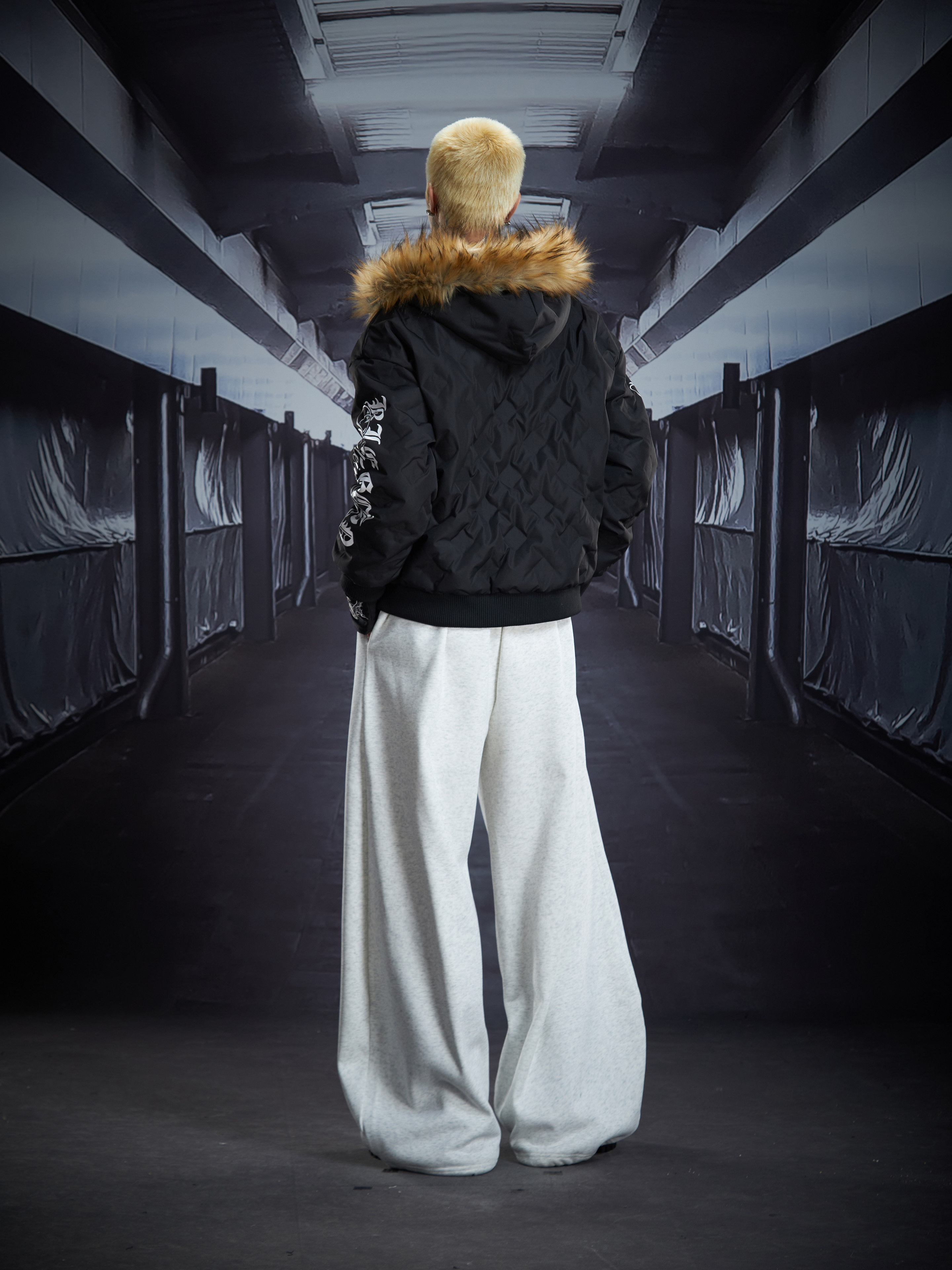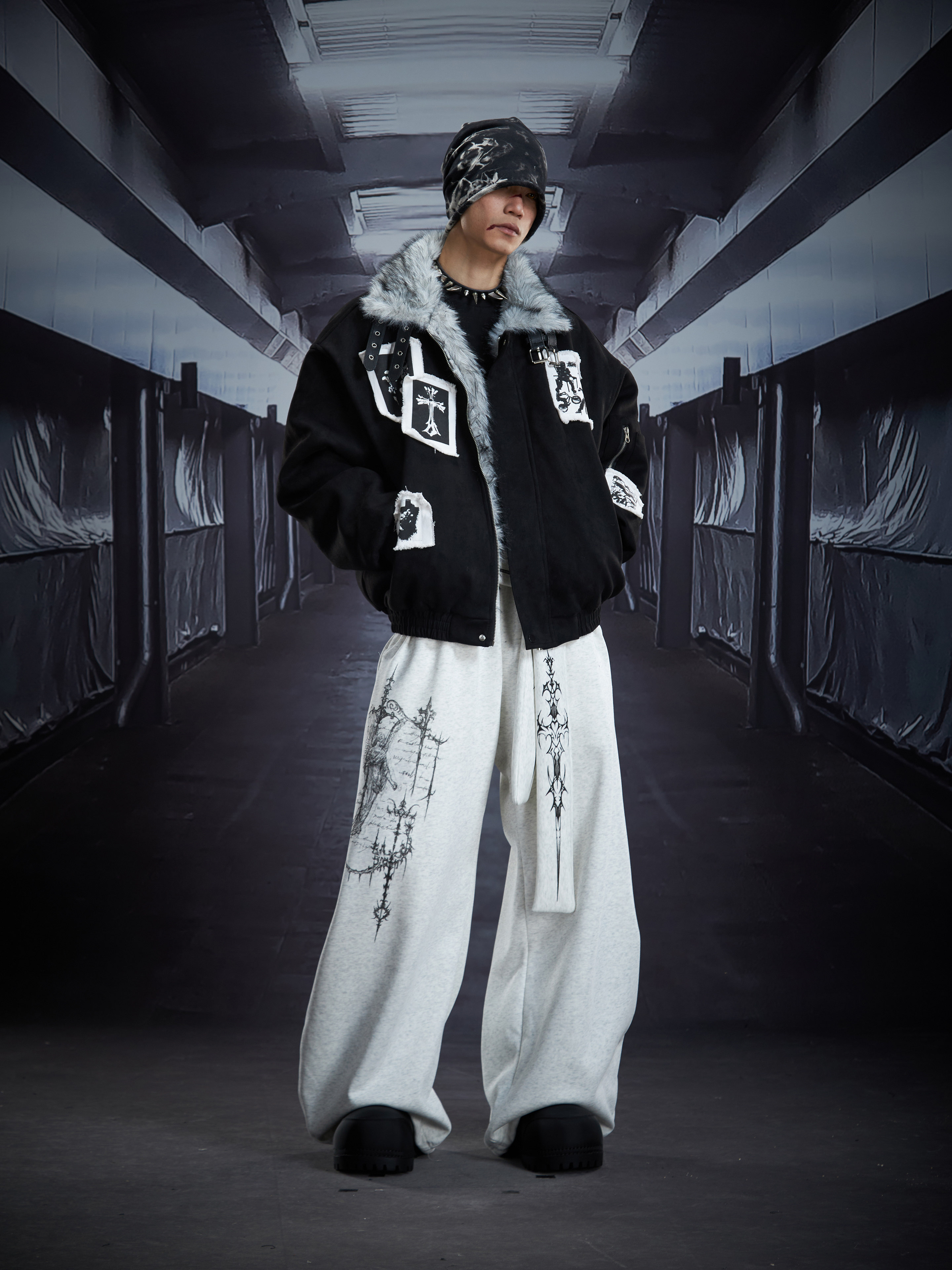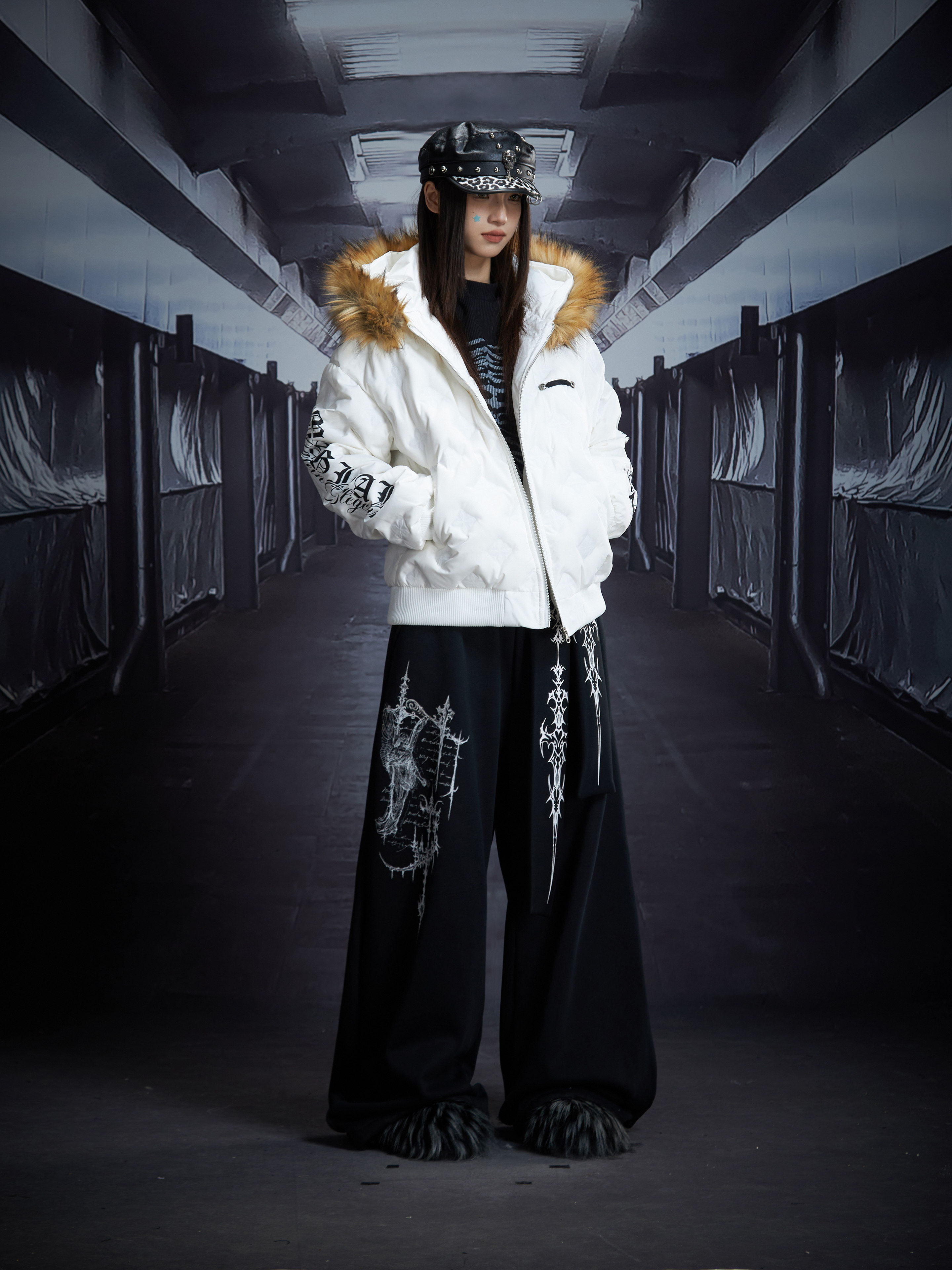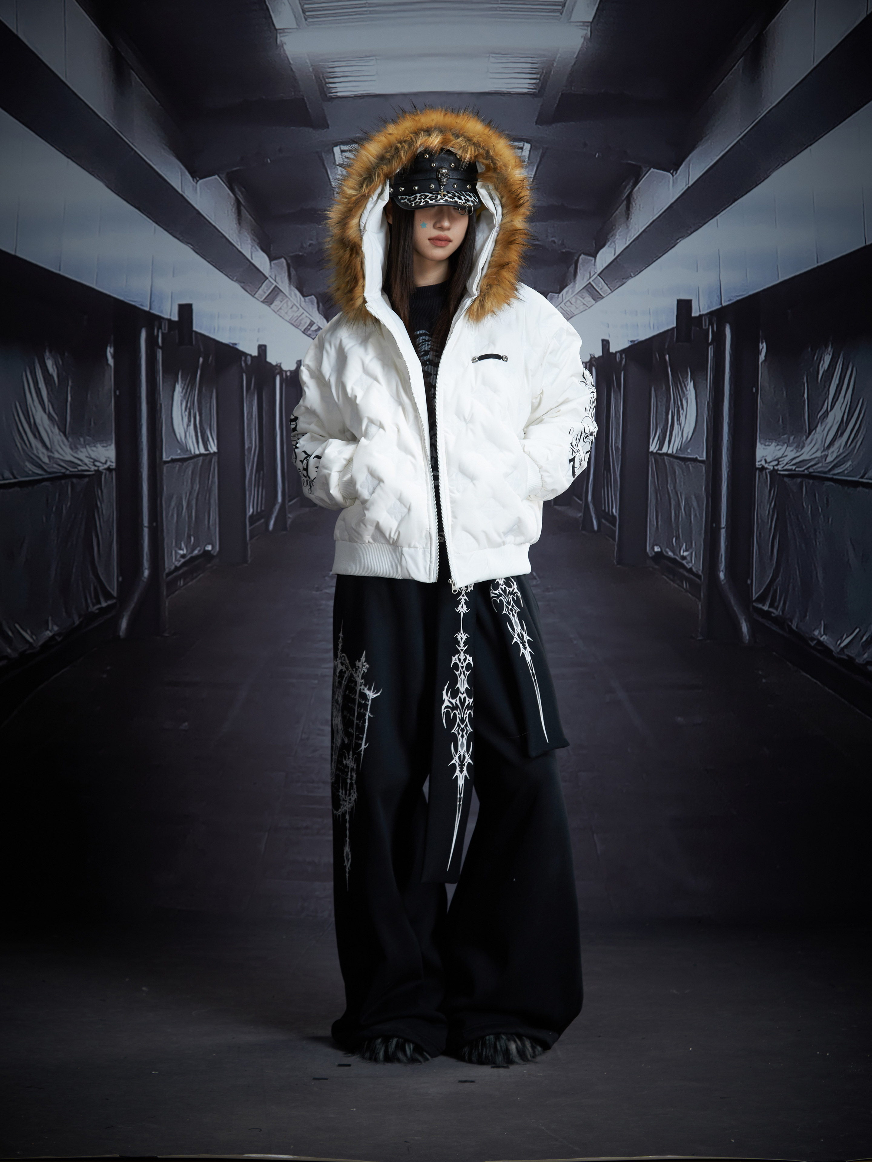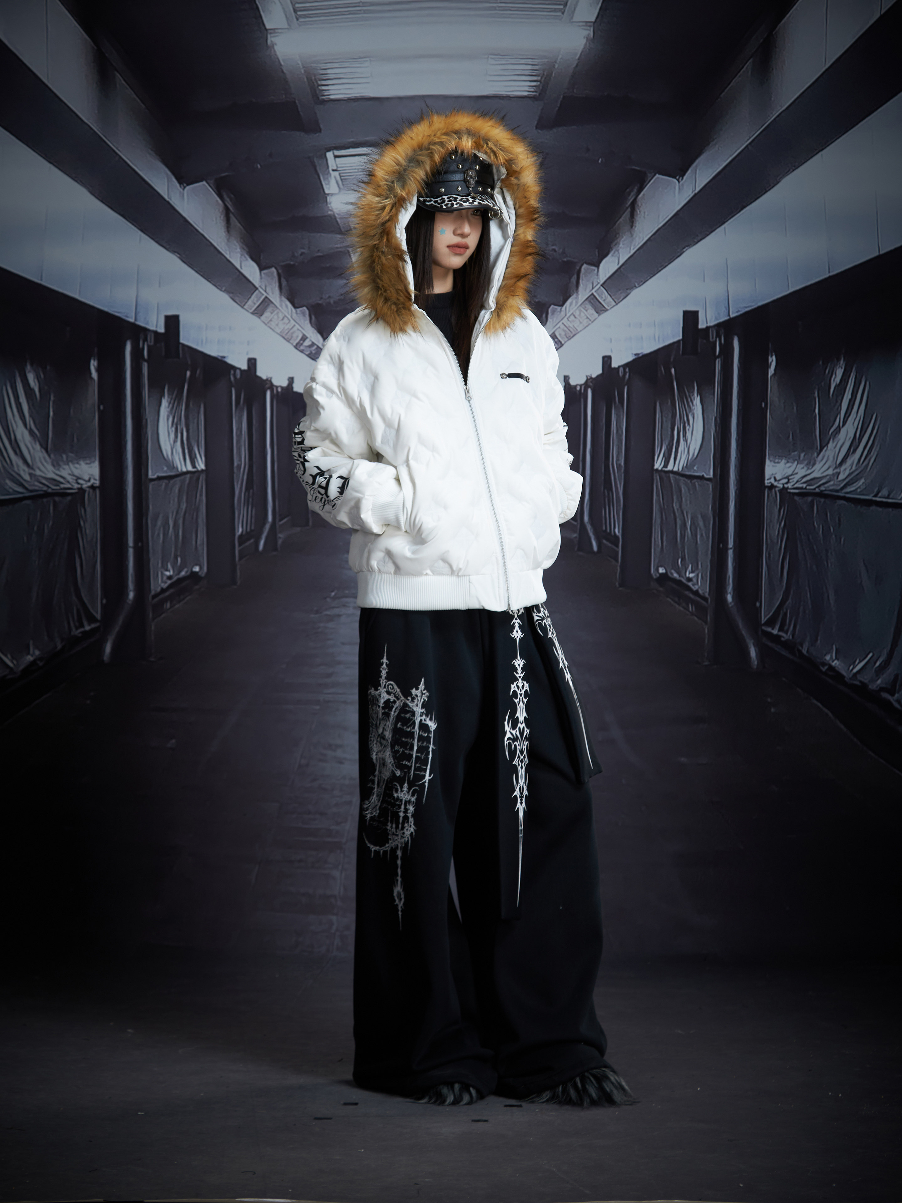 Totem Print Detachable Ribbon Wide Leg Barrel Sweatpants WN22918