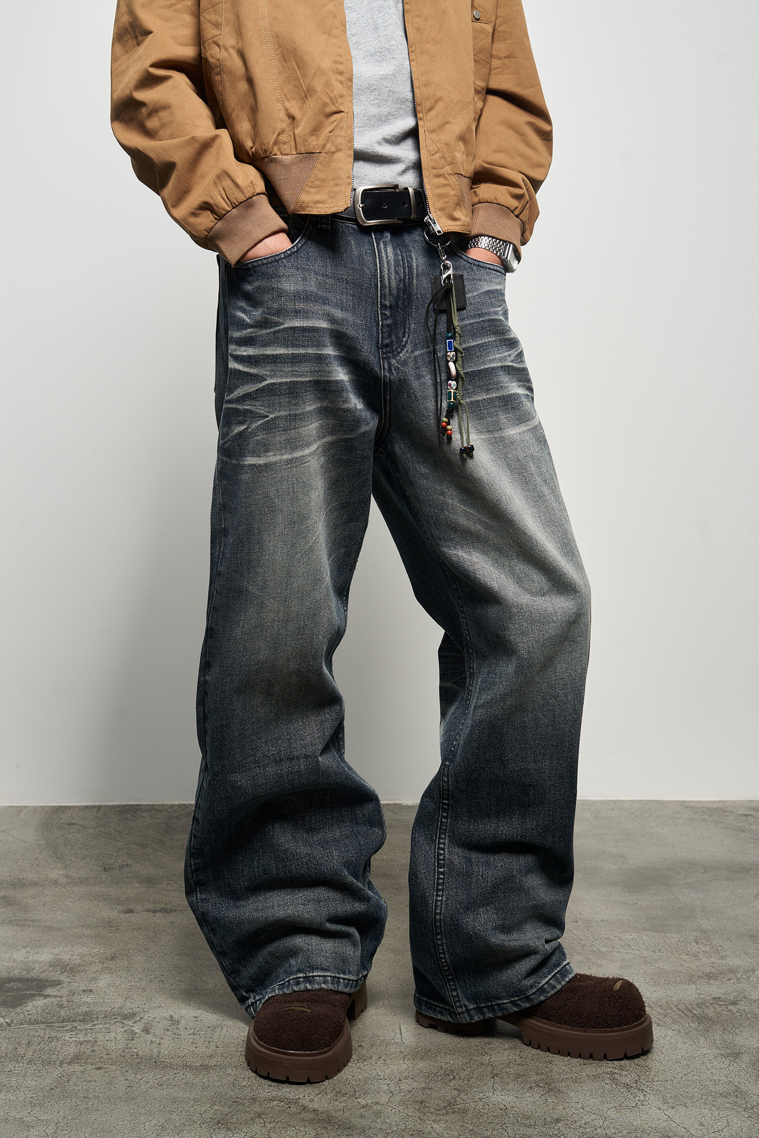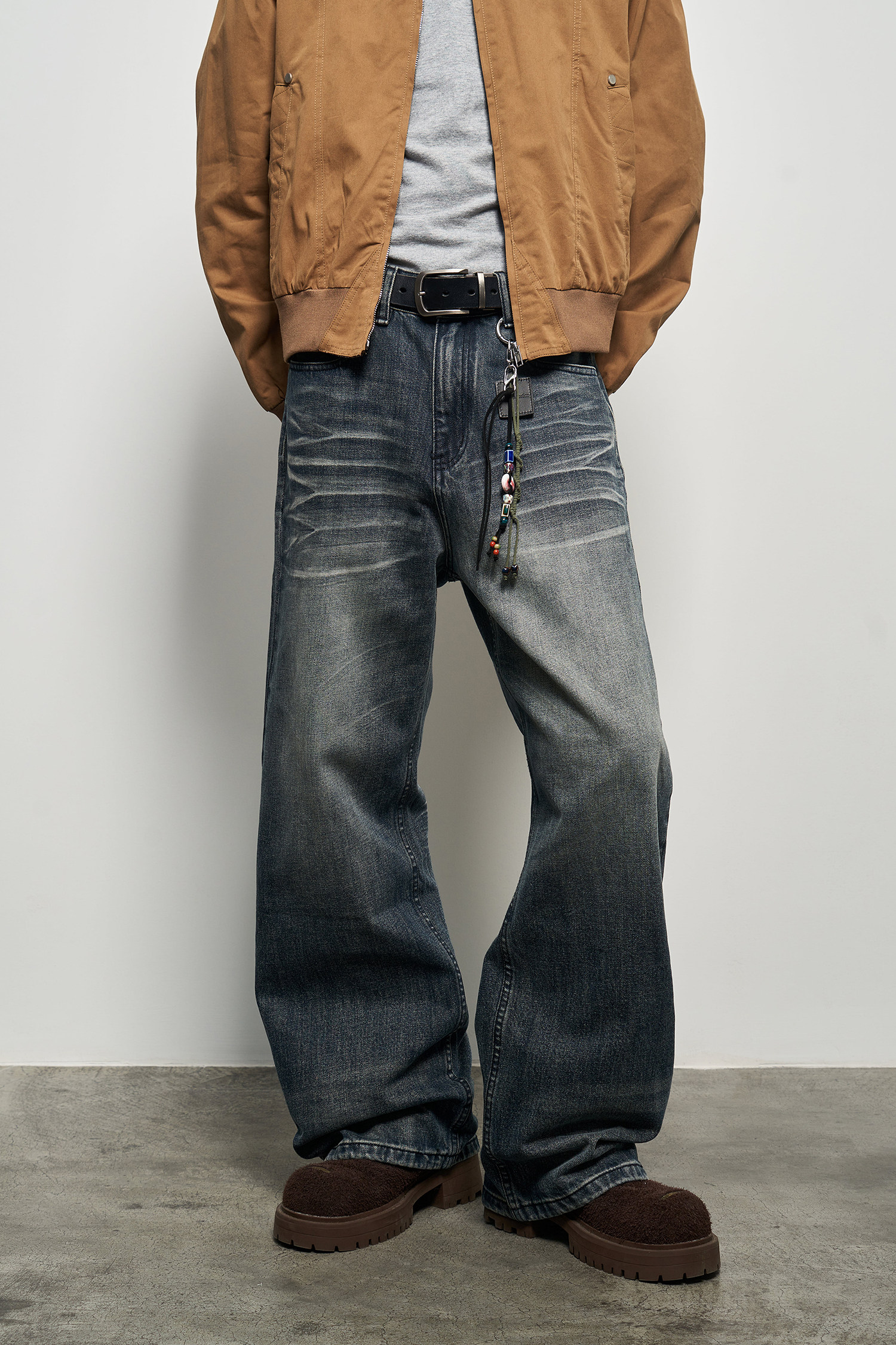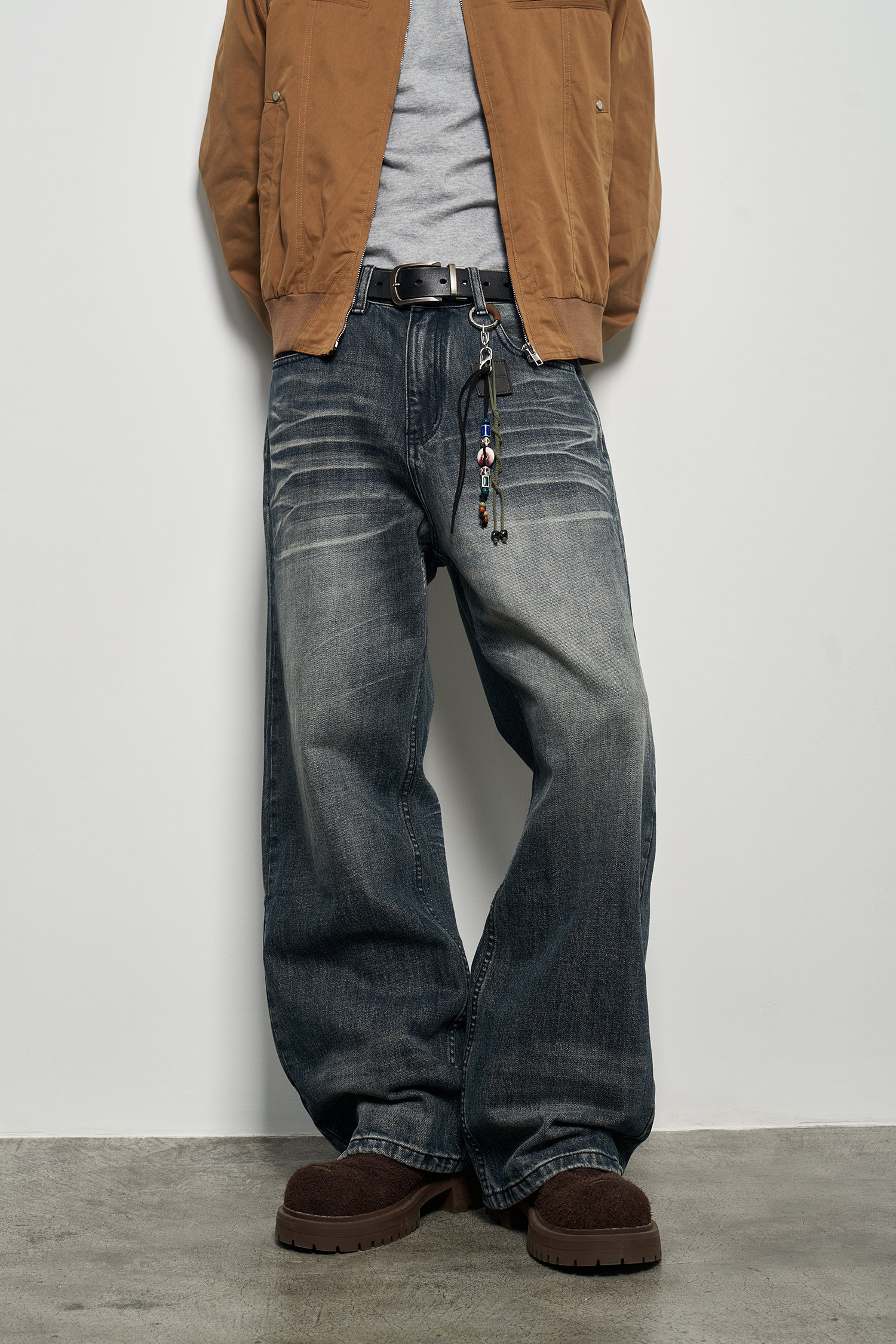 Wash Damage Wide Leg Straight Denim Jeans WN22933