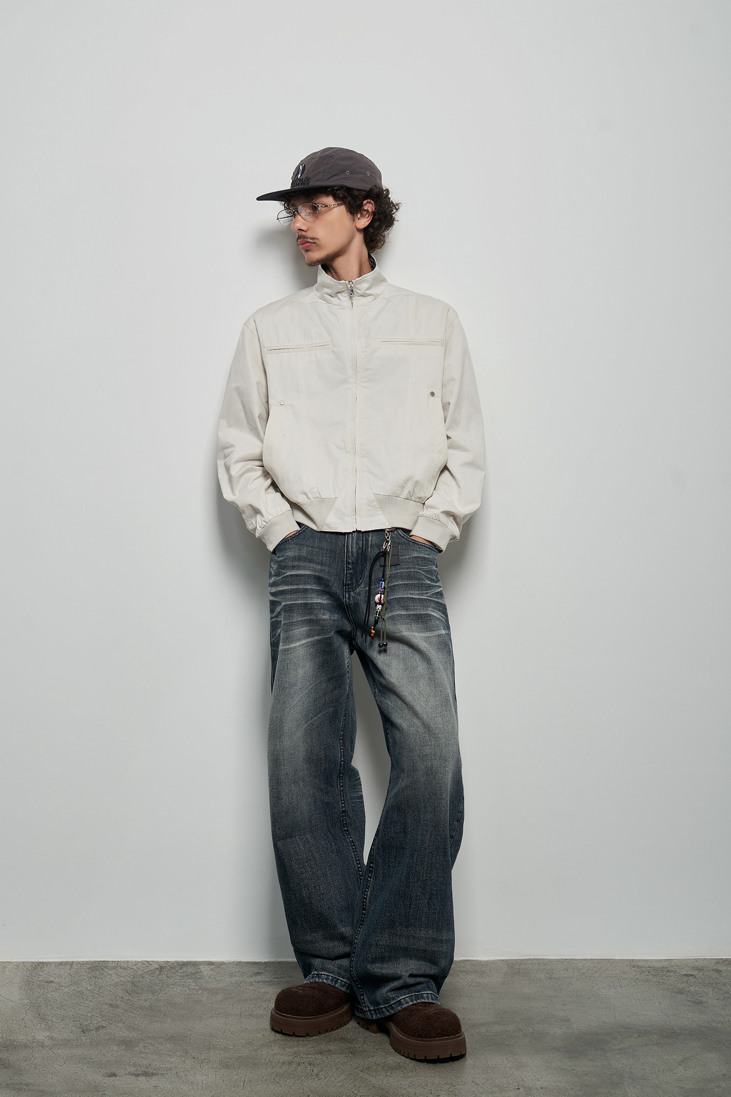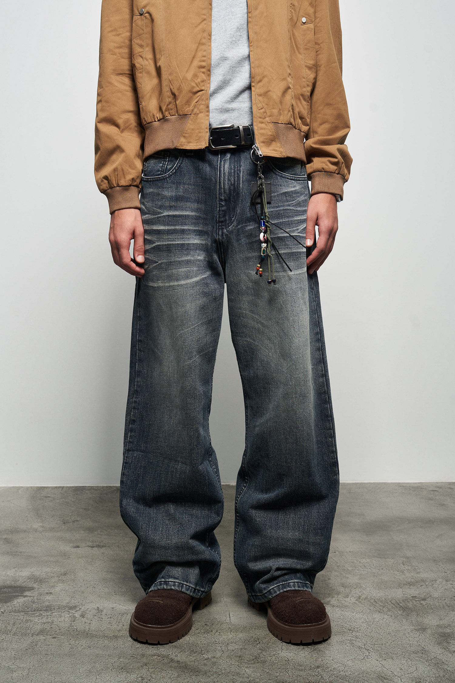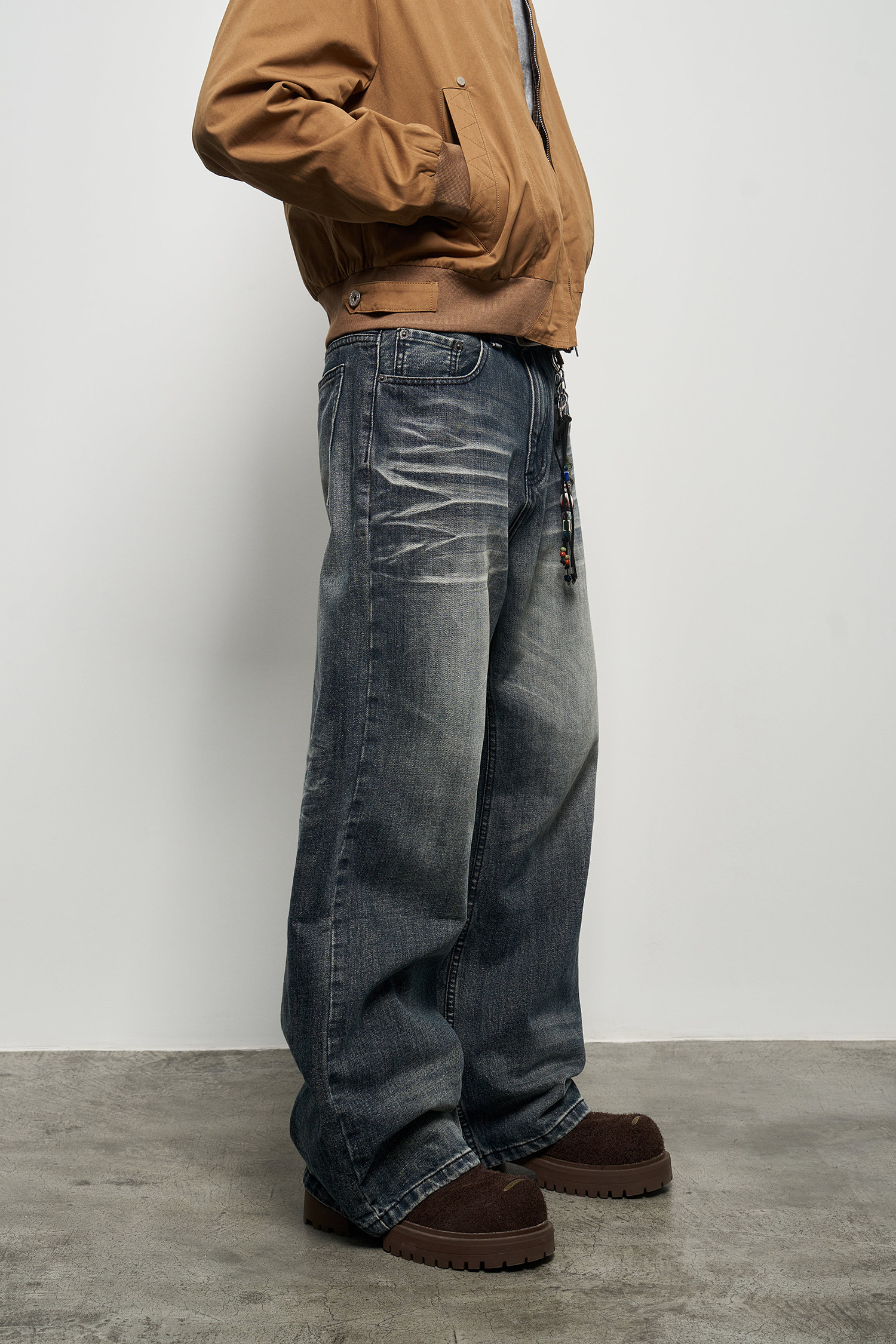 Wash Damage Wide Leg Straight Denim Jeans WN22933