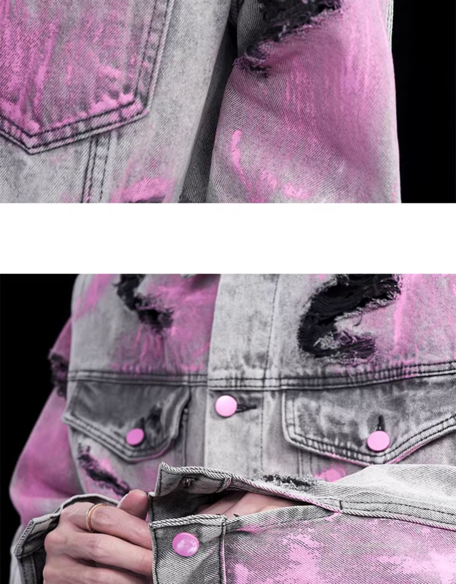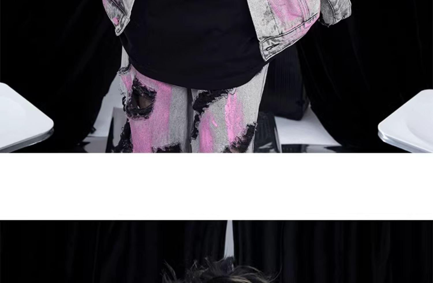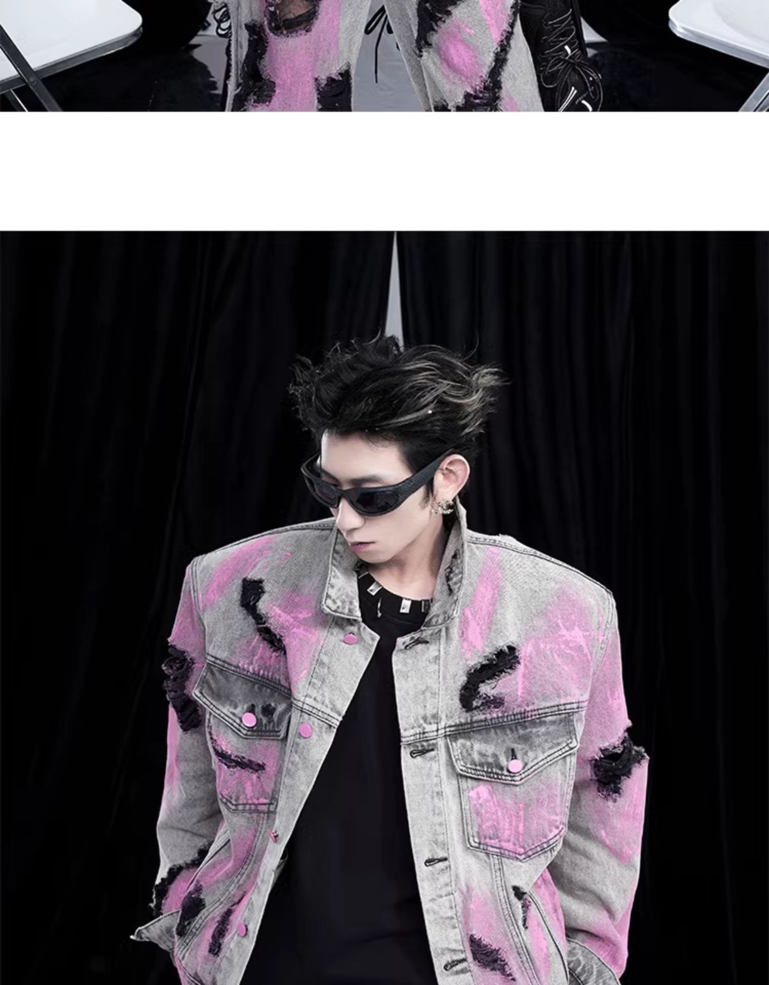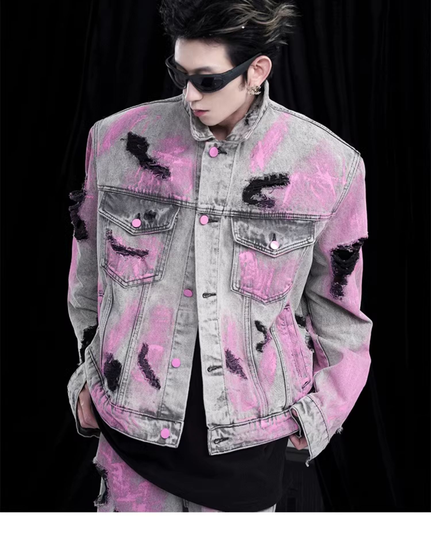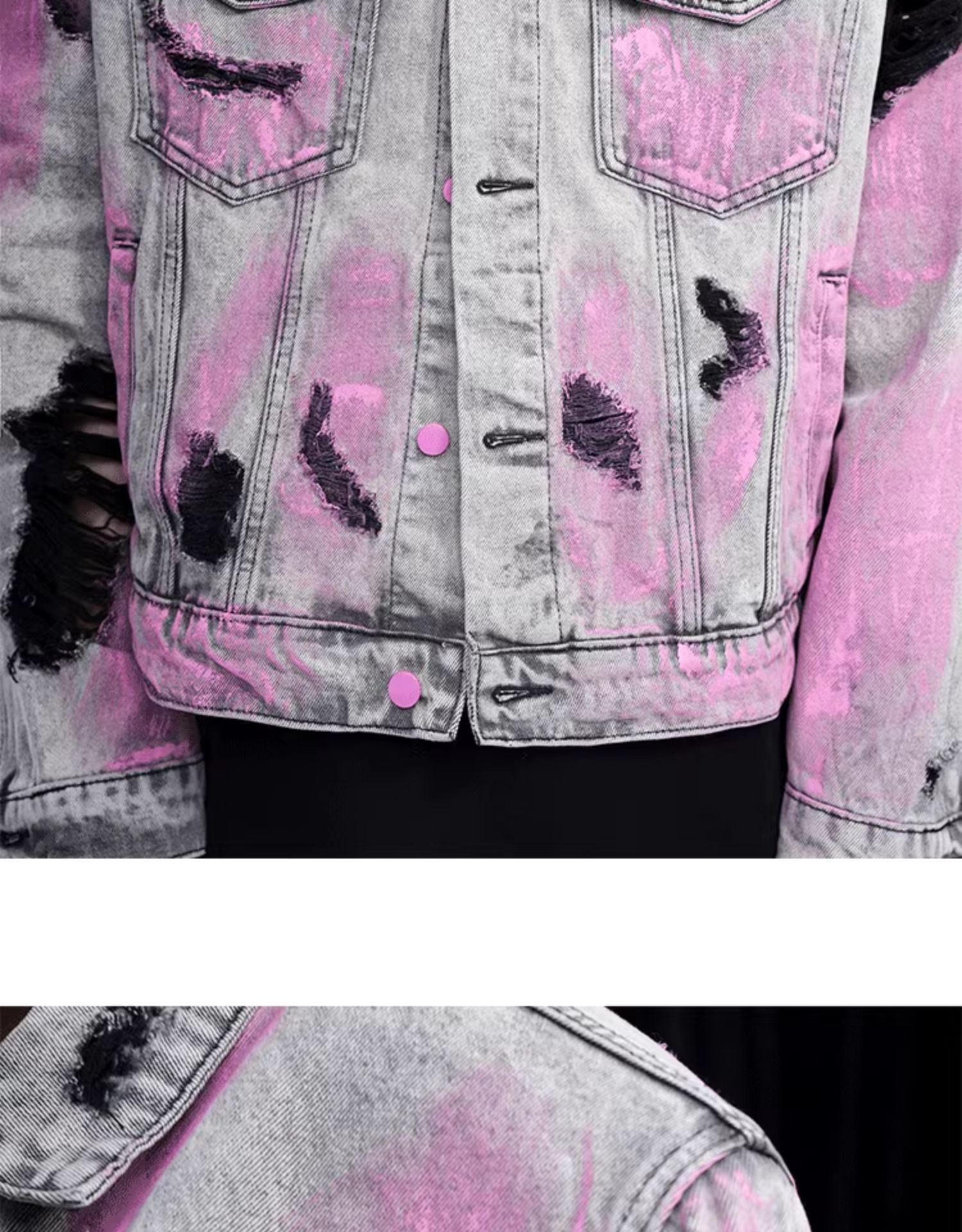 Washed Damage Denim Jacket & Washed Graffiti Wide-Leg Denim Jeans Setup WN6941
