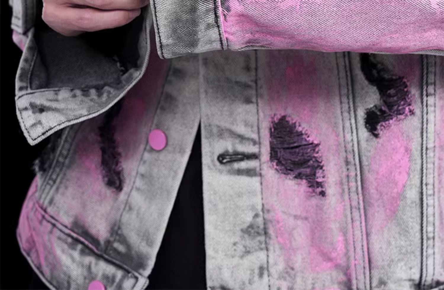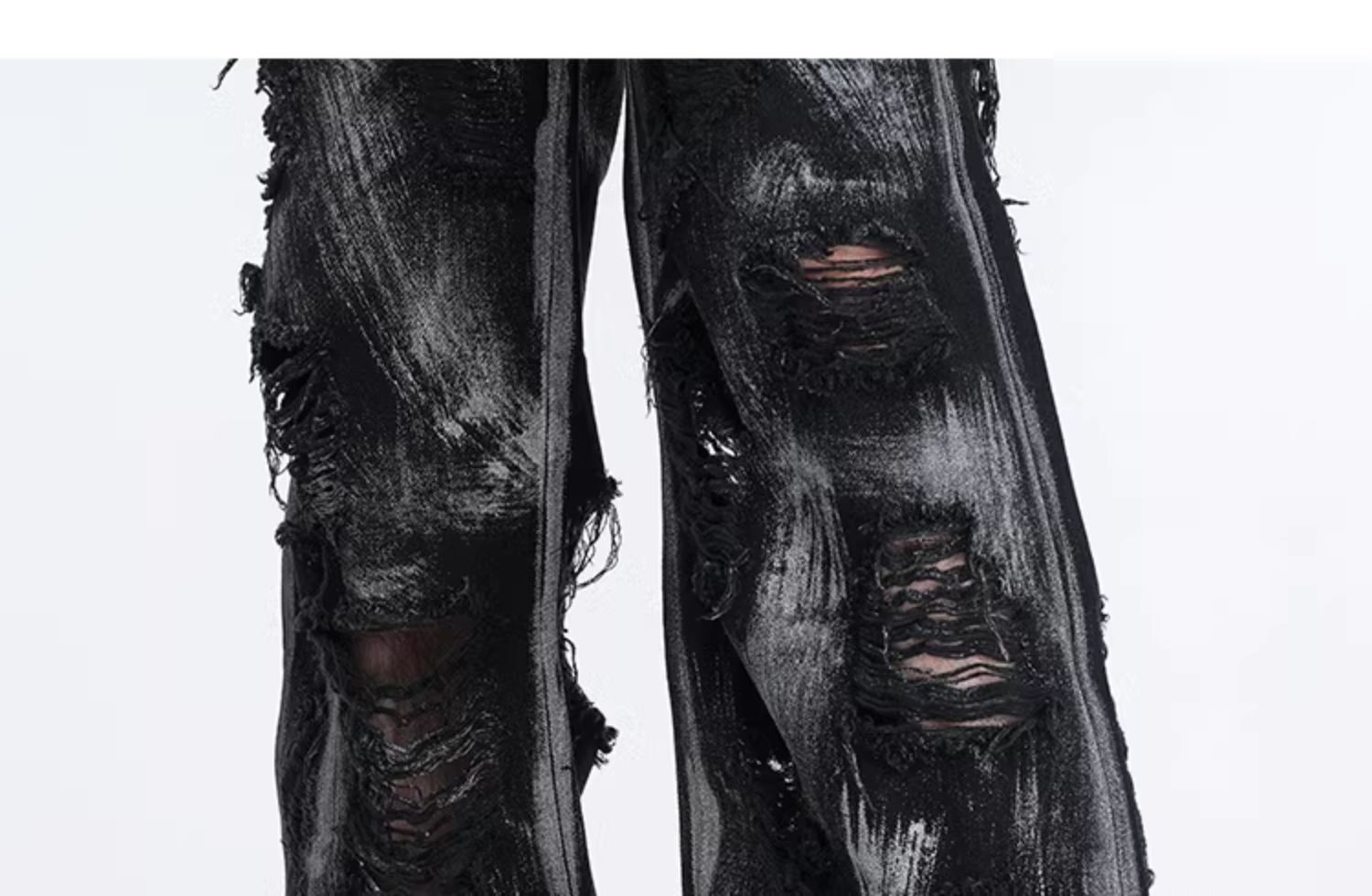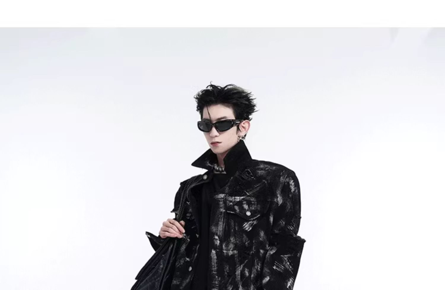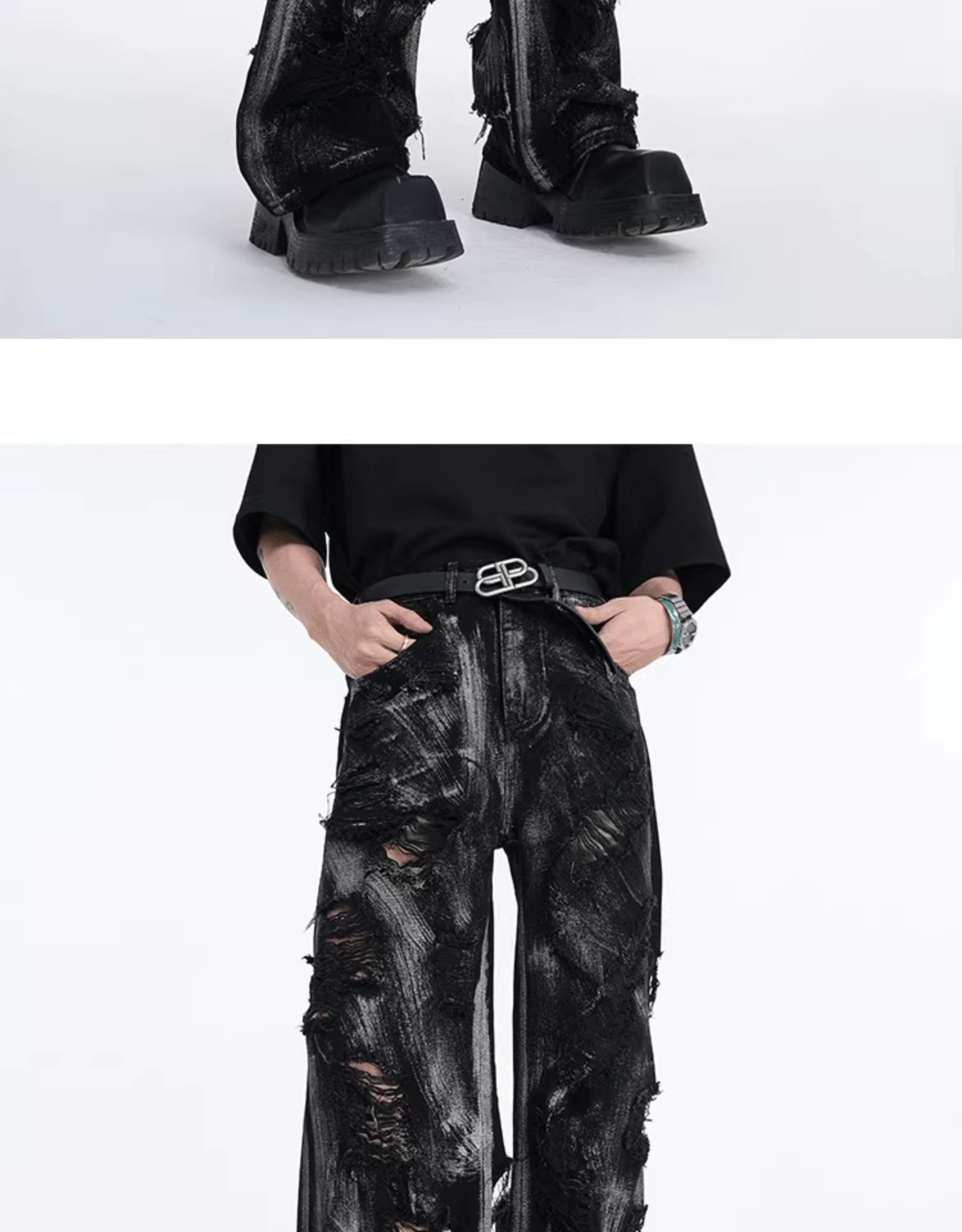 Washed Damage Denim Jacket & Washed Graffiti Wide-Leg Denim Jeans Setup WN6941