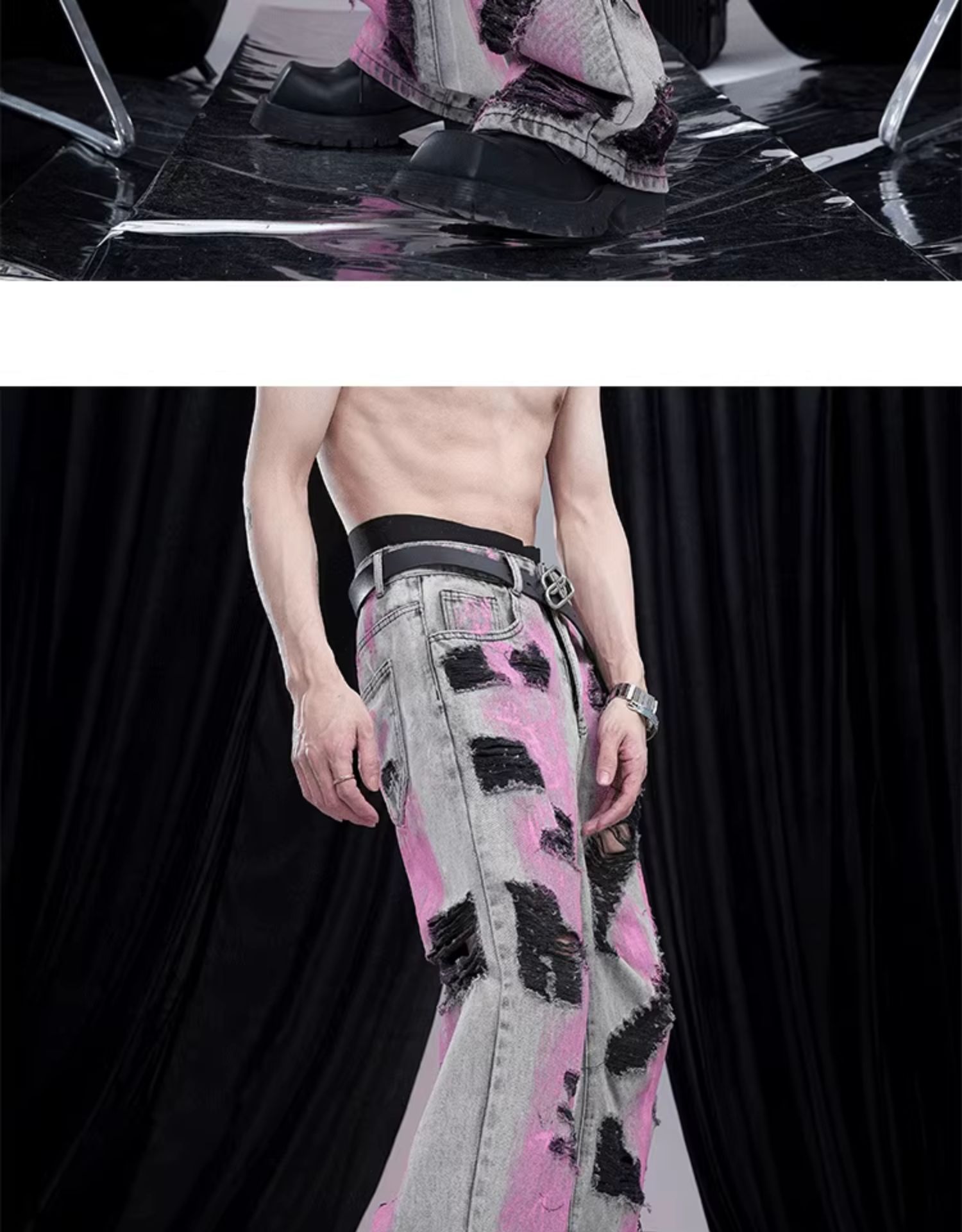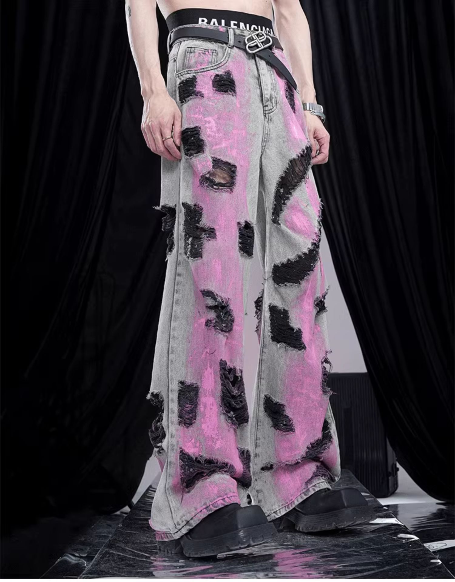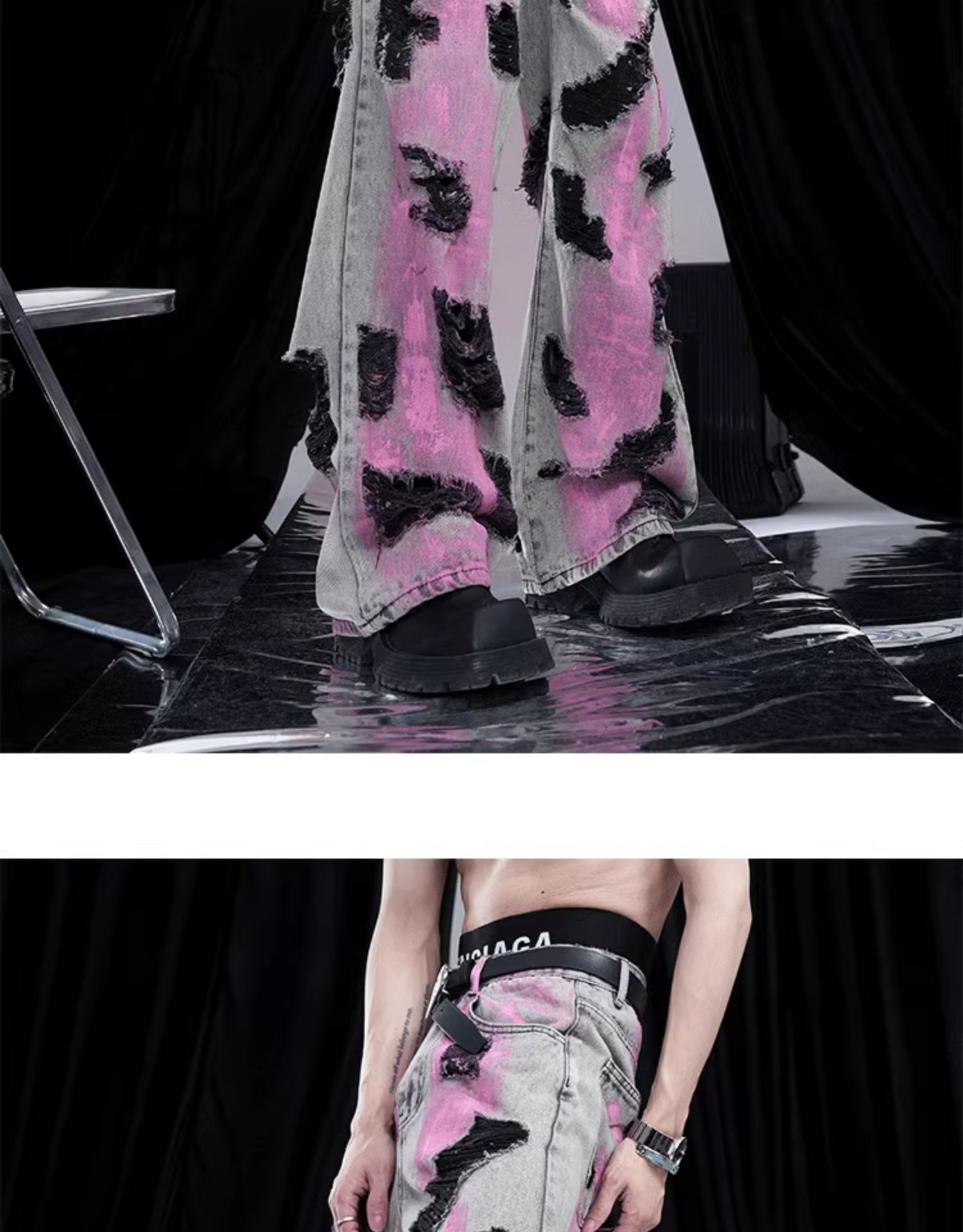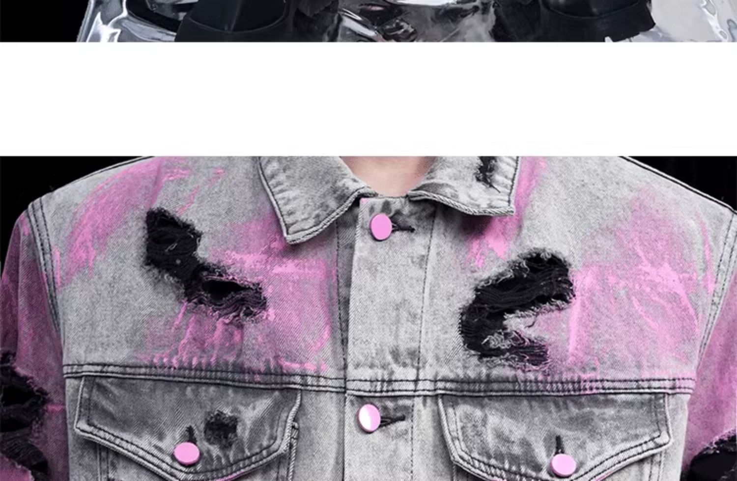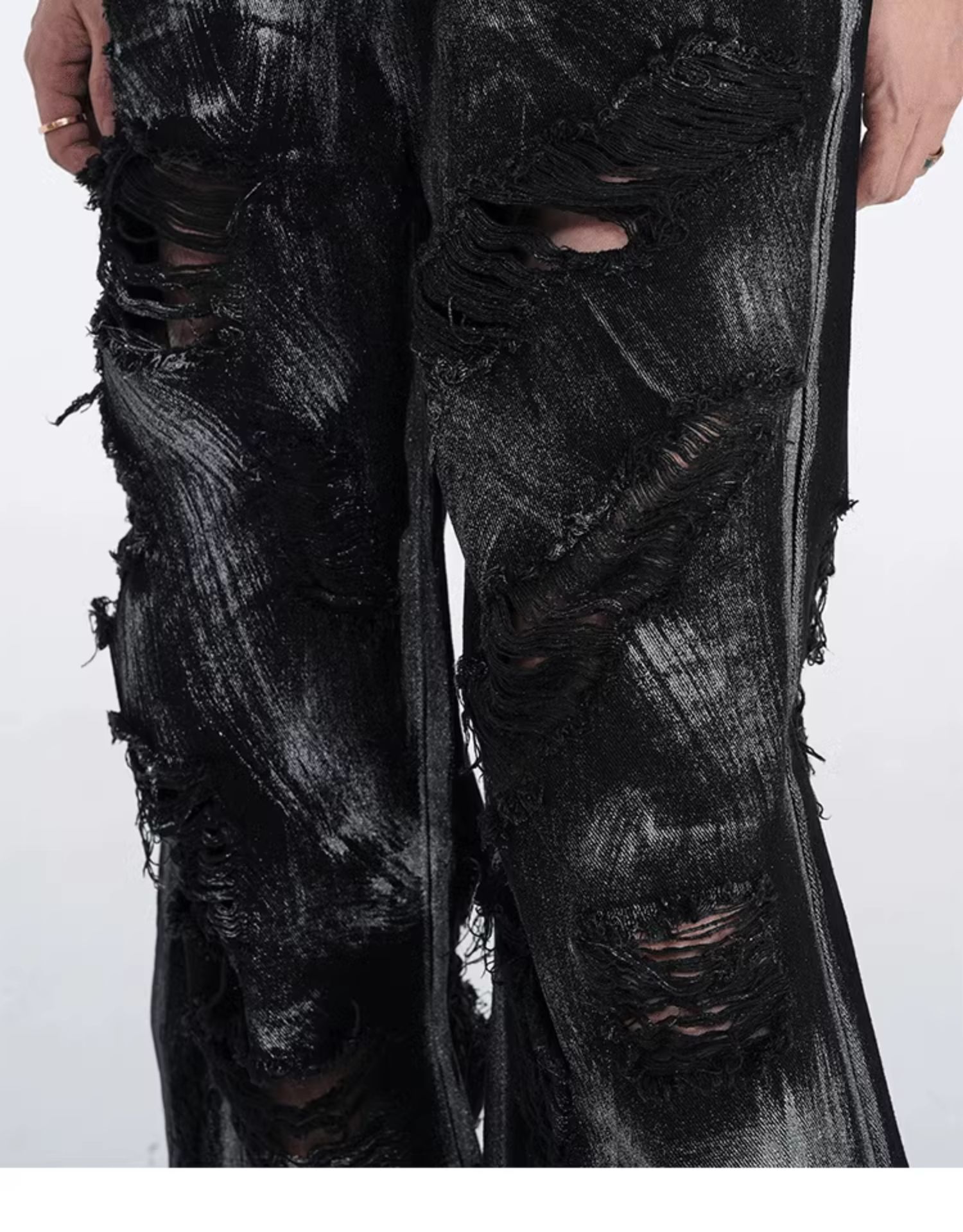 Washed Damage Denim Jacket & Washed Graffiti Wide-Leg Denim Jeans Setup WN6941