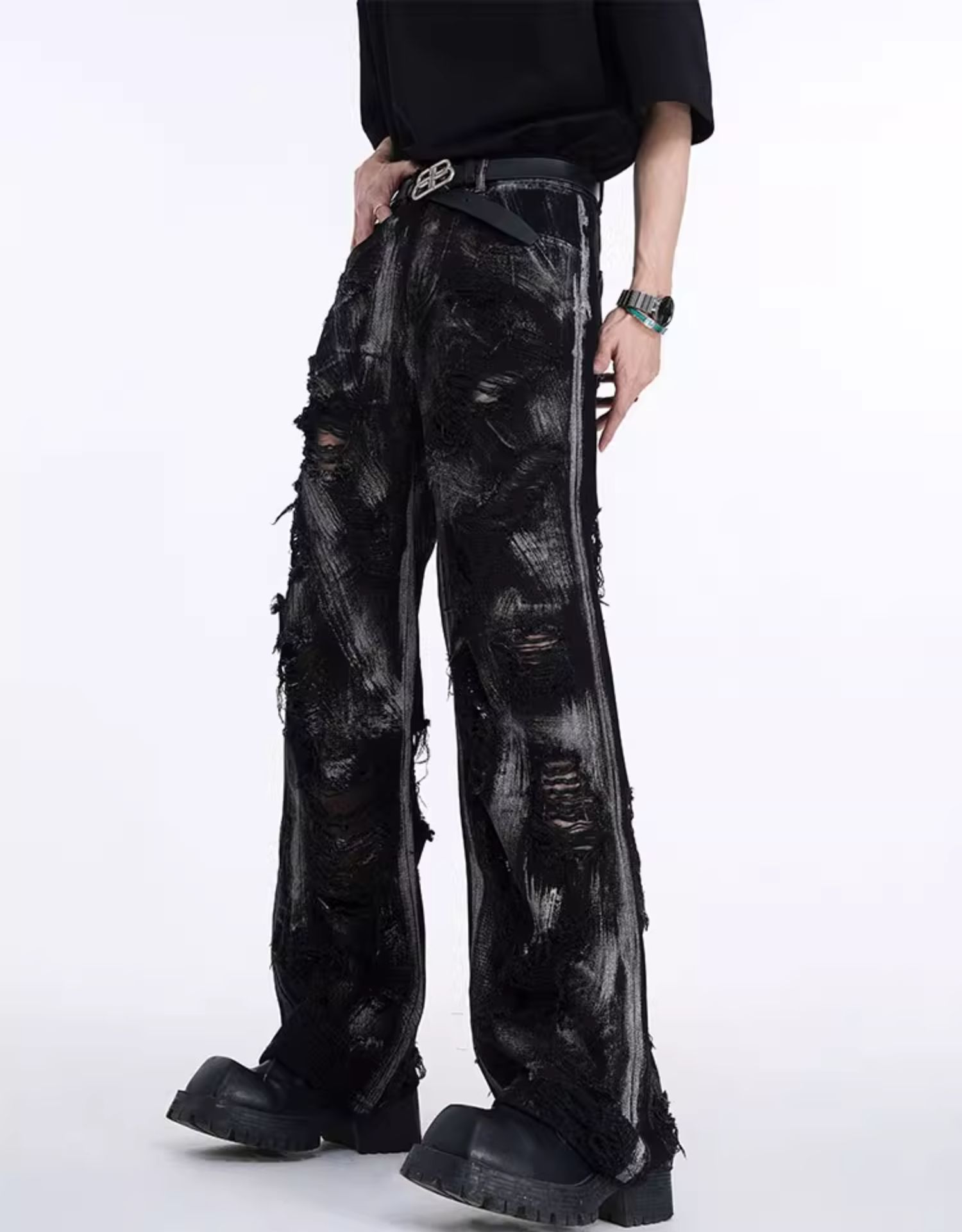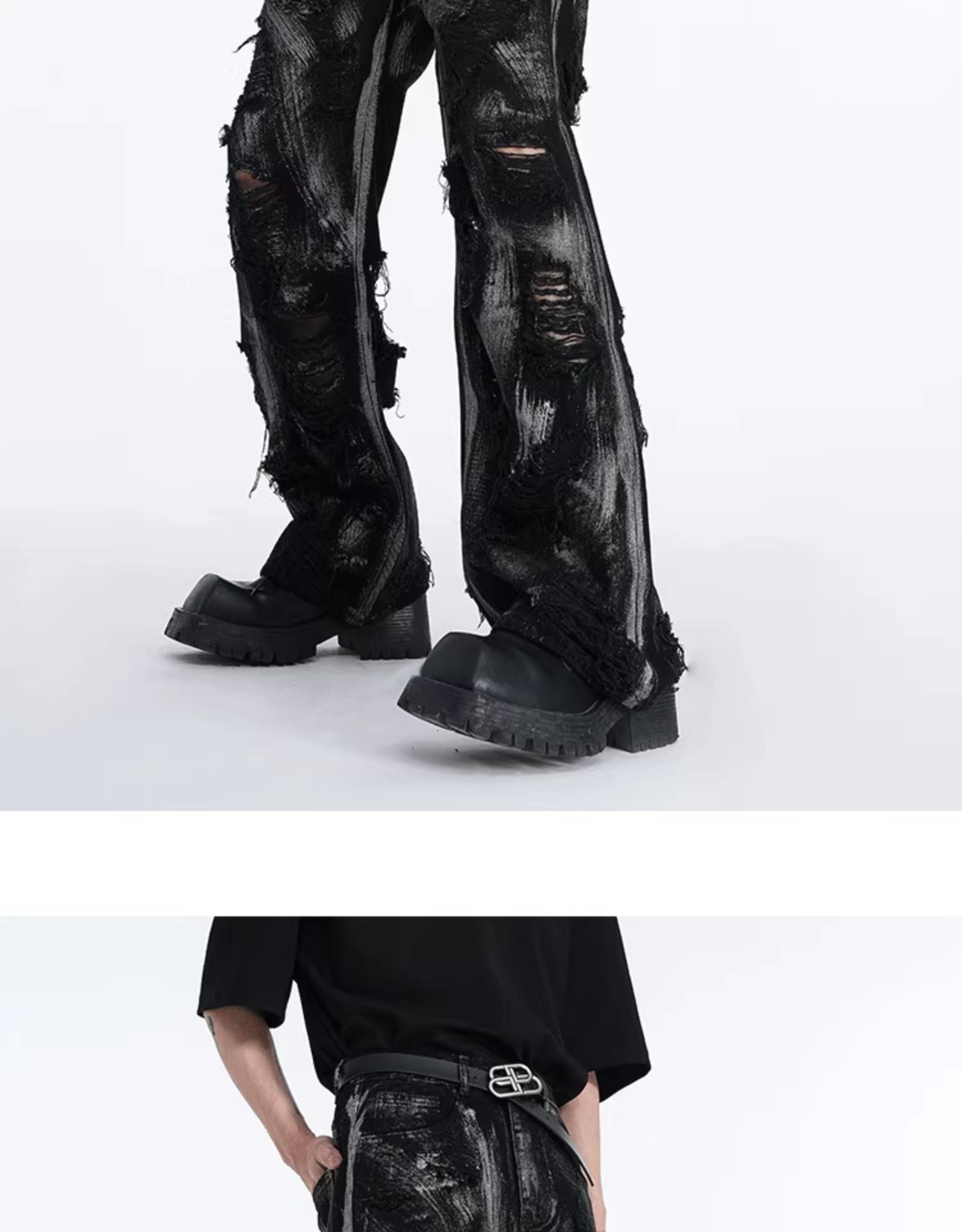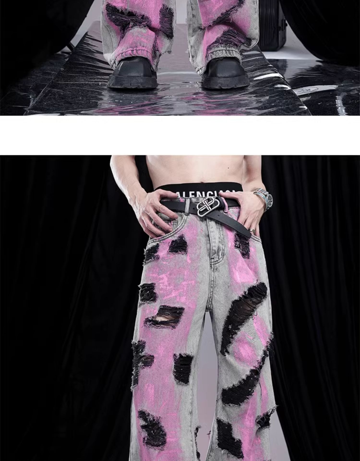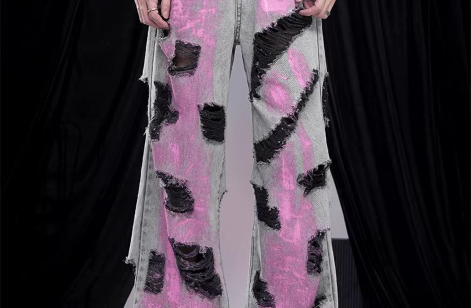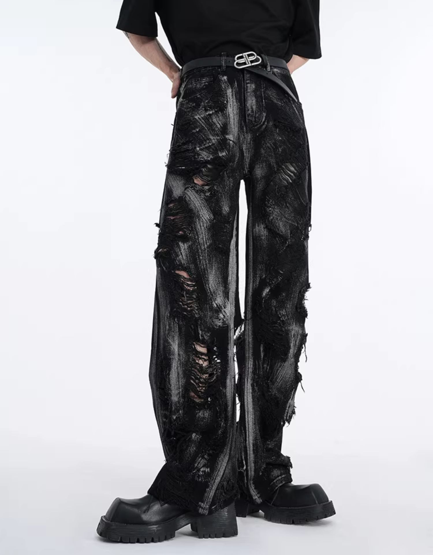Washed Damage Denim Jacket & Washed Graffiti Wide-Leg Denim Jeans Setup WN6941