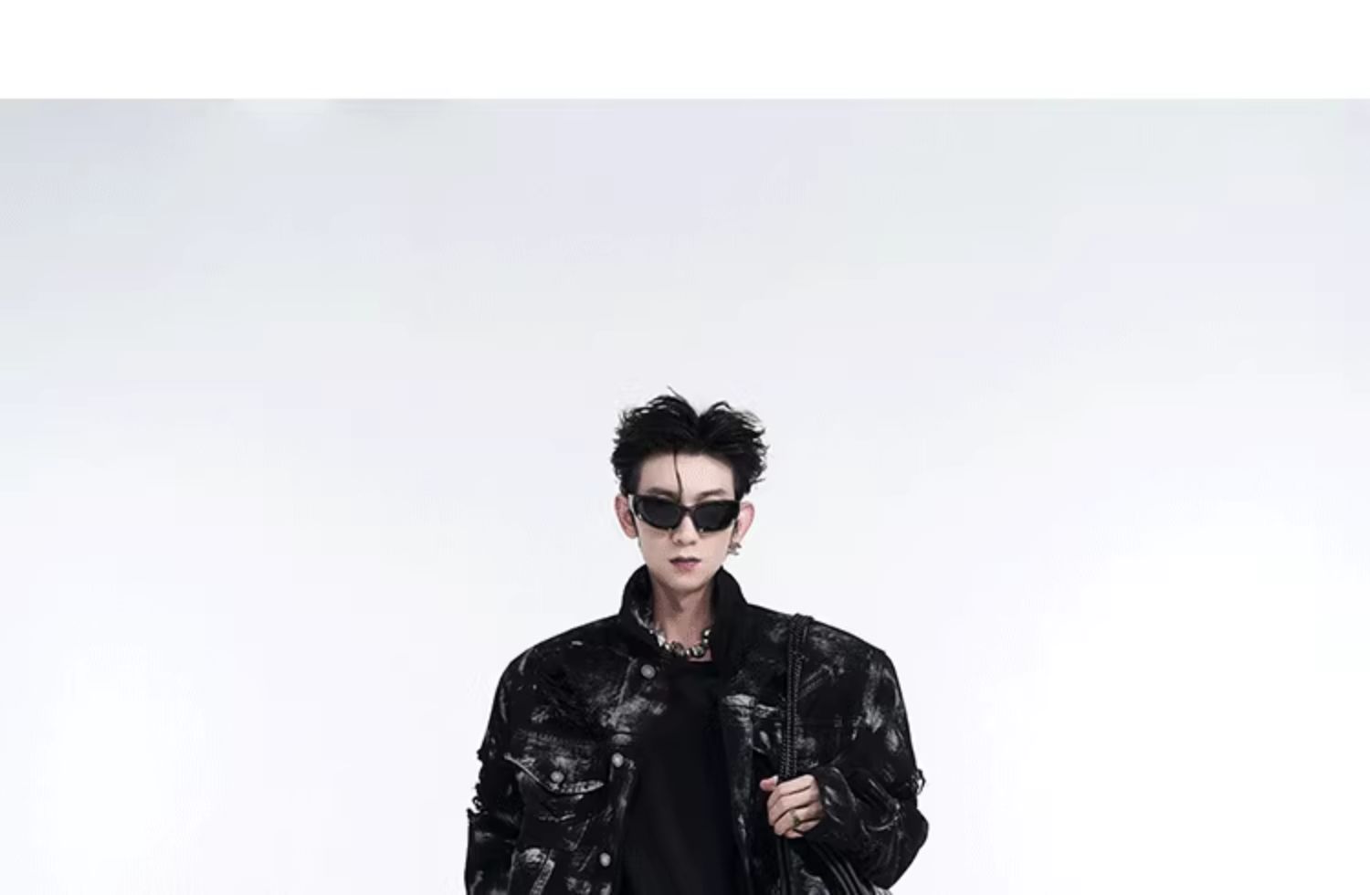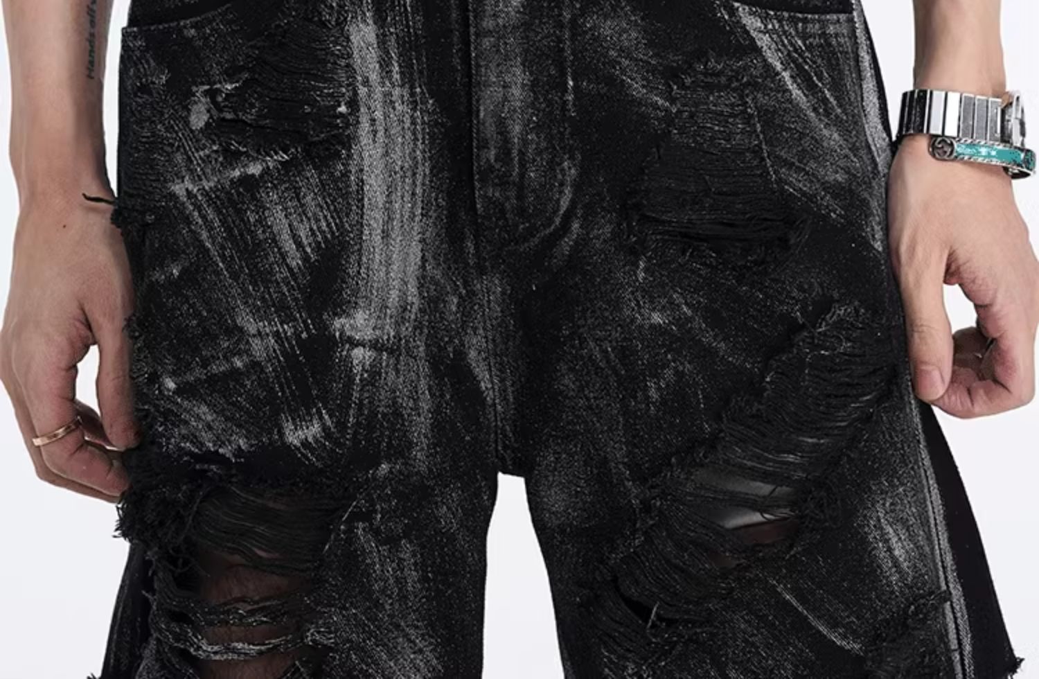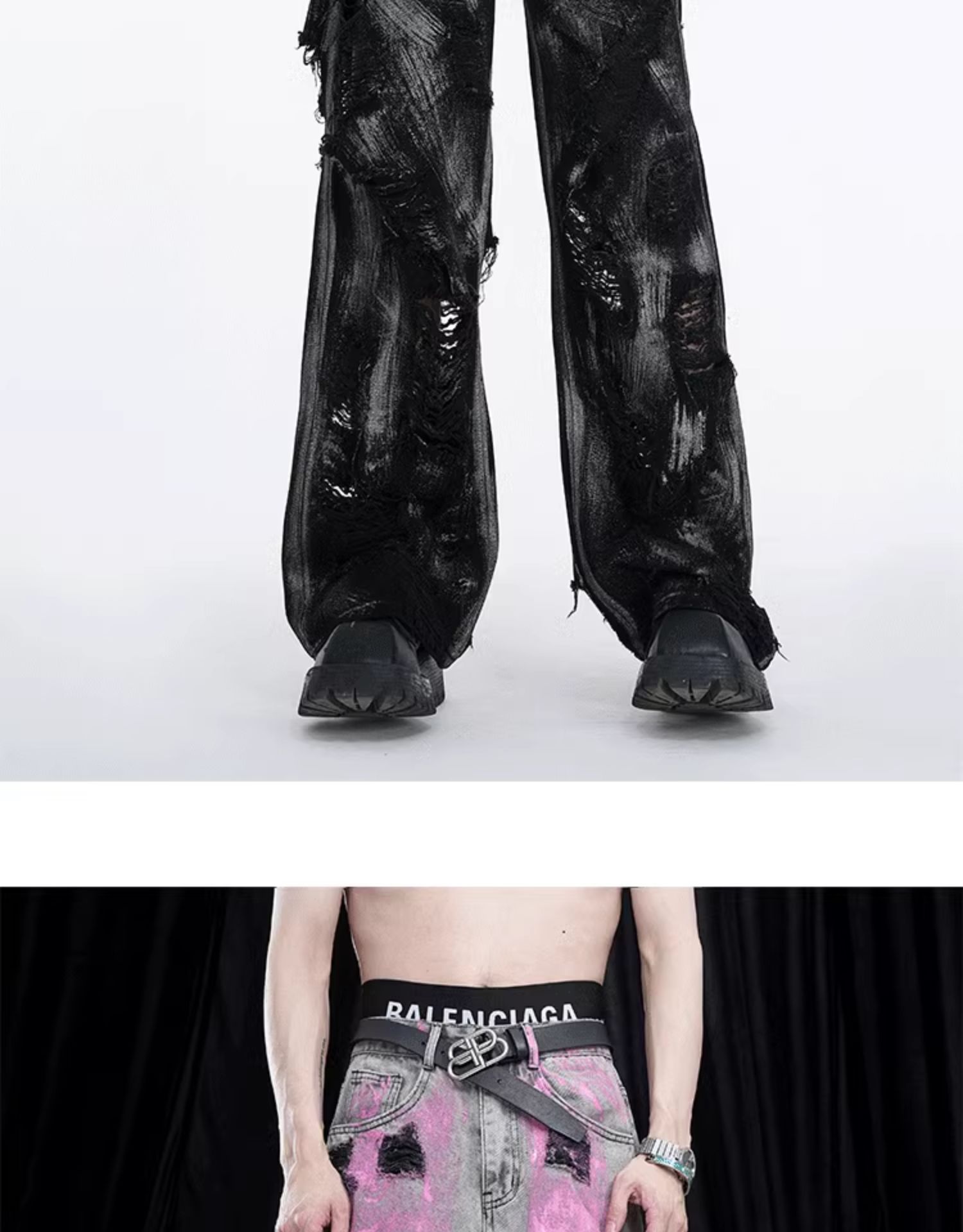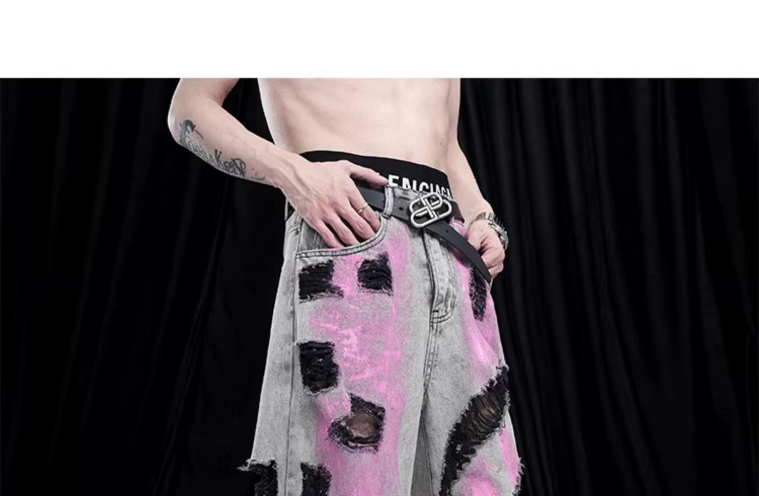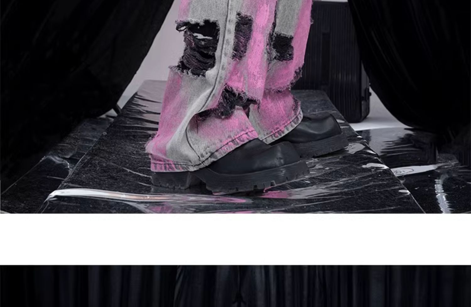 Washed Damage Denim Jacket & Washed Graffiti Wide-Leg Denim Jeans Setup WN6941