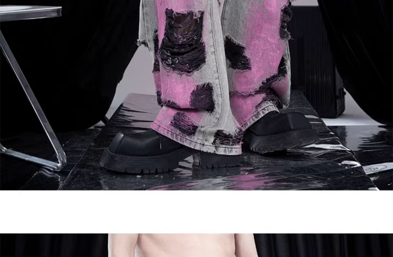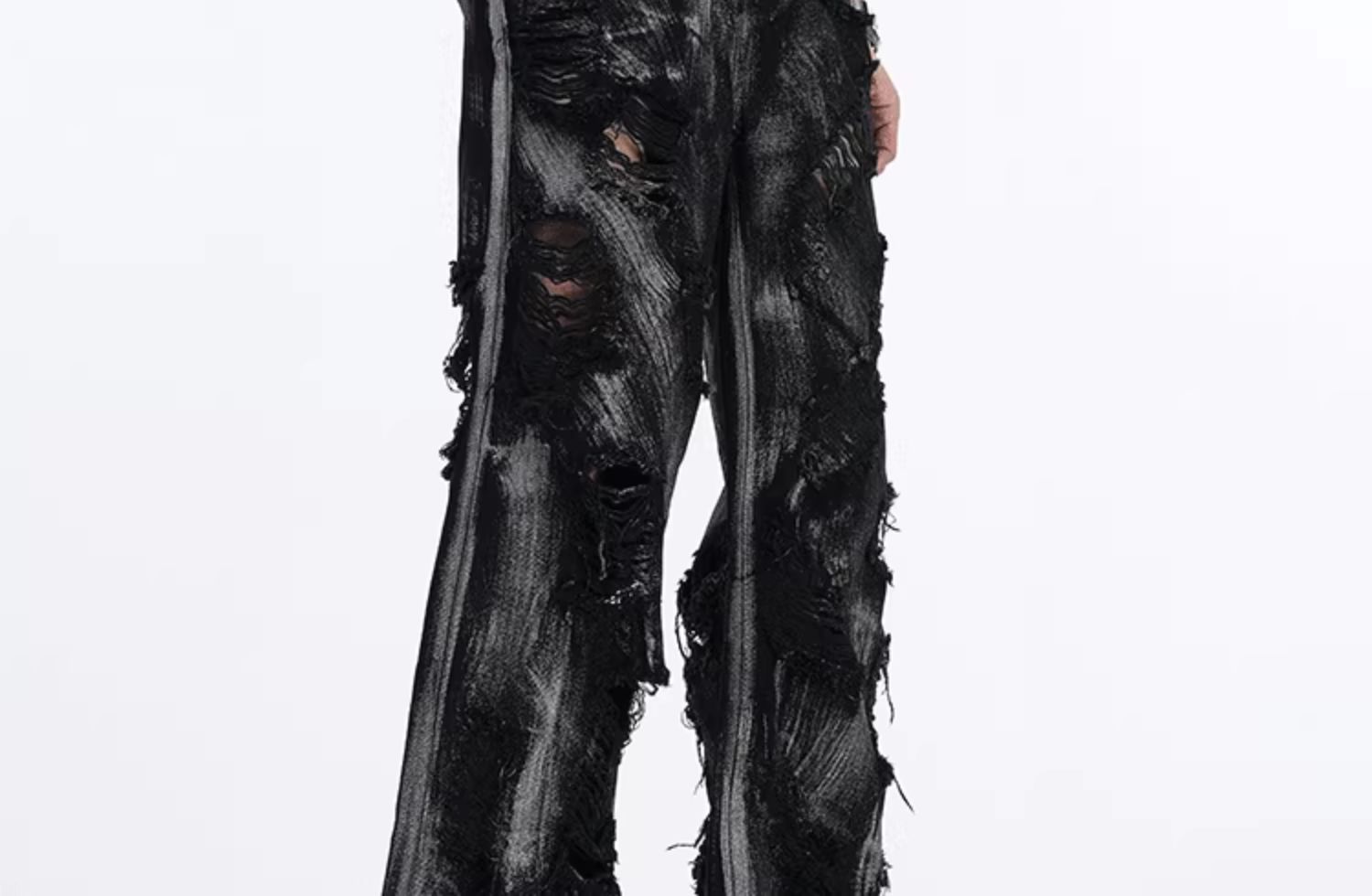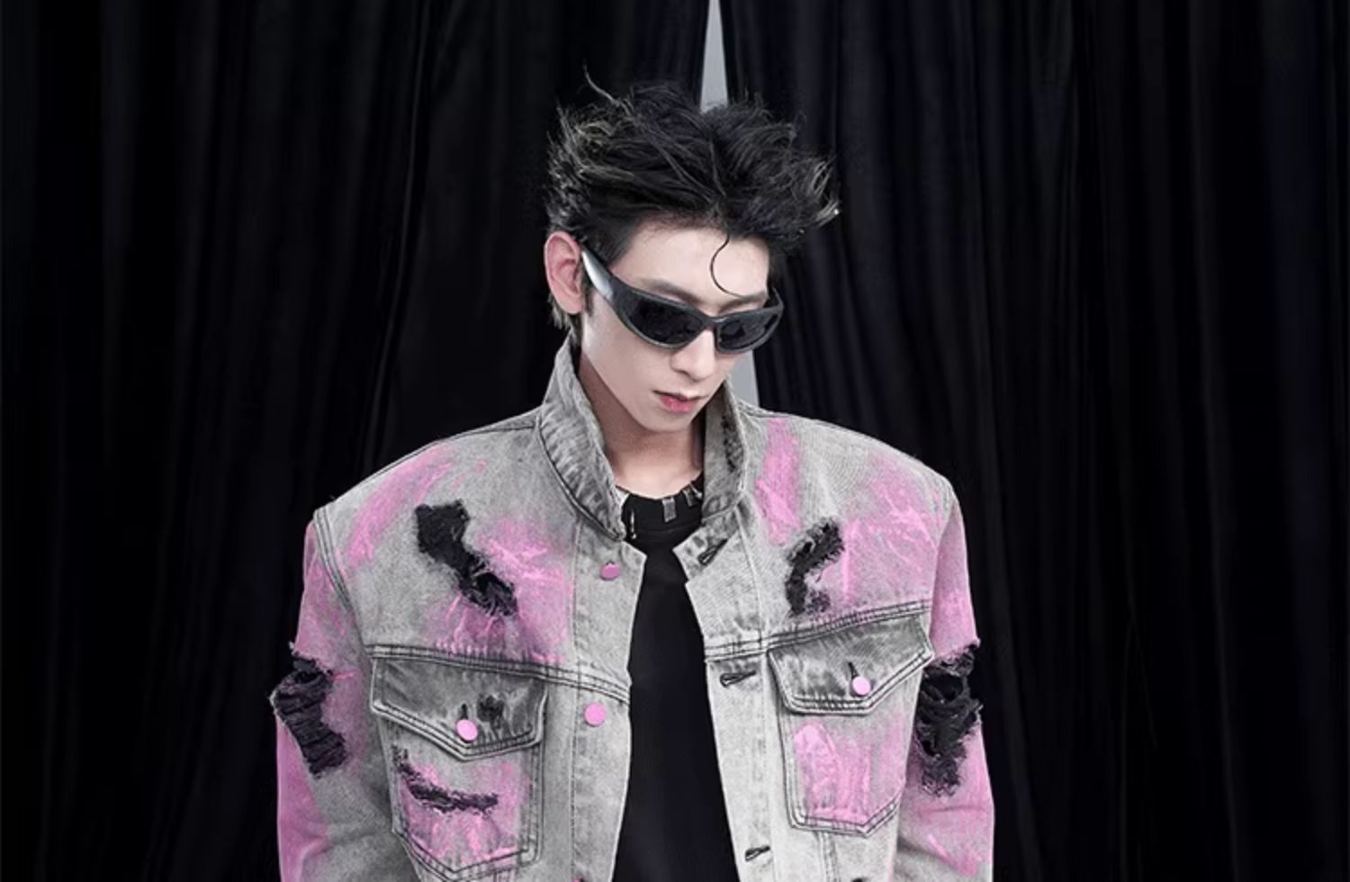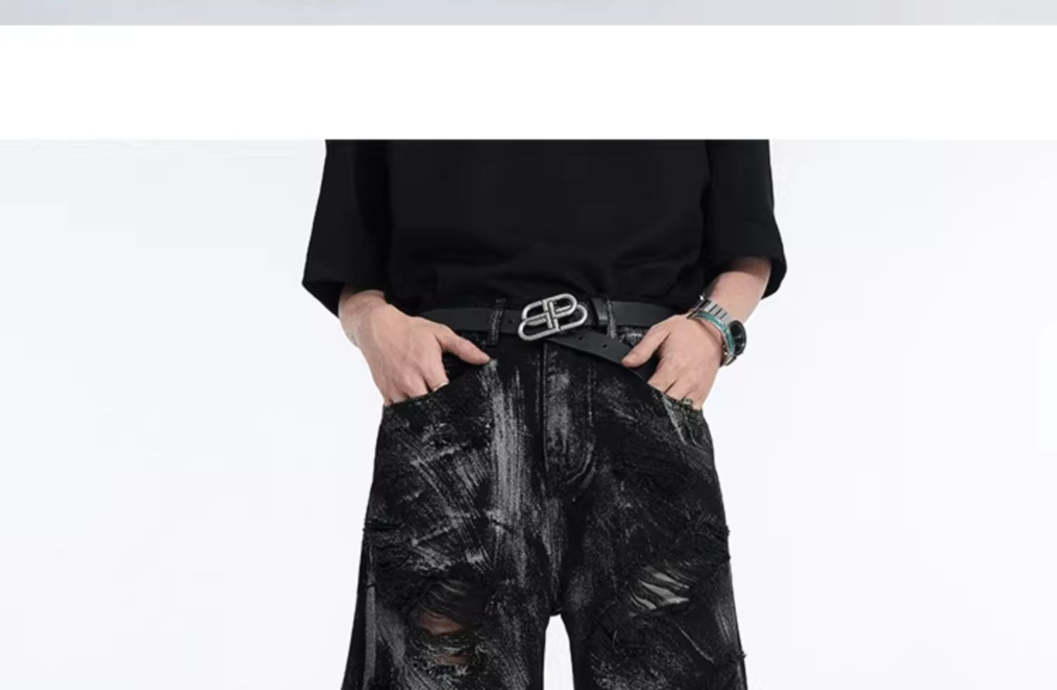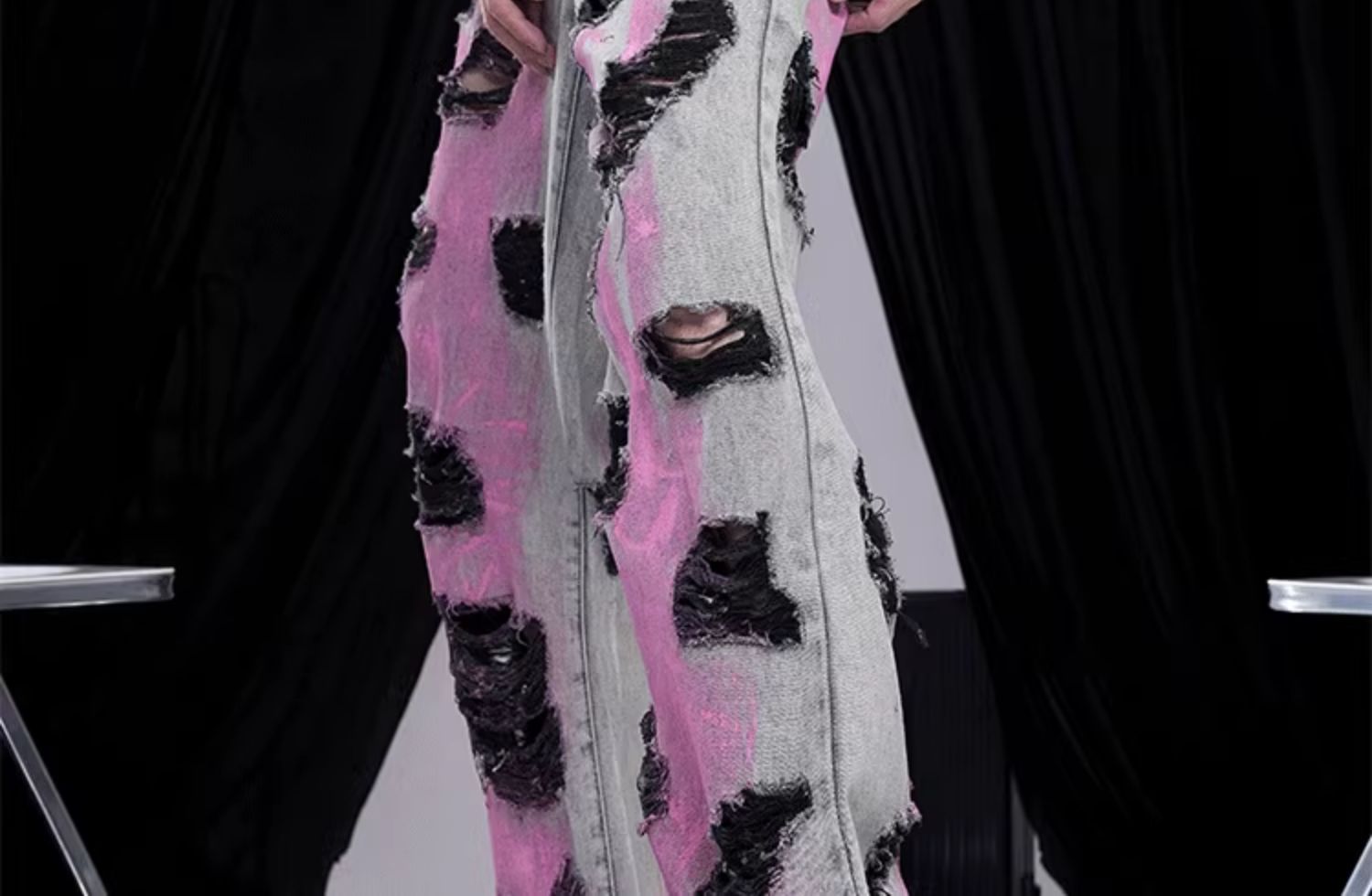 Washed Damage Denim Jacket & Washed Graffiti Wide-Leg Denim Jeans Setup WN6941