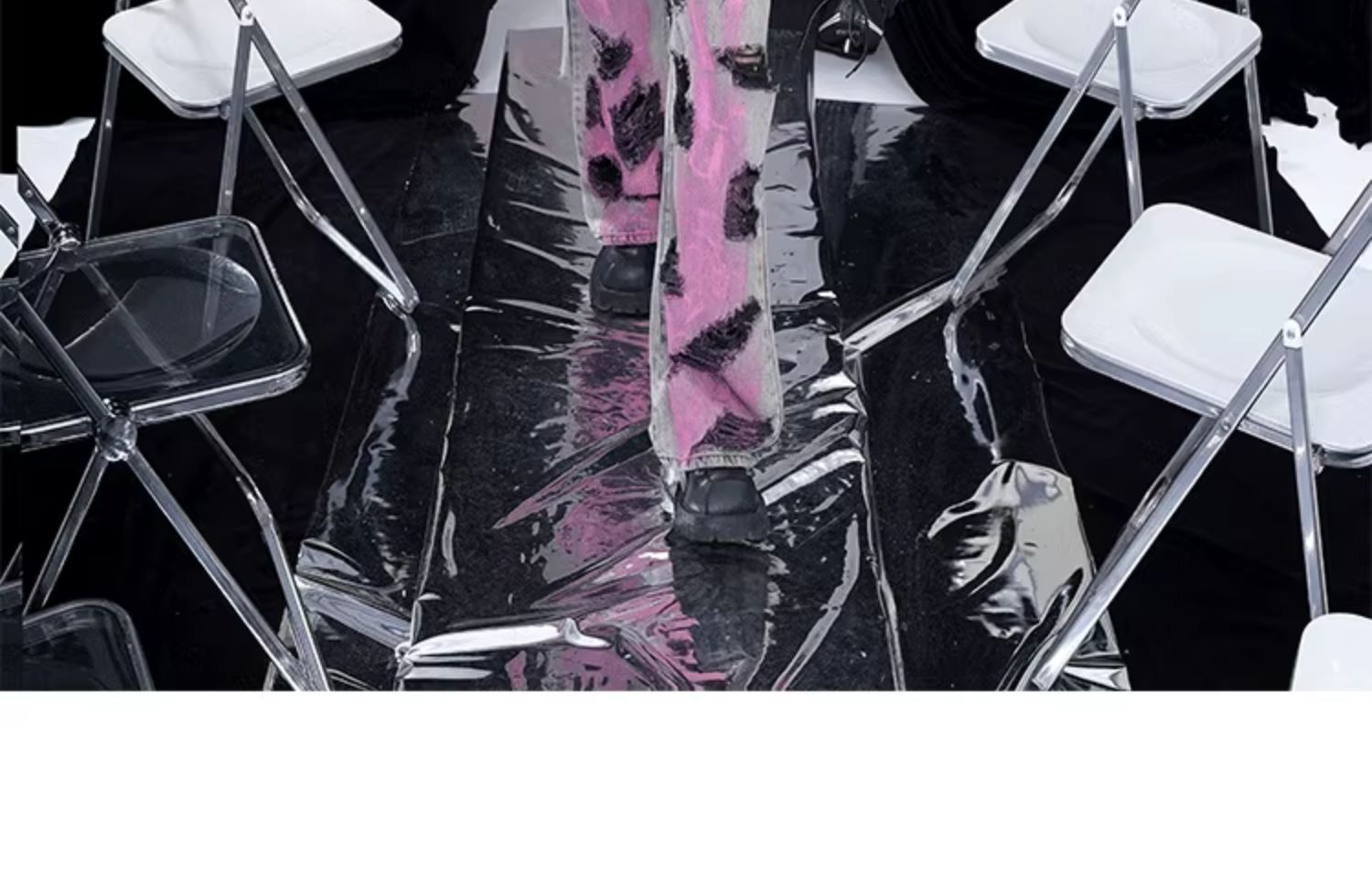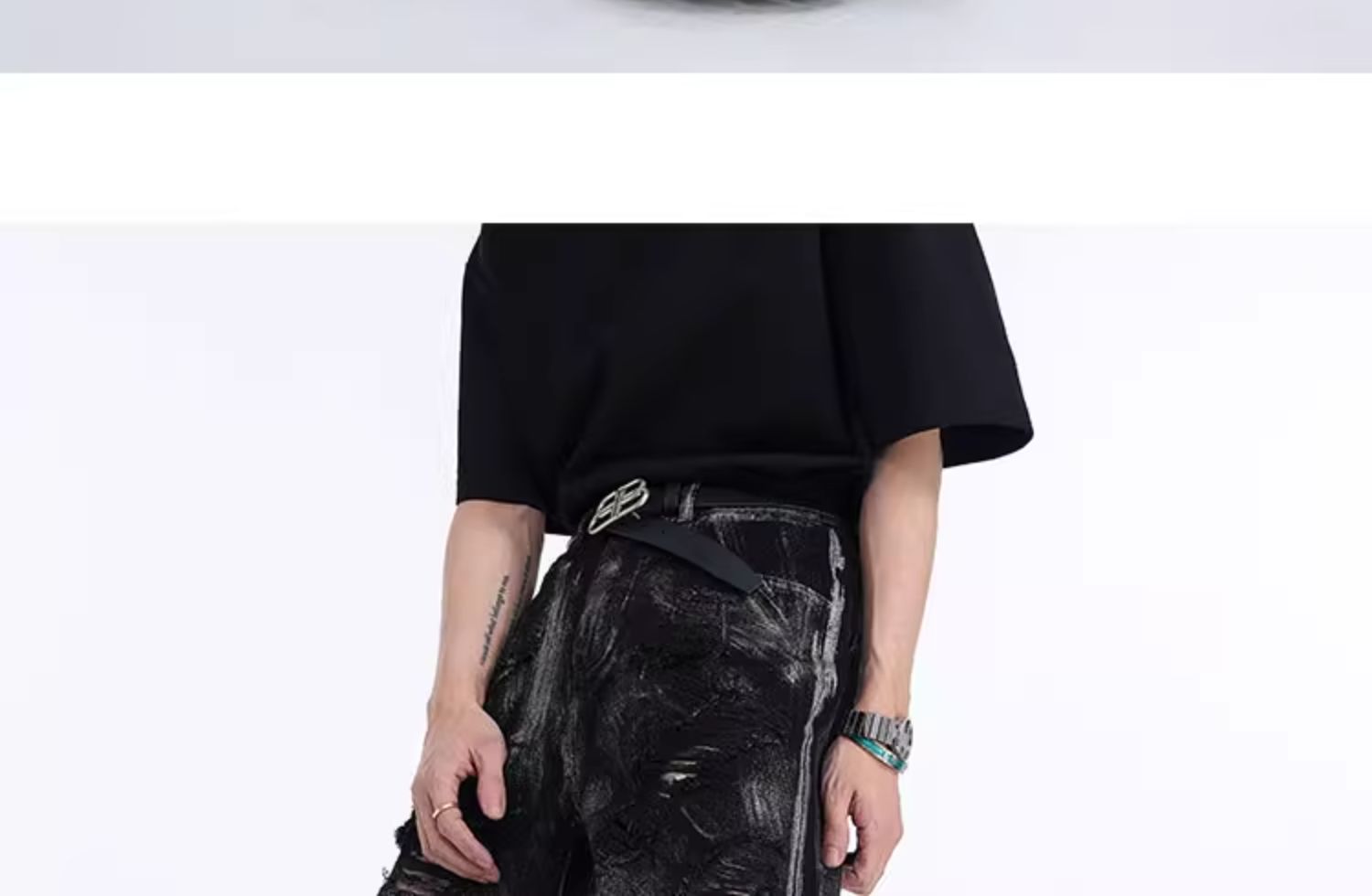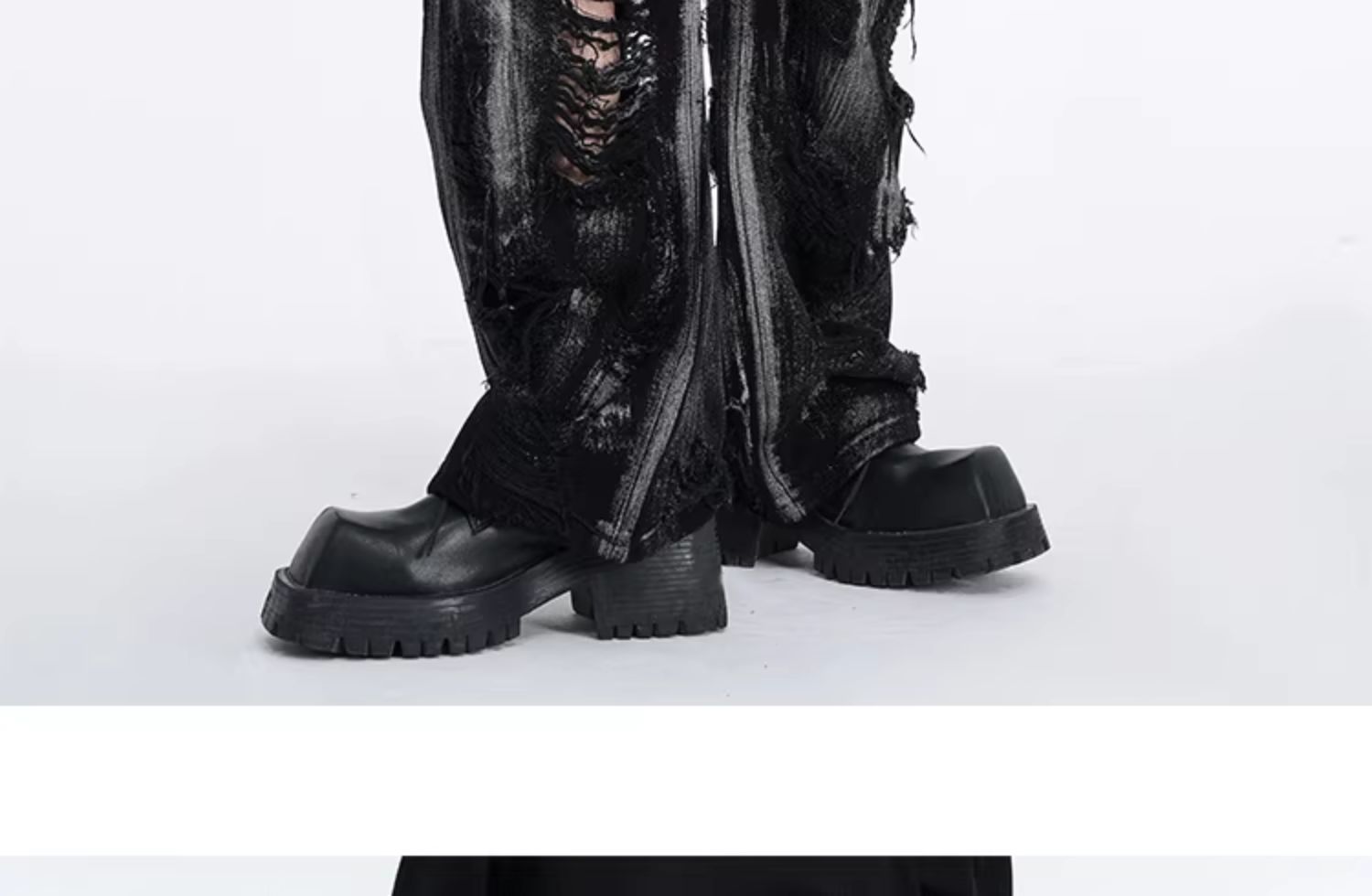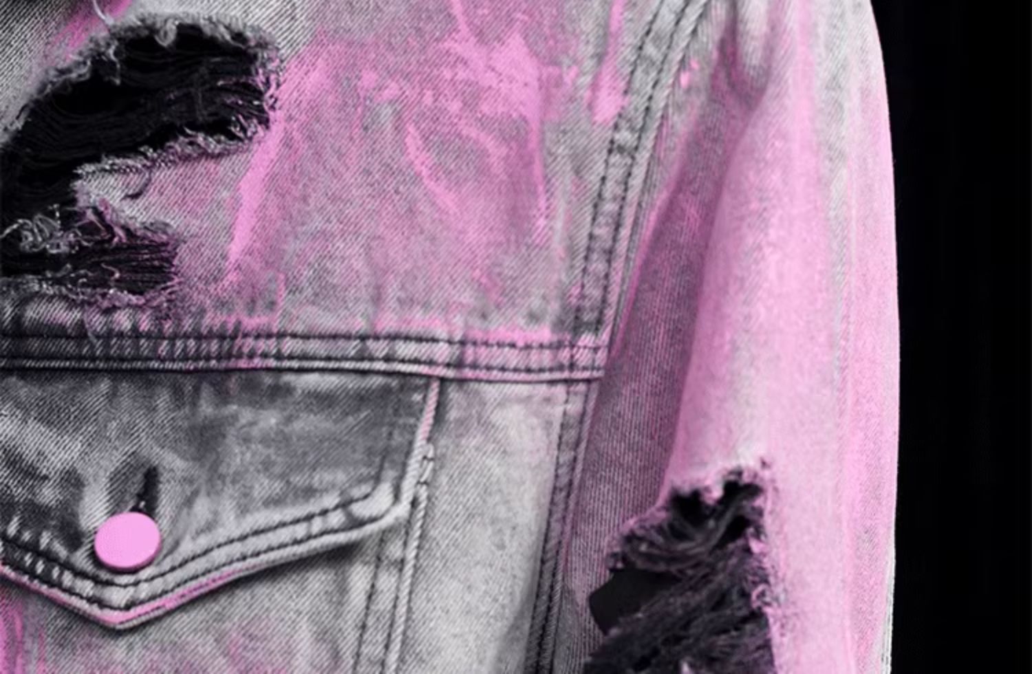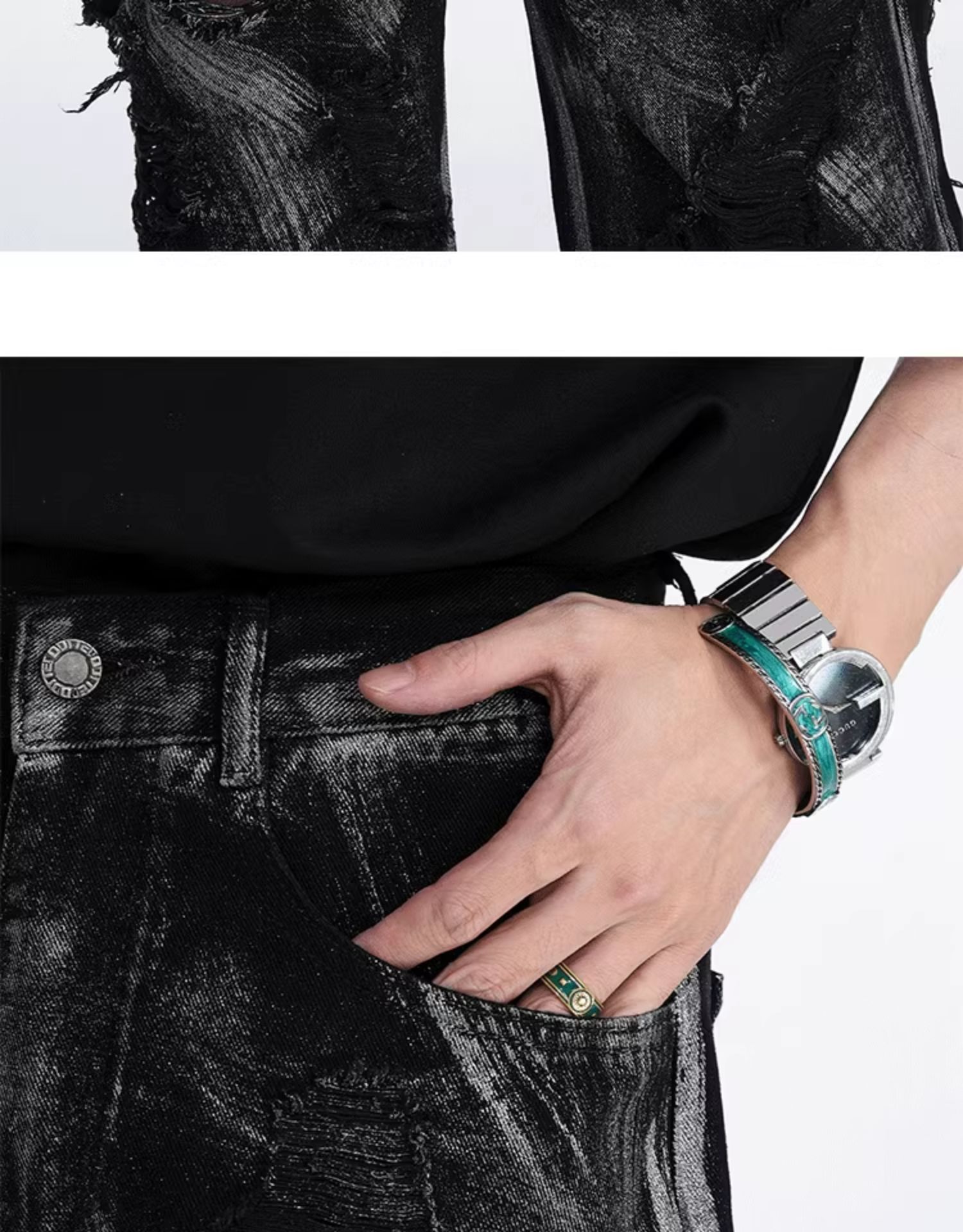 Washed Damage Denim Jacket & Washed Graffiti Wide-Leg Denim Jeans Setup WN6941
