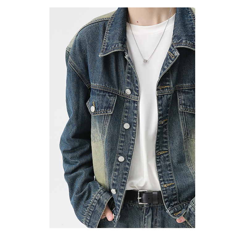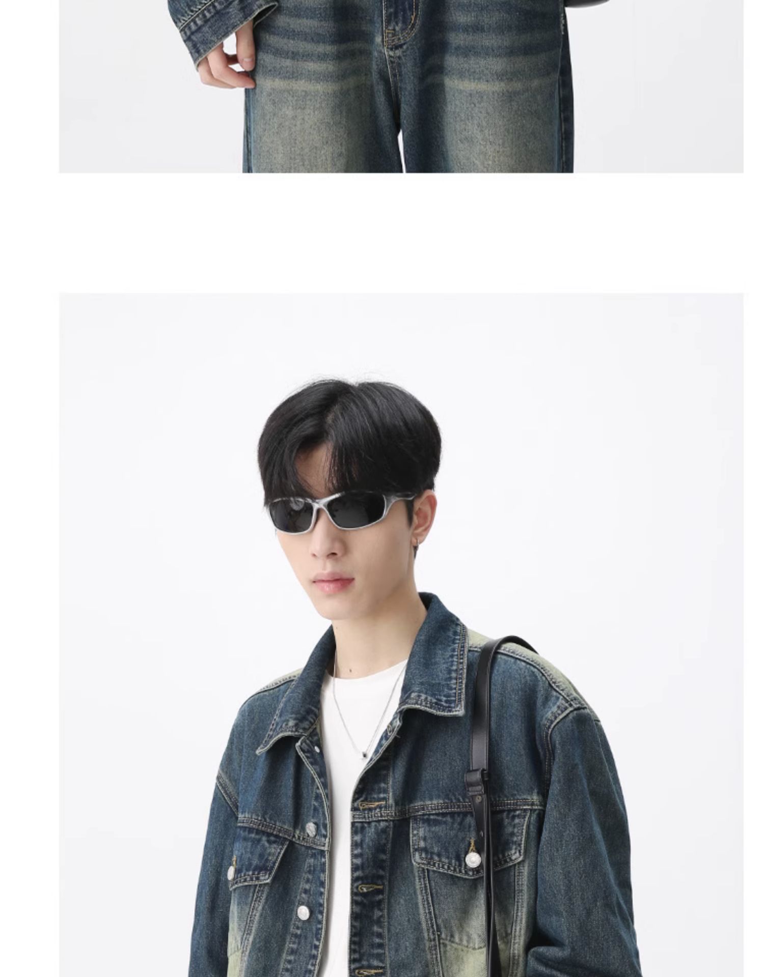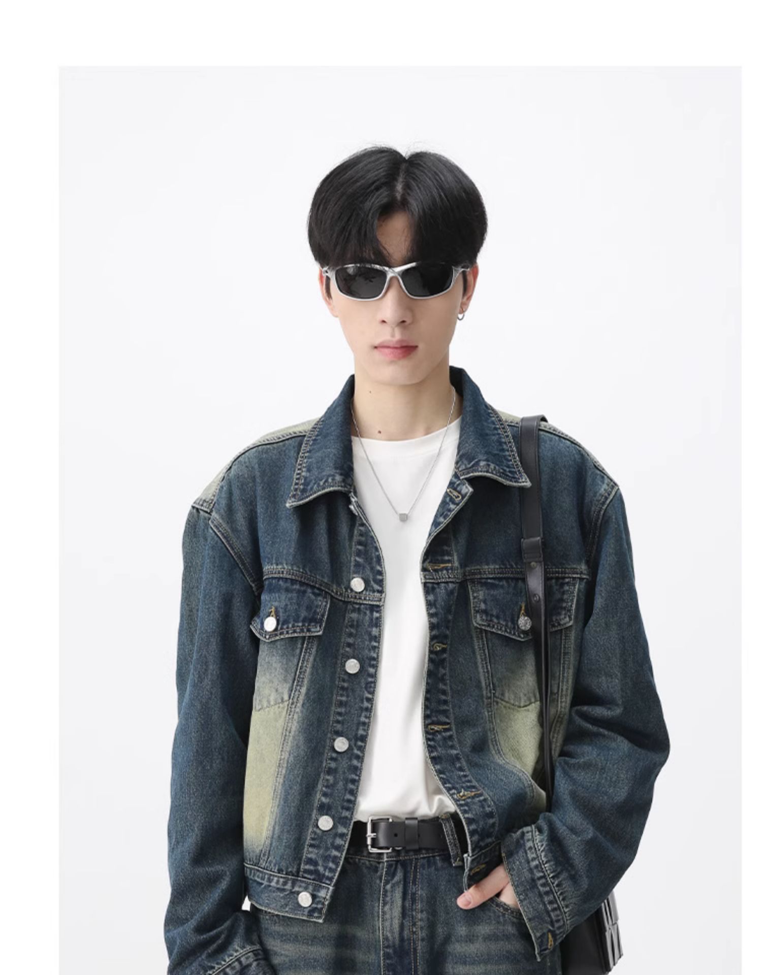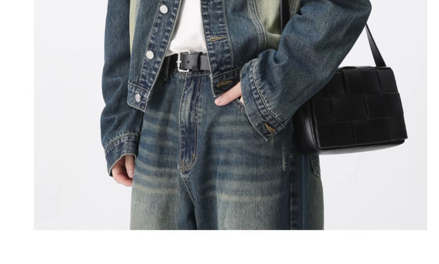 Wash Denim Jacket & Wide-Leg Straight Denim Jeans Setup WN7463