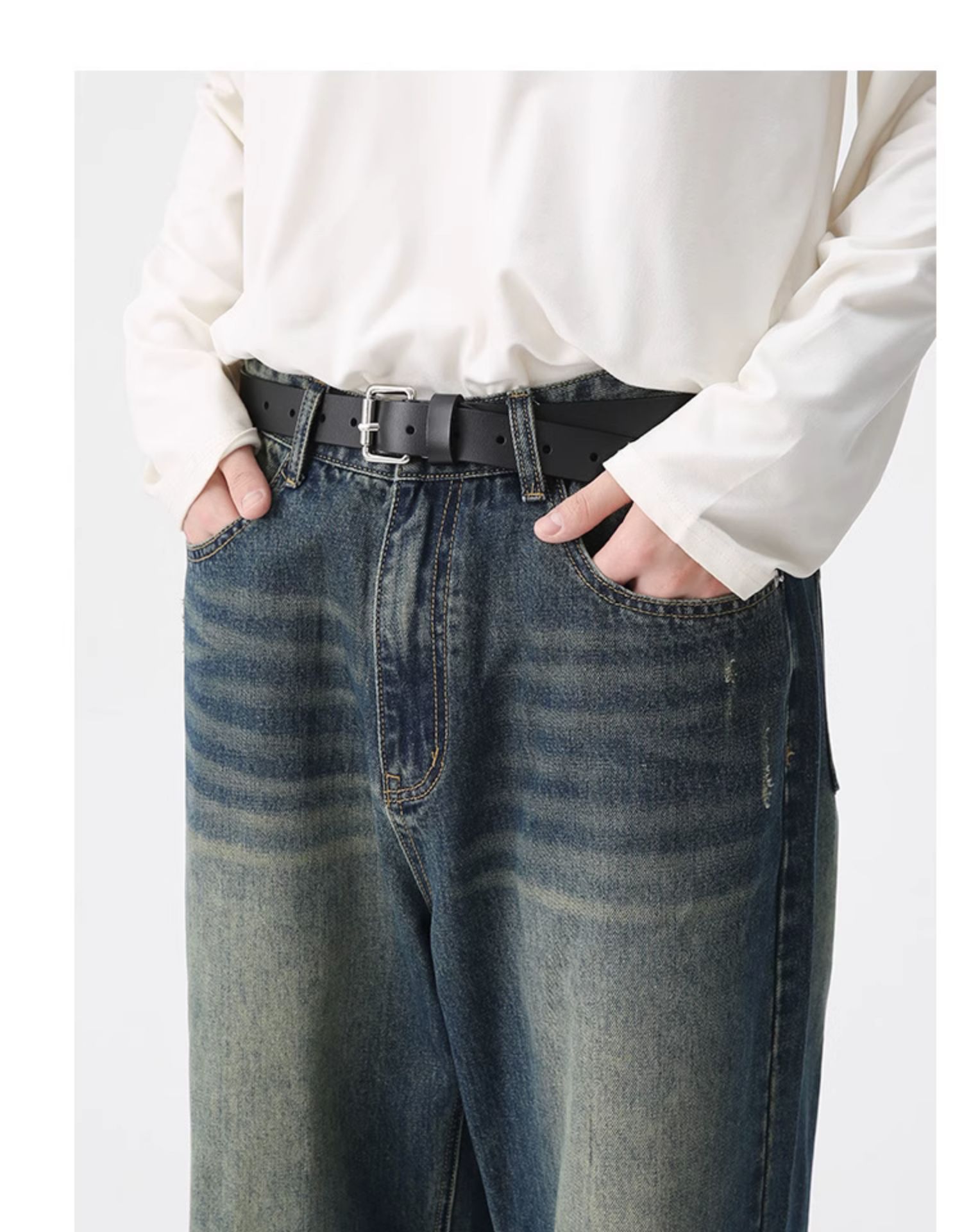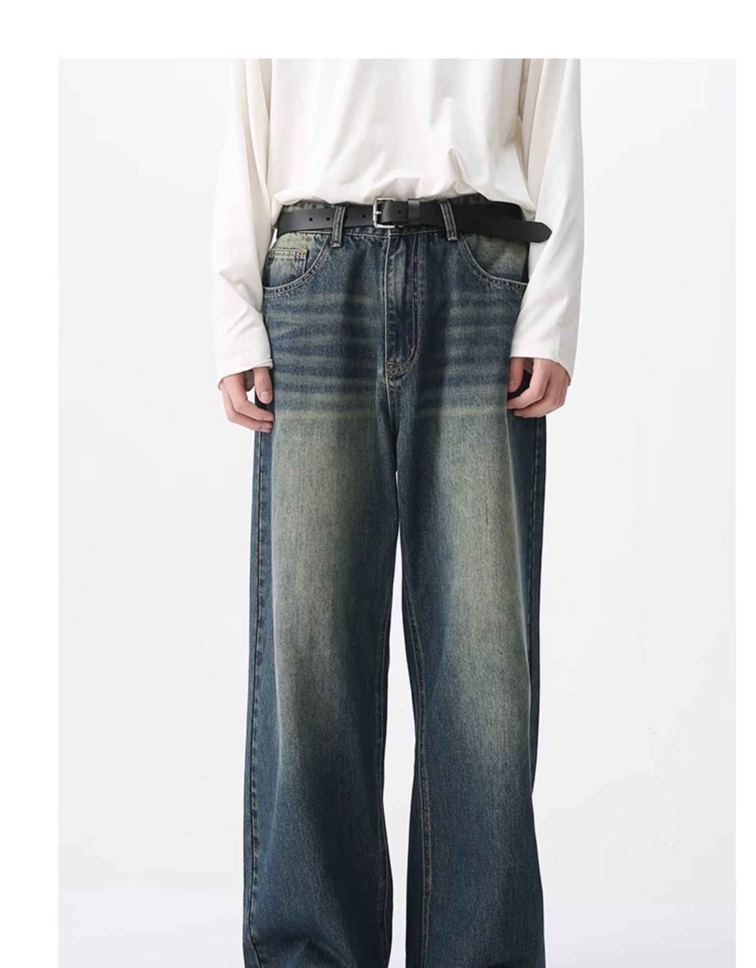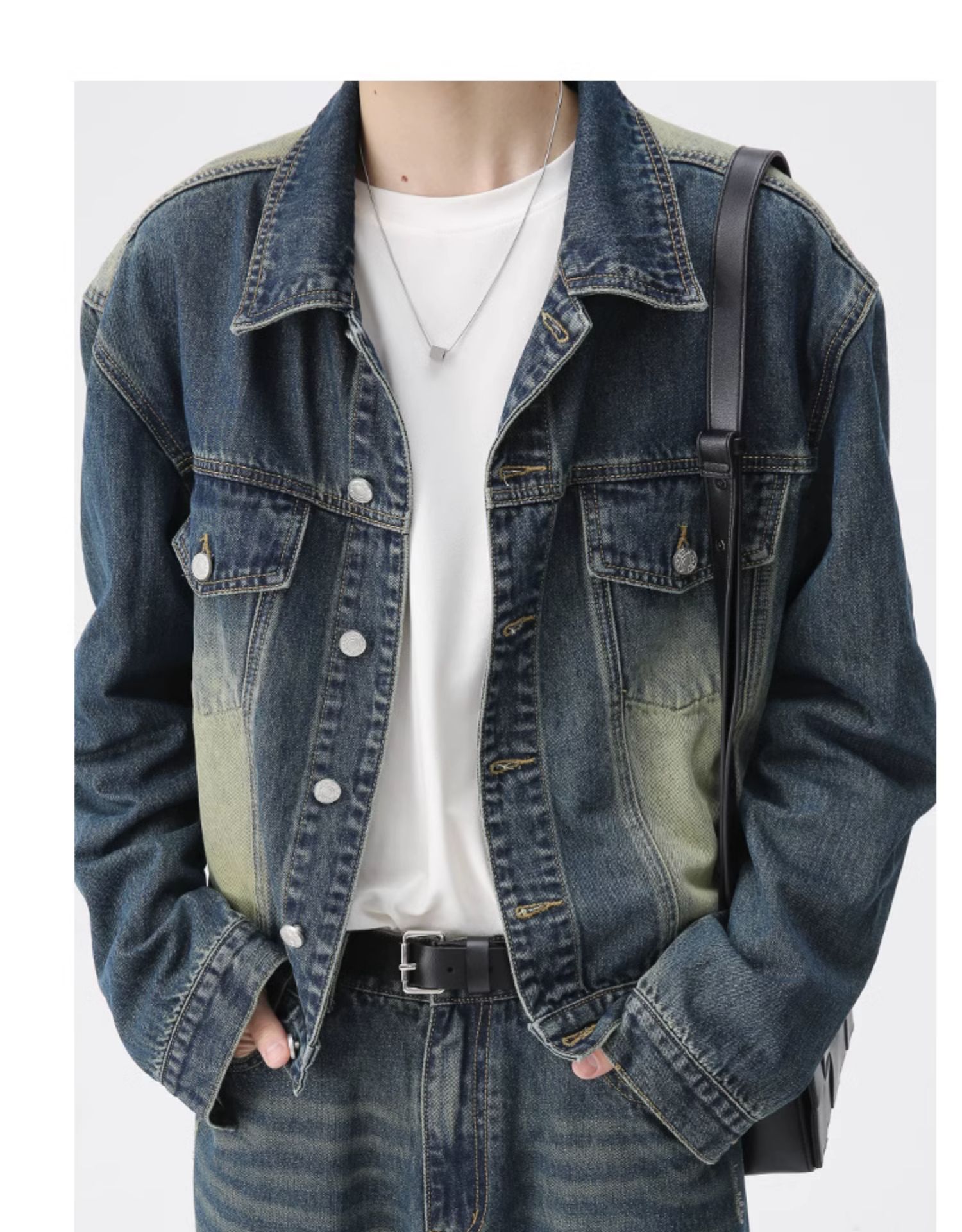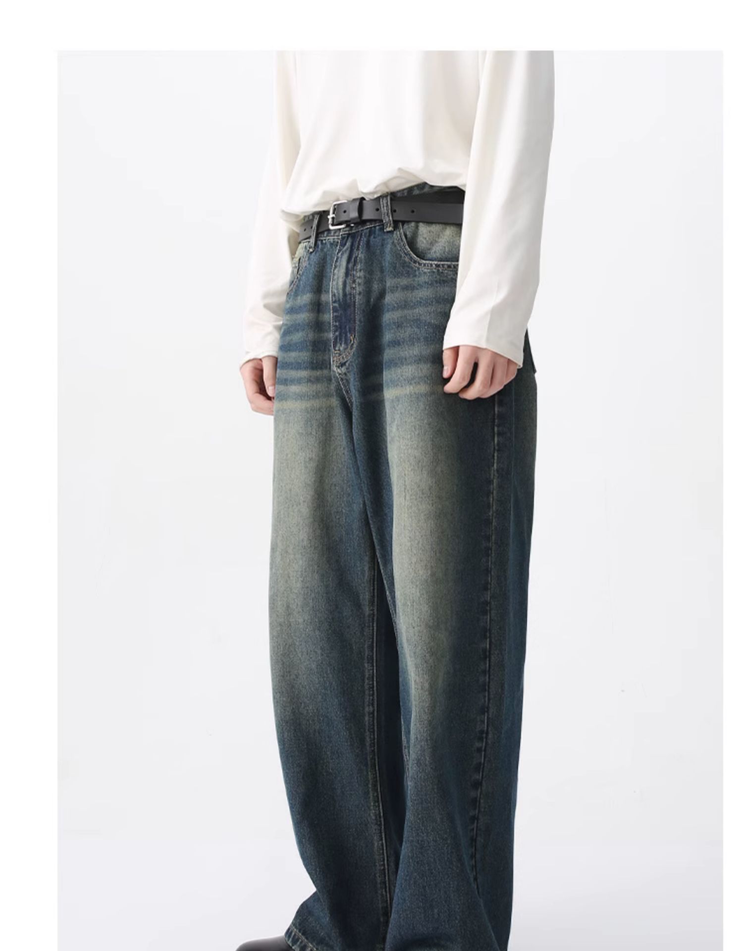 Wash Denim Jacket & Wide-Leg Straight Denim Jeans Setup WN7463