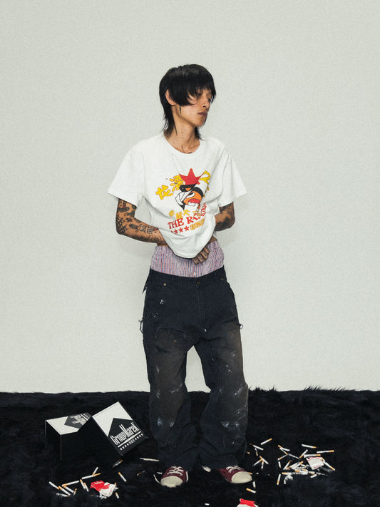 Graphic Design Washed Damage Short Sleeve T-Shirt WN17217