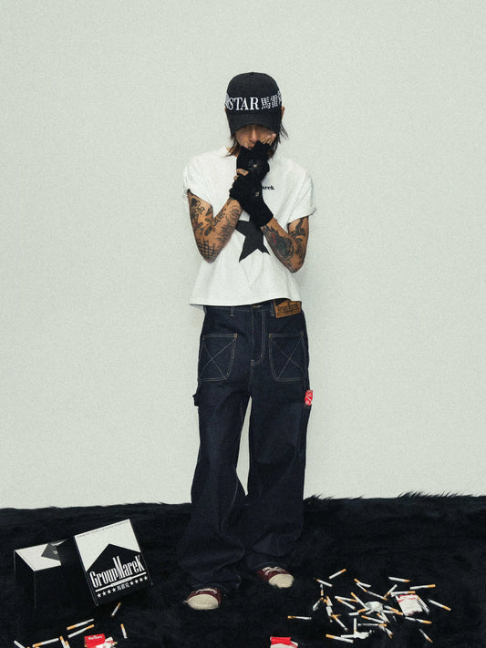 Graphic Patch Wide Leg Denim Jeans WN17219