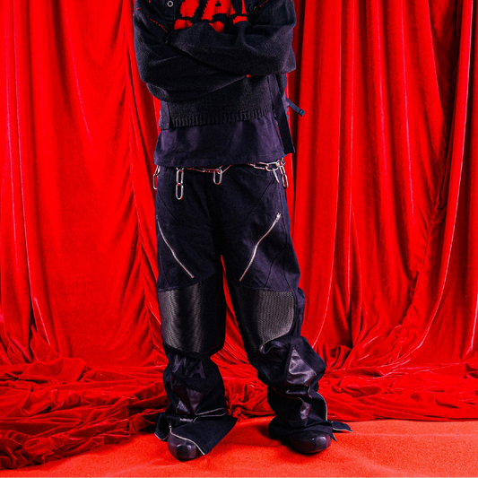 PU Leather Mix Zipper Design Wide Leg Pants WN17205