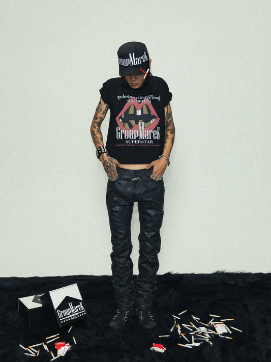 Vinyl Coated Waxed Straight Denim Jeans WN17221