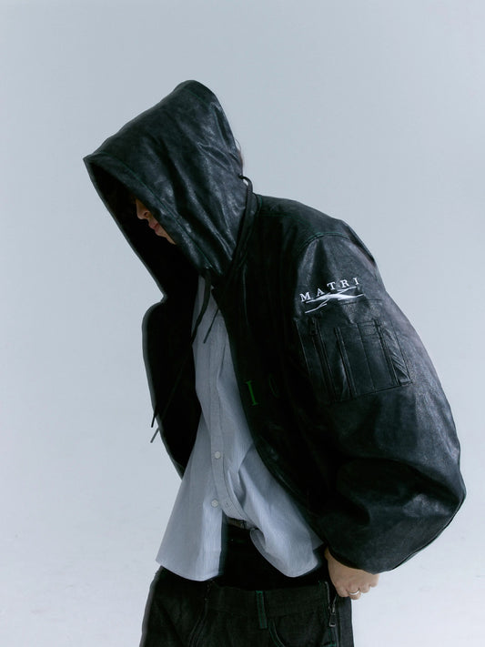 Cracked PU Leather Oversize Hooded Puffer Jacket WN17212