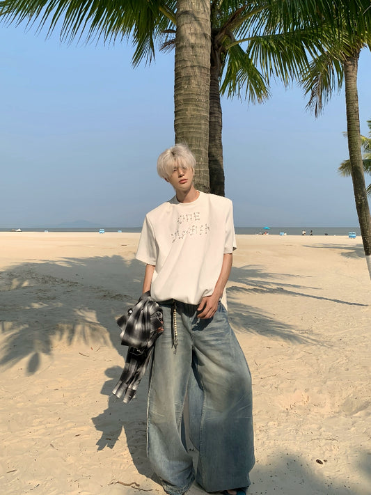 3D Paste Print Washed Short Sleeve T-Shirt WN20048
