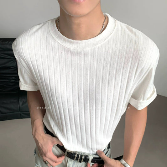 Vertical Stripe Knit Short Sleeve T-Shirt WN20085
