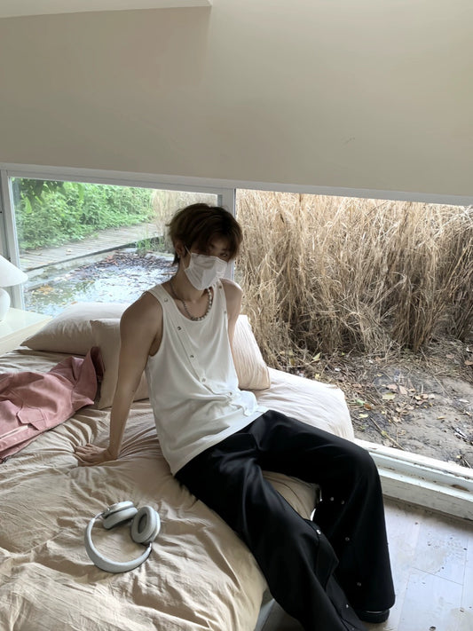 Asymmetrical Button Design Sleeveless T-Shirt WN19839