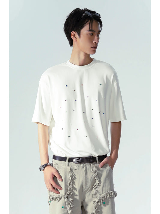 Starry Rhinestone Print Short Sleeve T-Shirt WN18880
