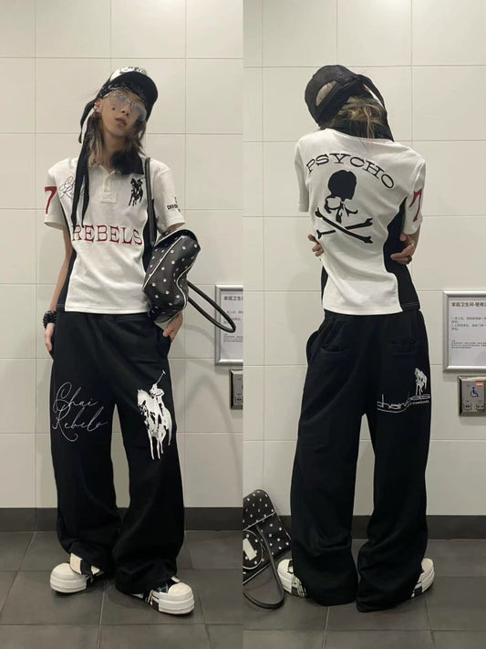 Embroidery Patchwork Polo Short Sleeve T-Shirt WN19101