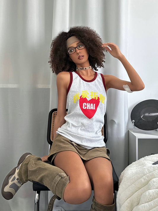Graphic Print Sleeveless T-Shirt WN19069