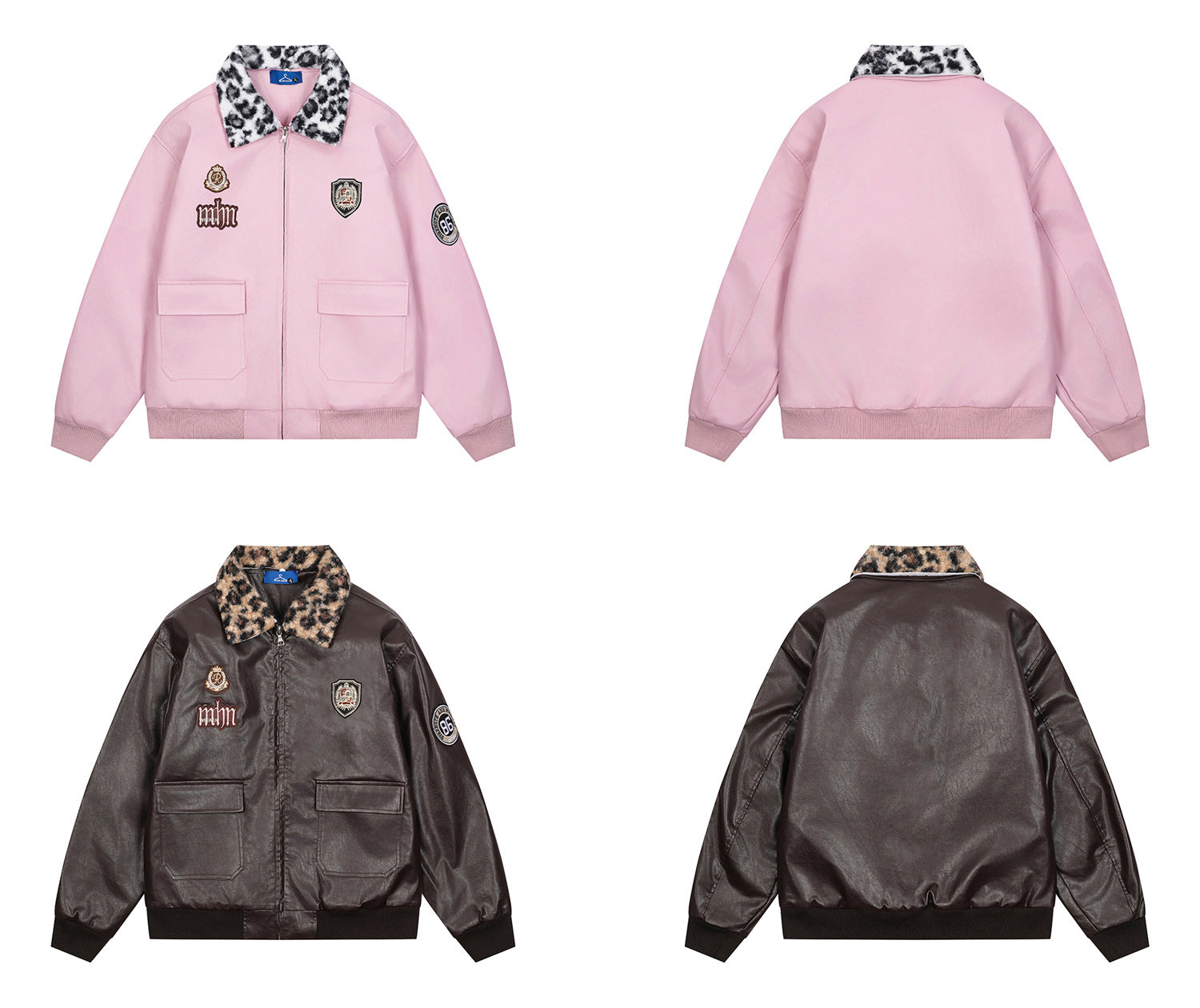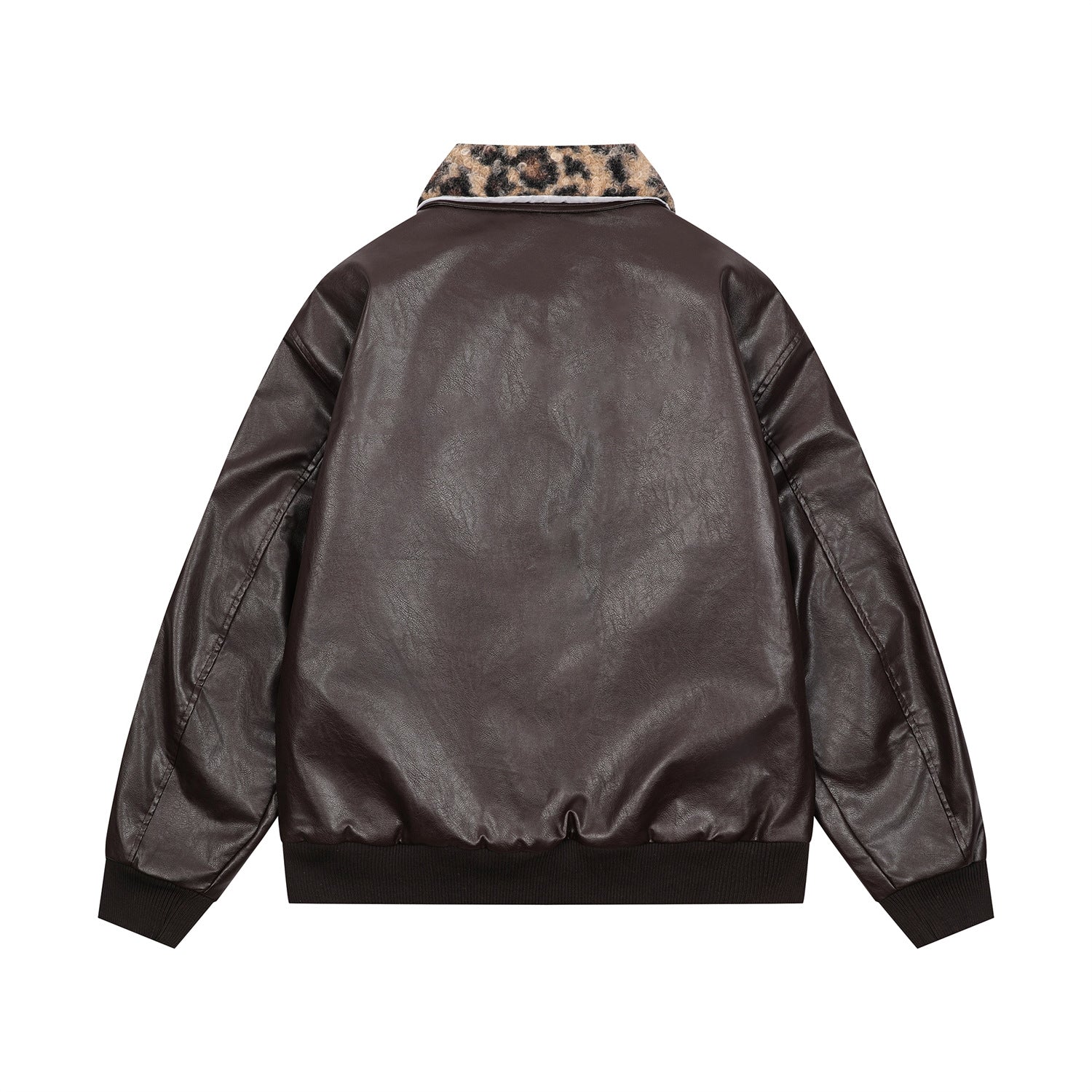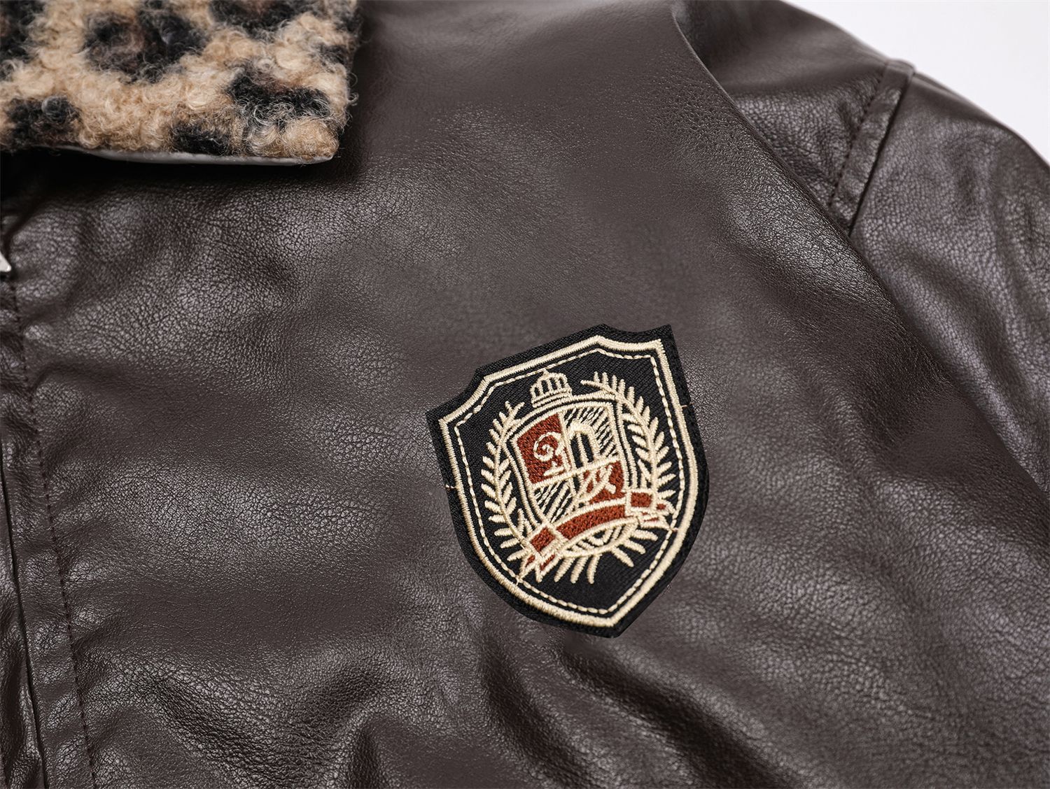 Badge Embroidery Detachable Leopard Collar PU Leather Jacket WN11189