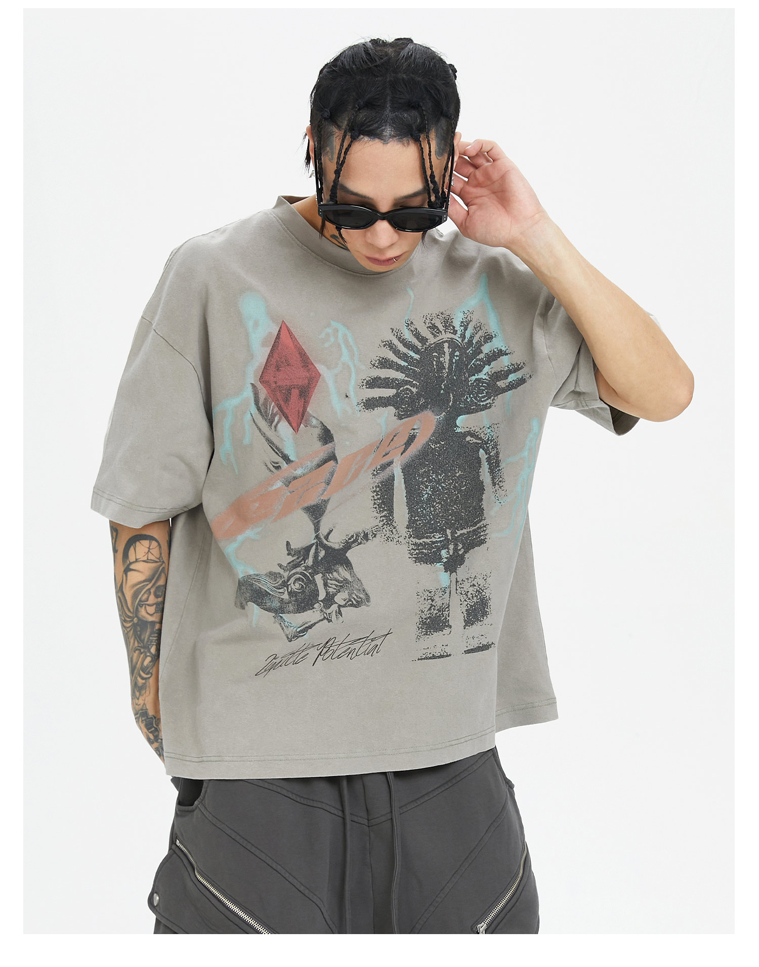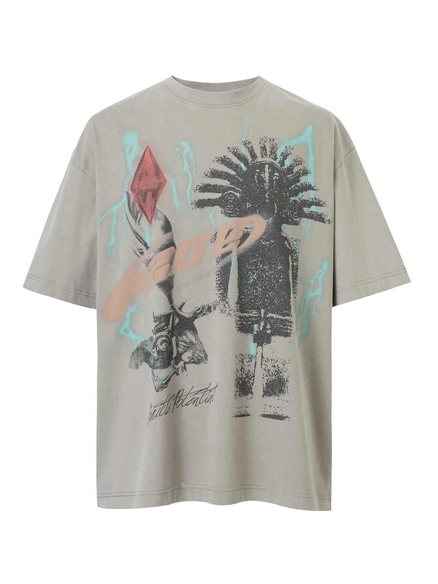 Print Wash Oversize Short Sleeve T-Shirt WN12262