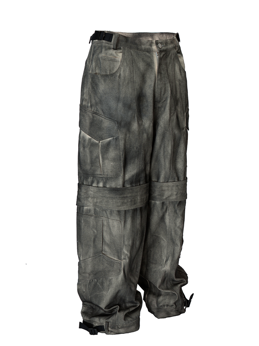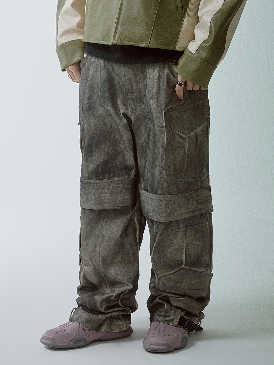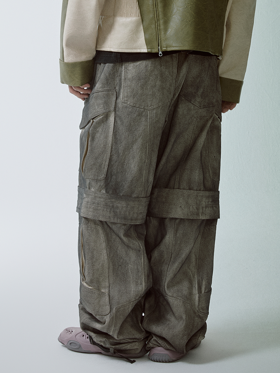 Washed Multi-Pocket Wide-Leg Straight Cargo Pants WN12266