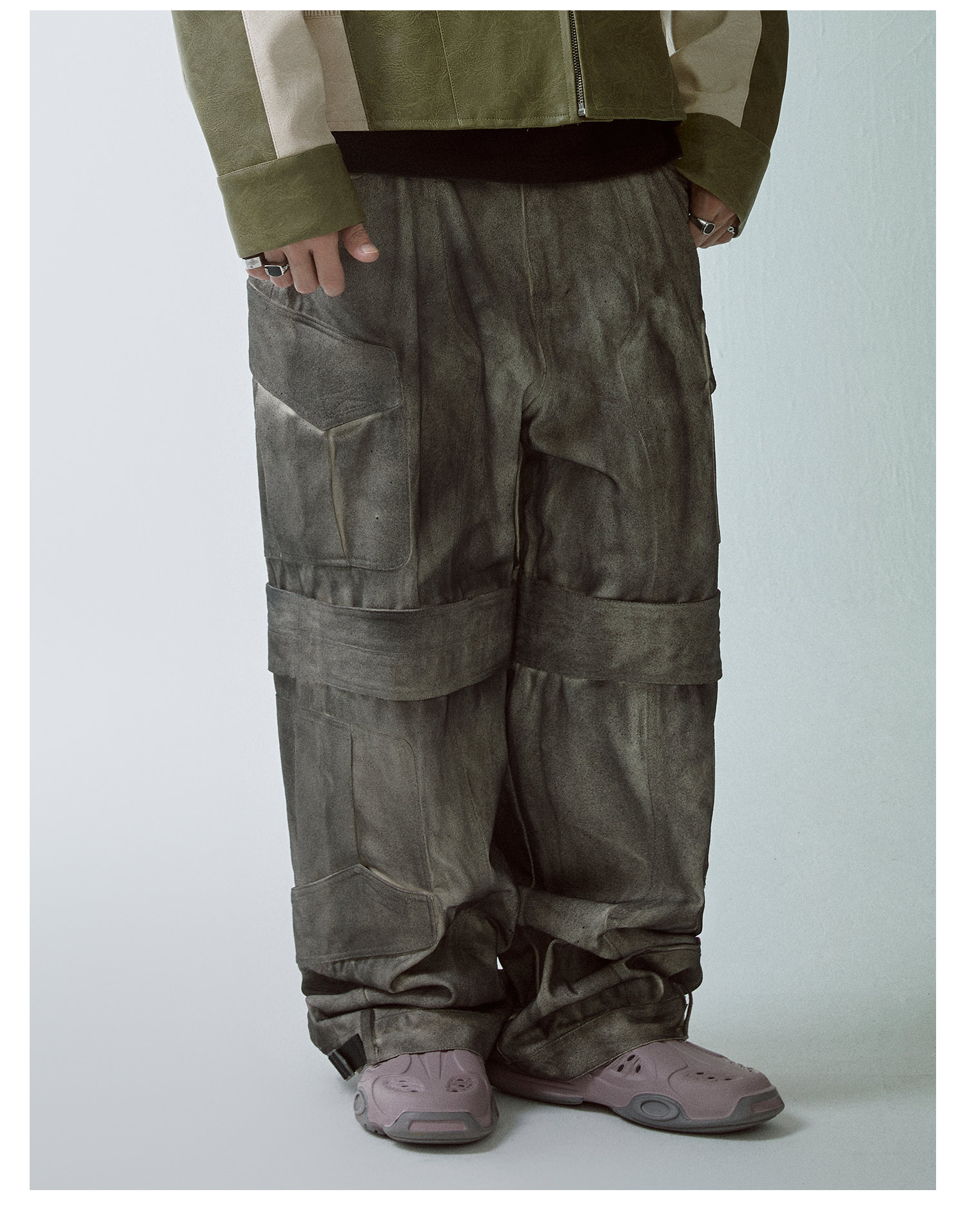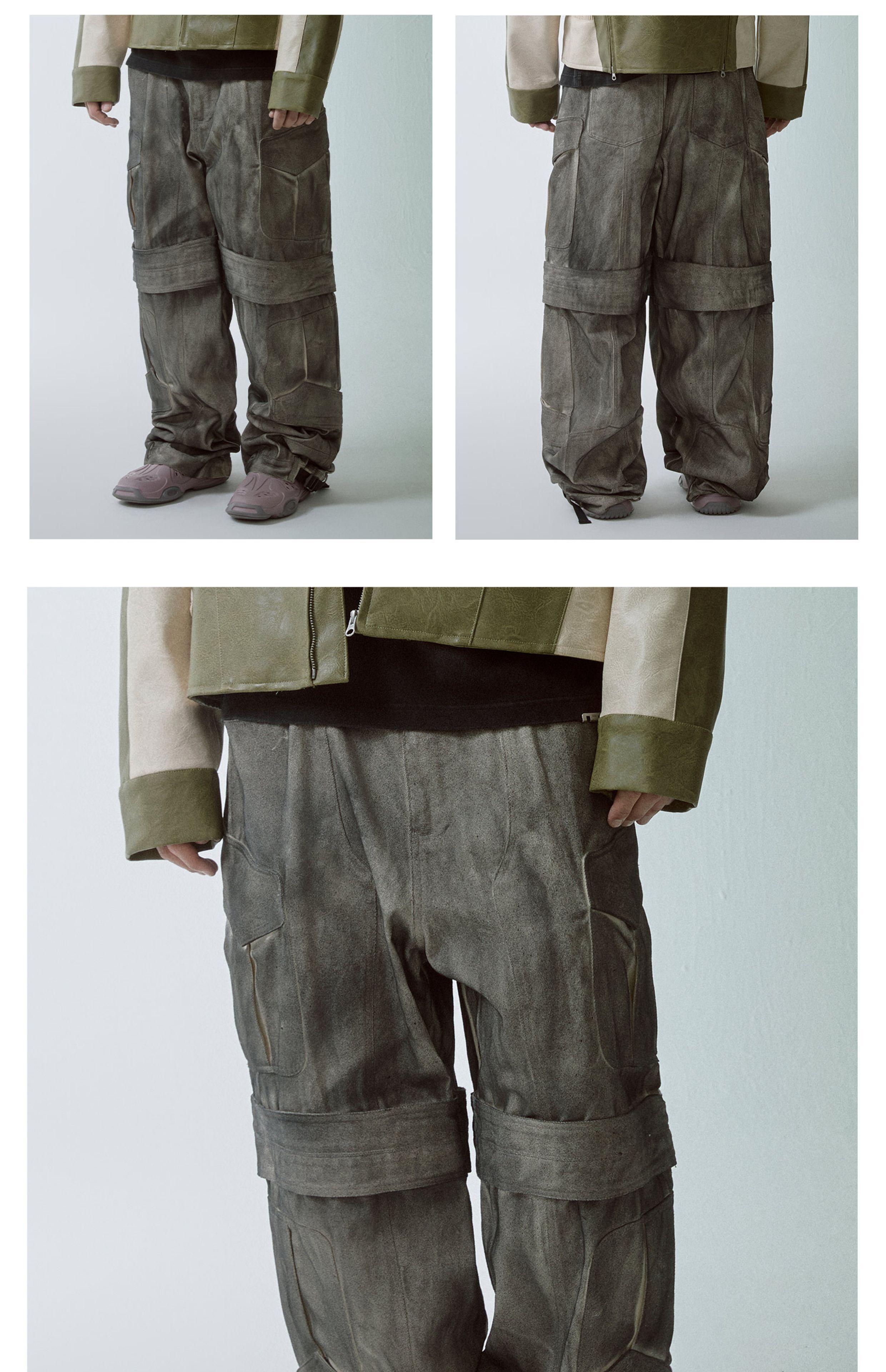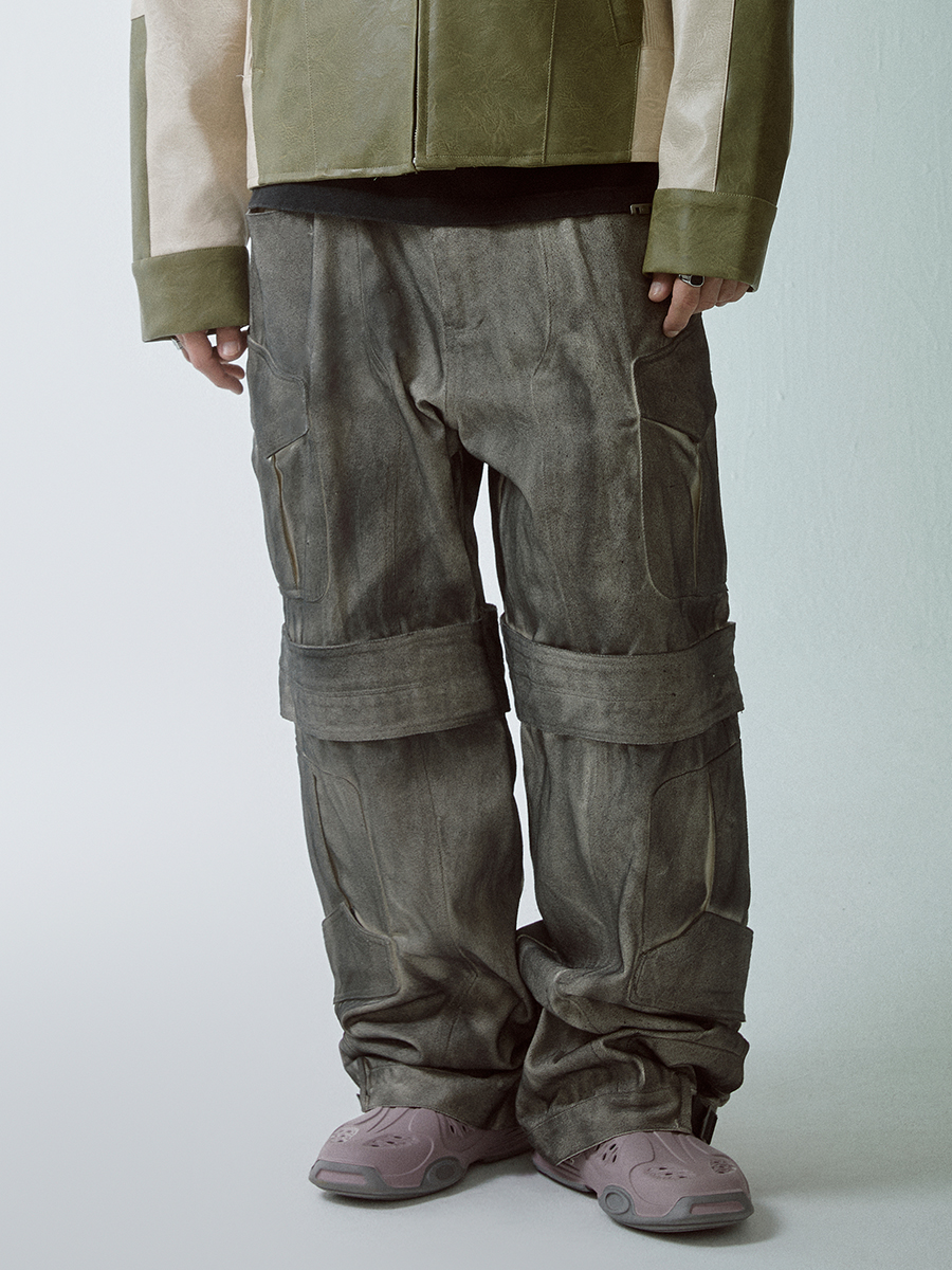 Washed Multi-Pocket Wide-Leg Straight Cargo Pants WN12266