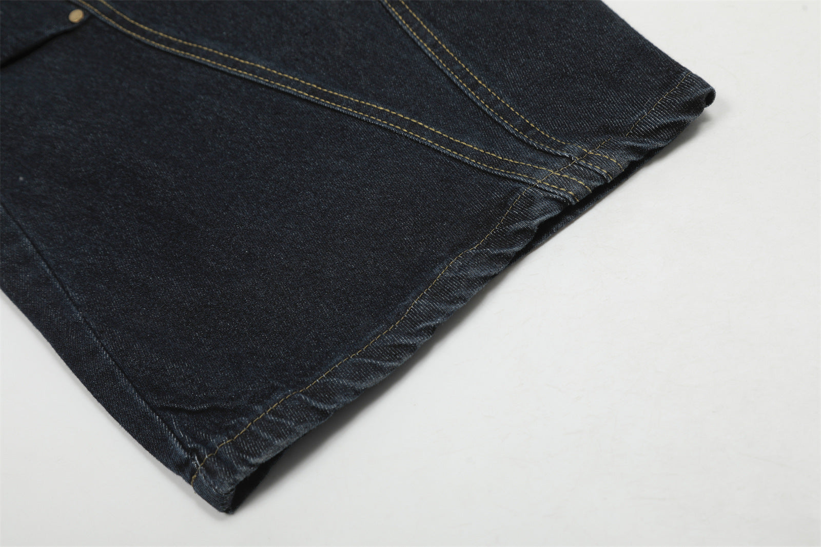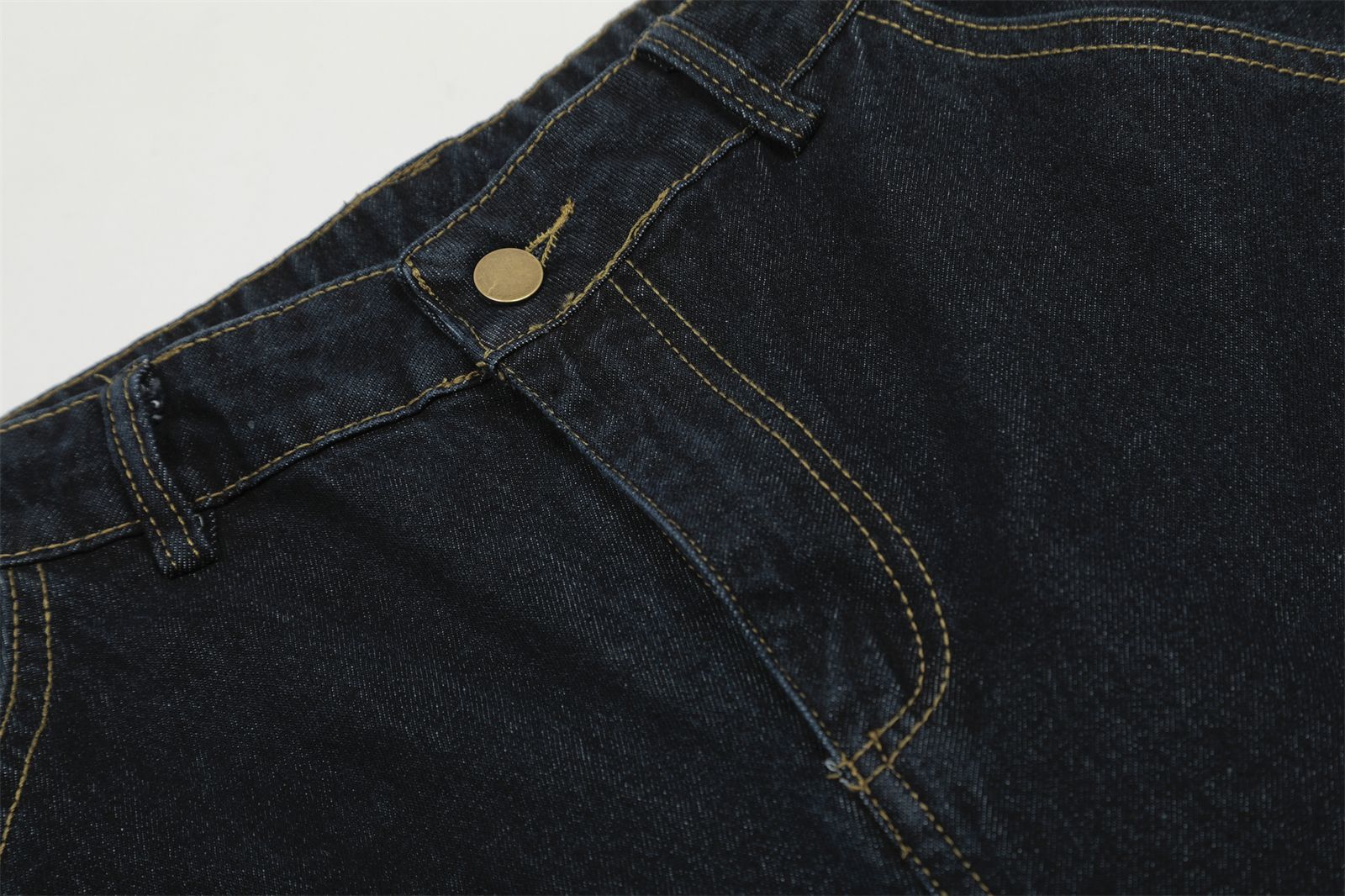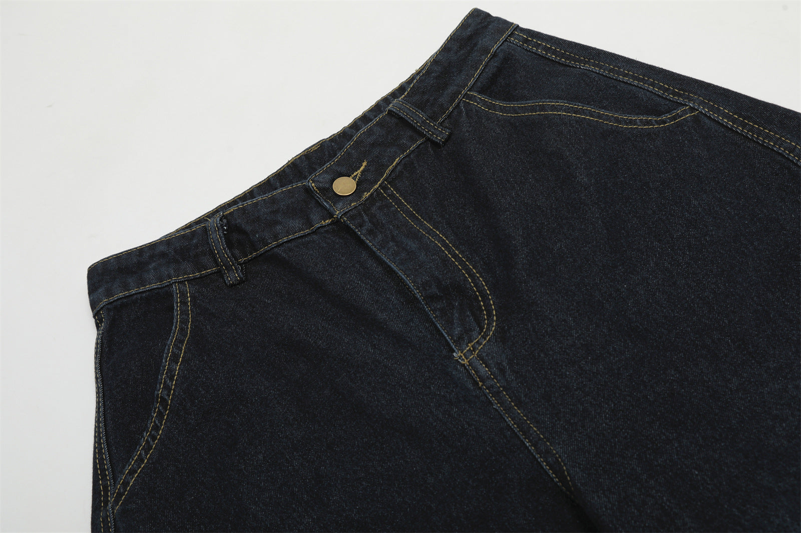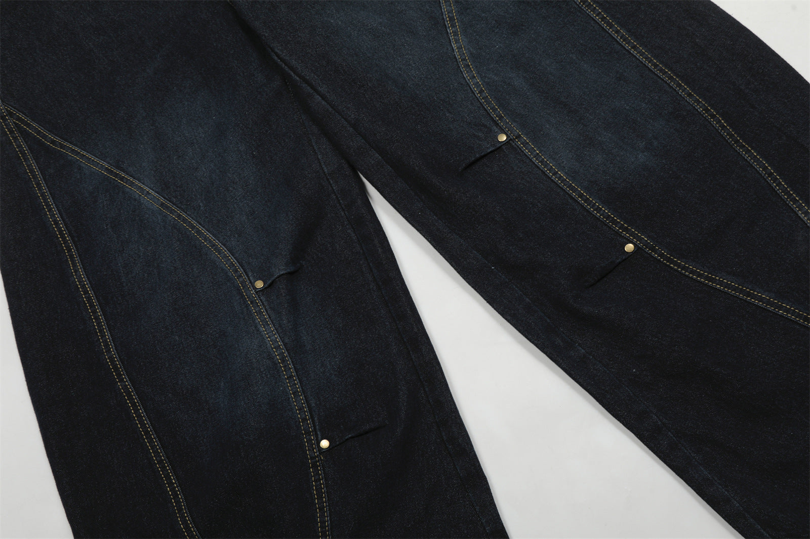 Beaded Washed Curved-Cut Wide-Leg Denim Jeans WN15048