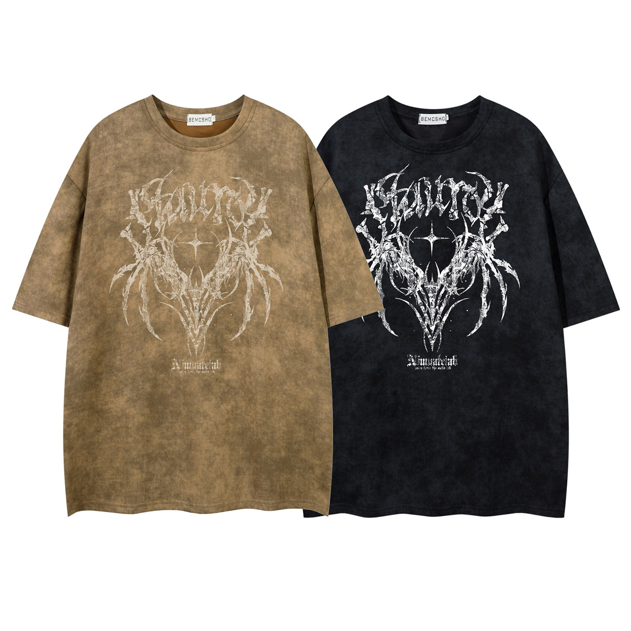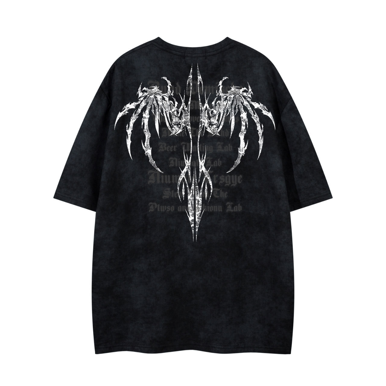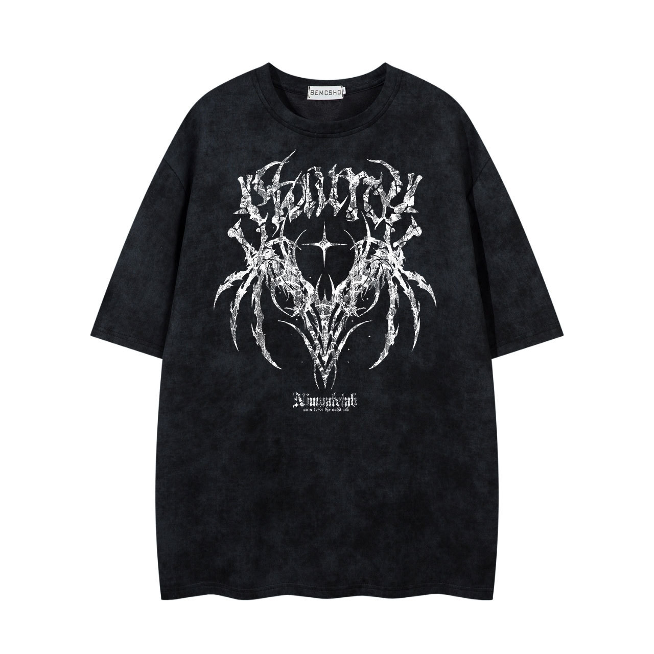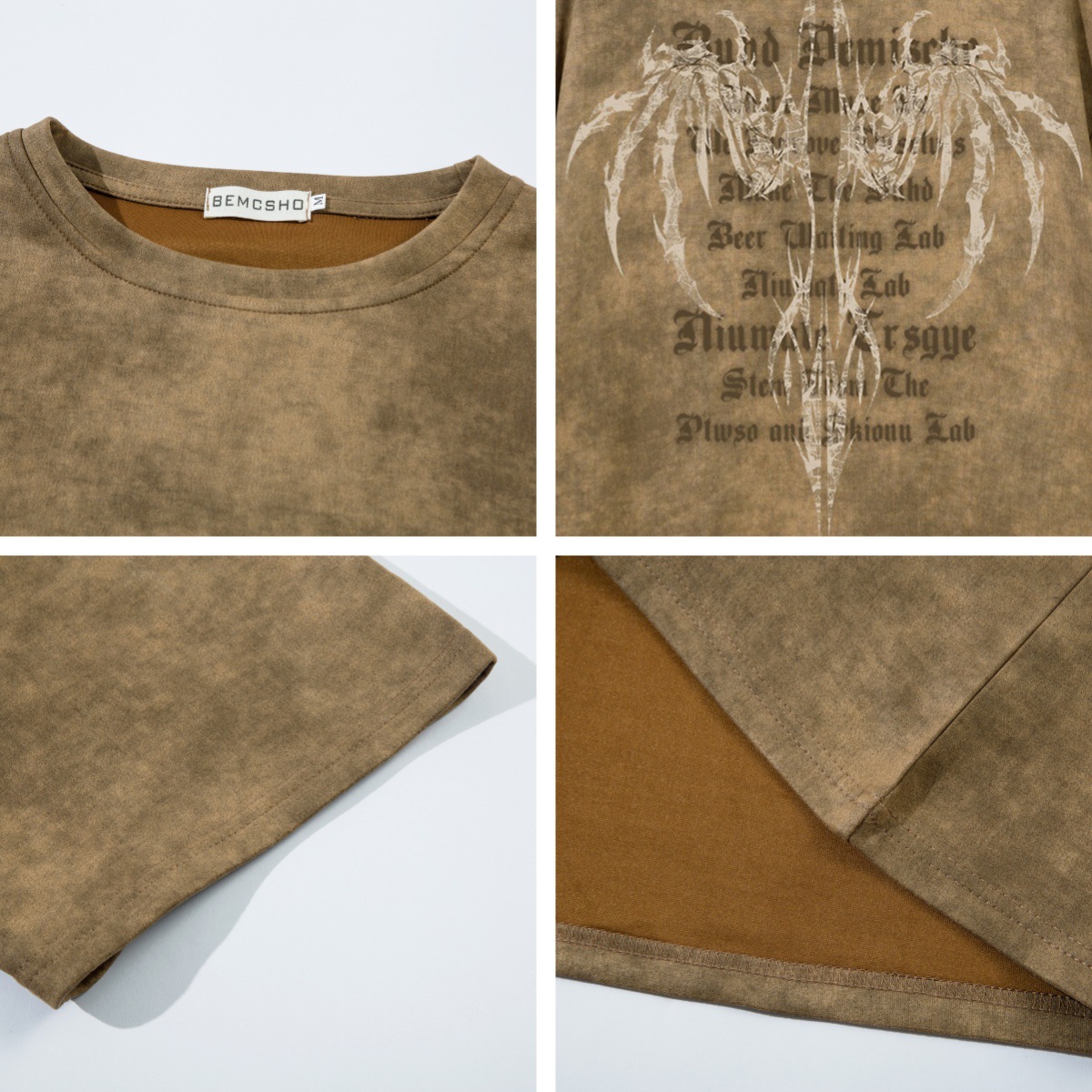 Suede Graffiti Print Oversize Short Sleeve T-Shirt WN15111