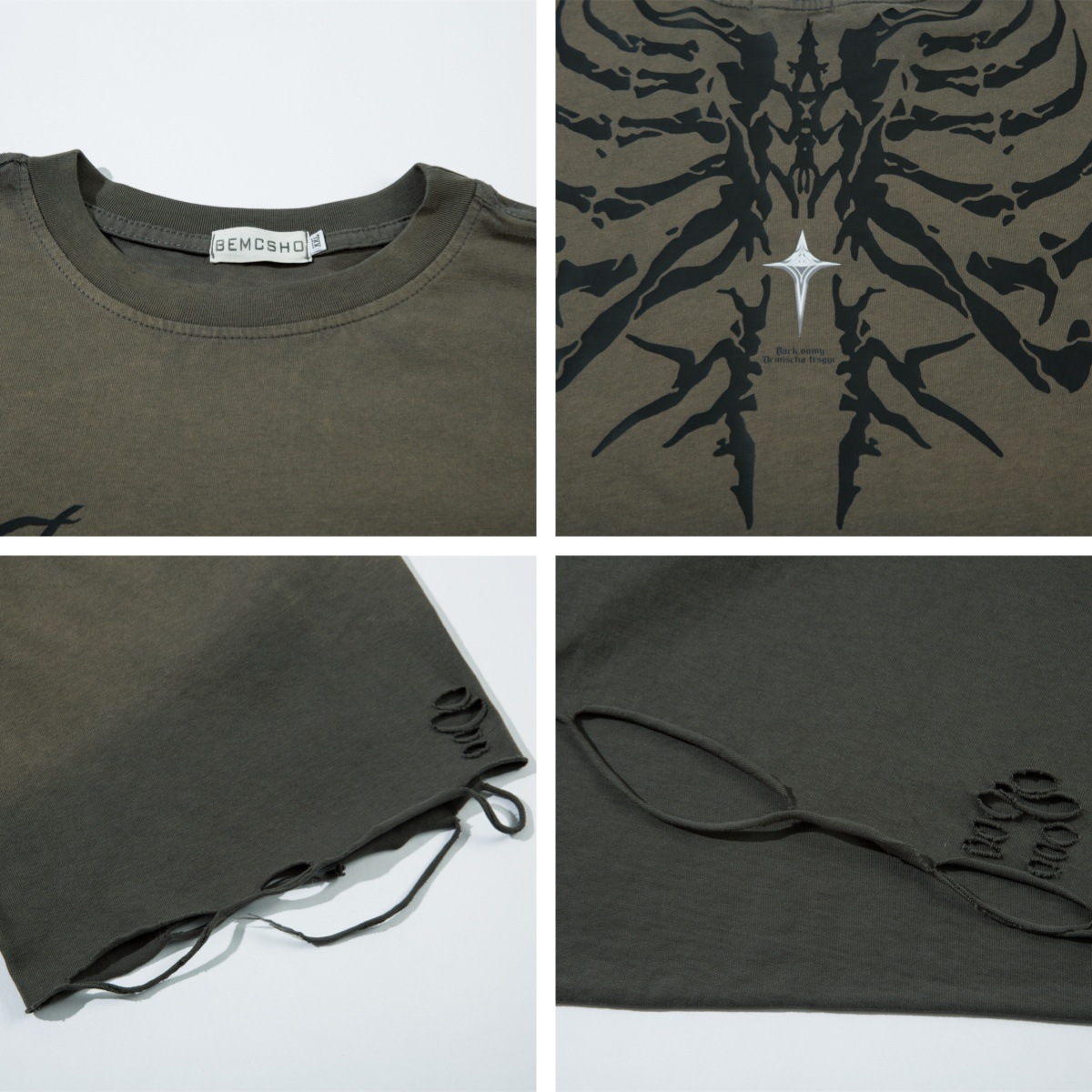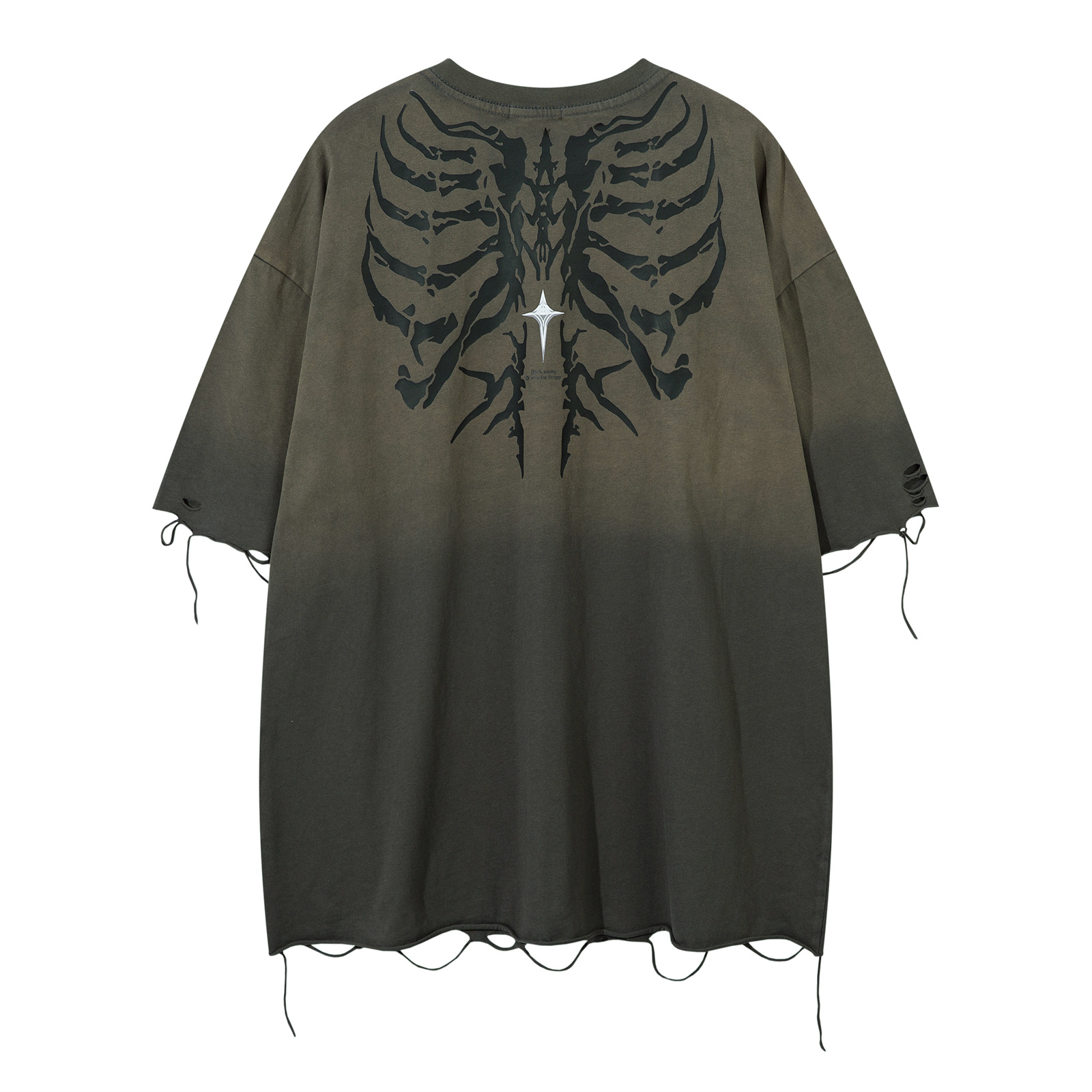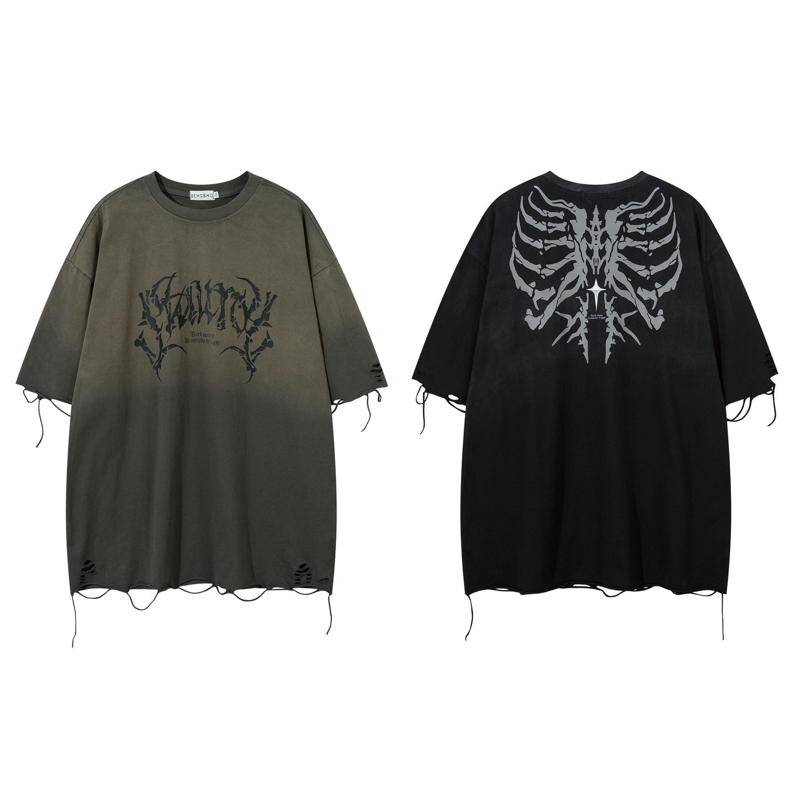 Washed Skeleton Print Damage Oversize Short Sleeve T-Shirt WN15116