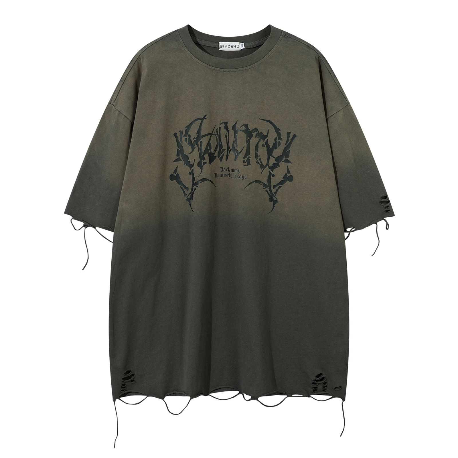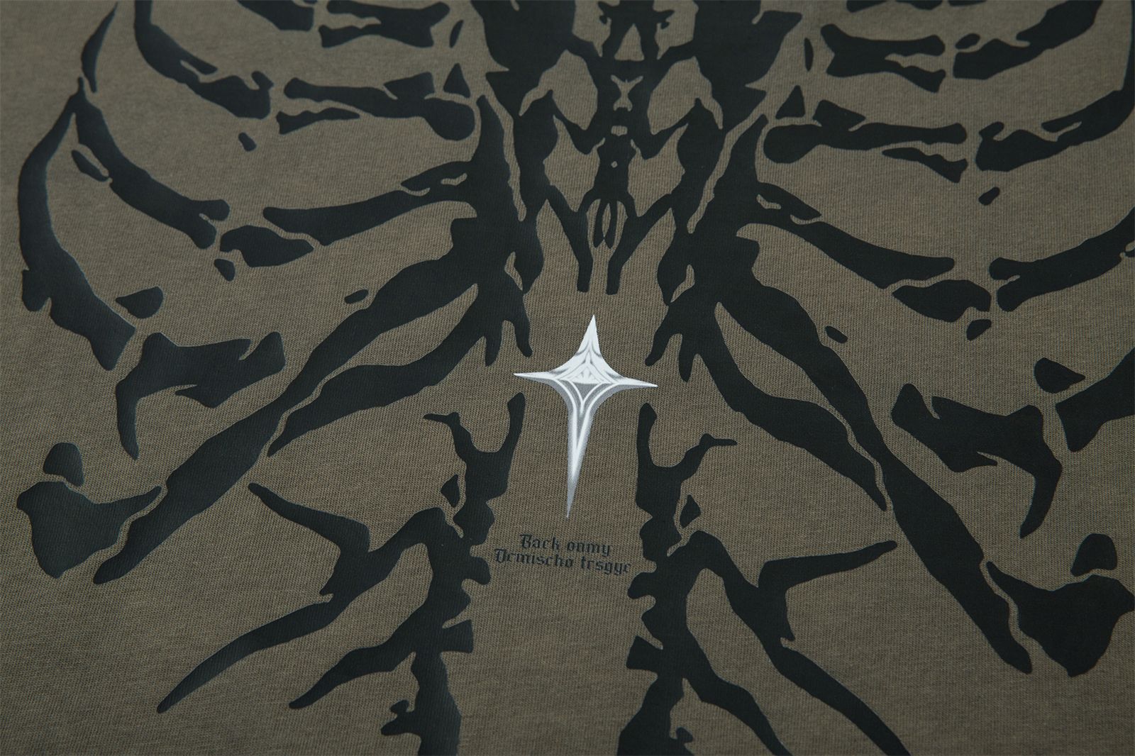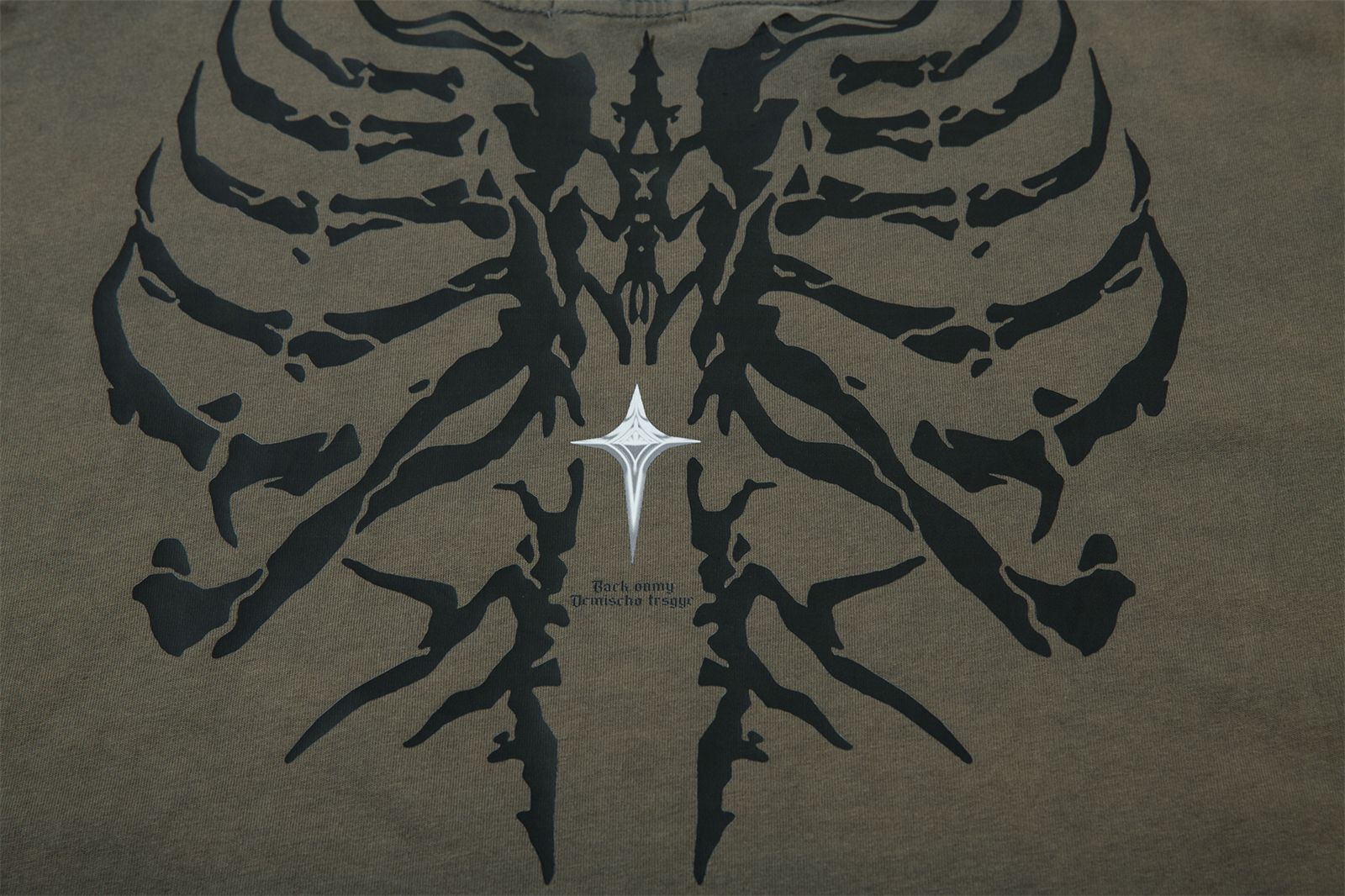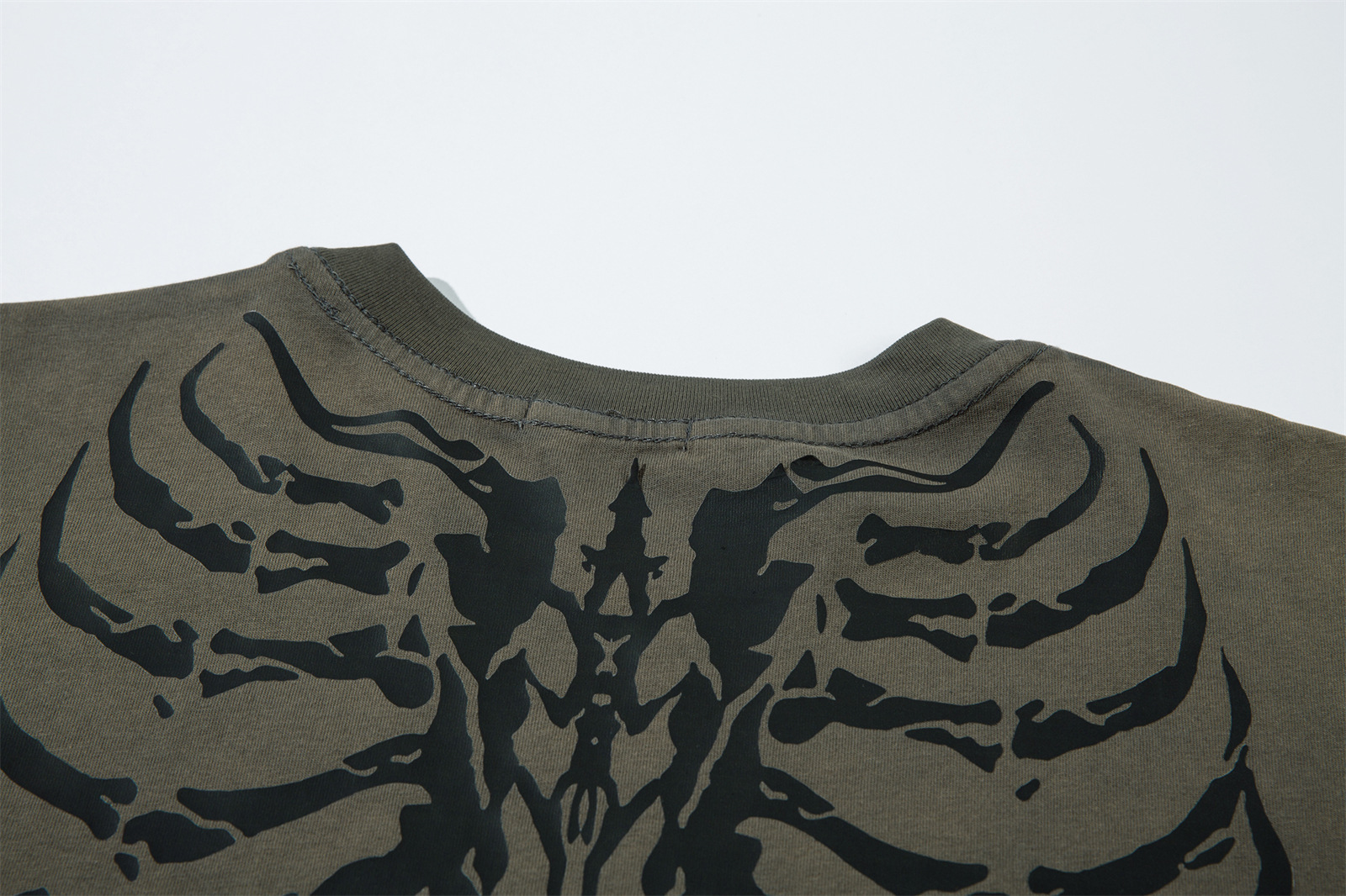 Washed Skeleton Print Damage Oversize Short Sleeve T-Shirt WN15116