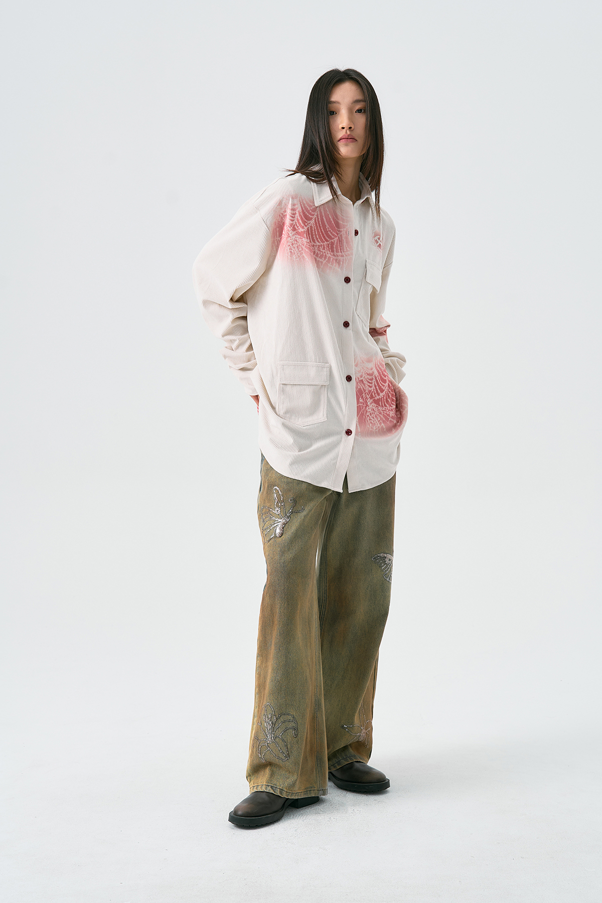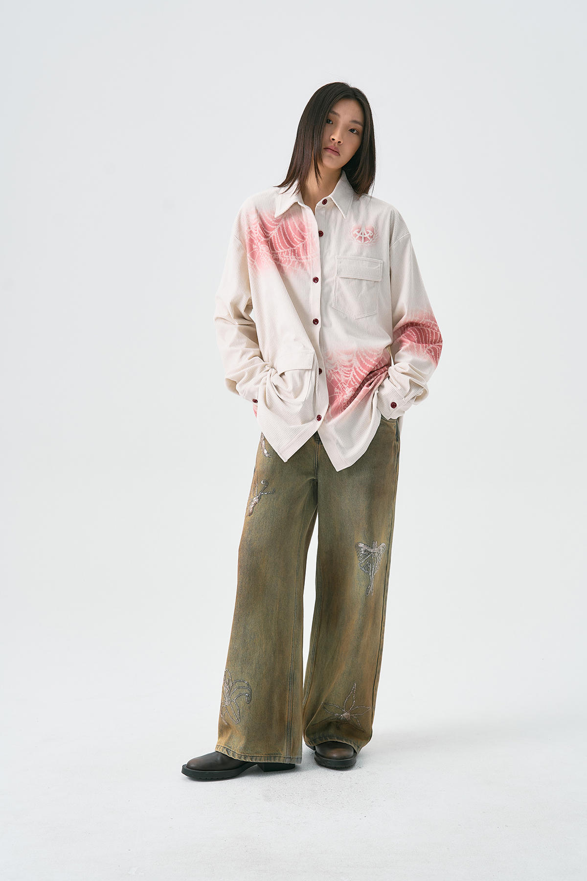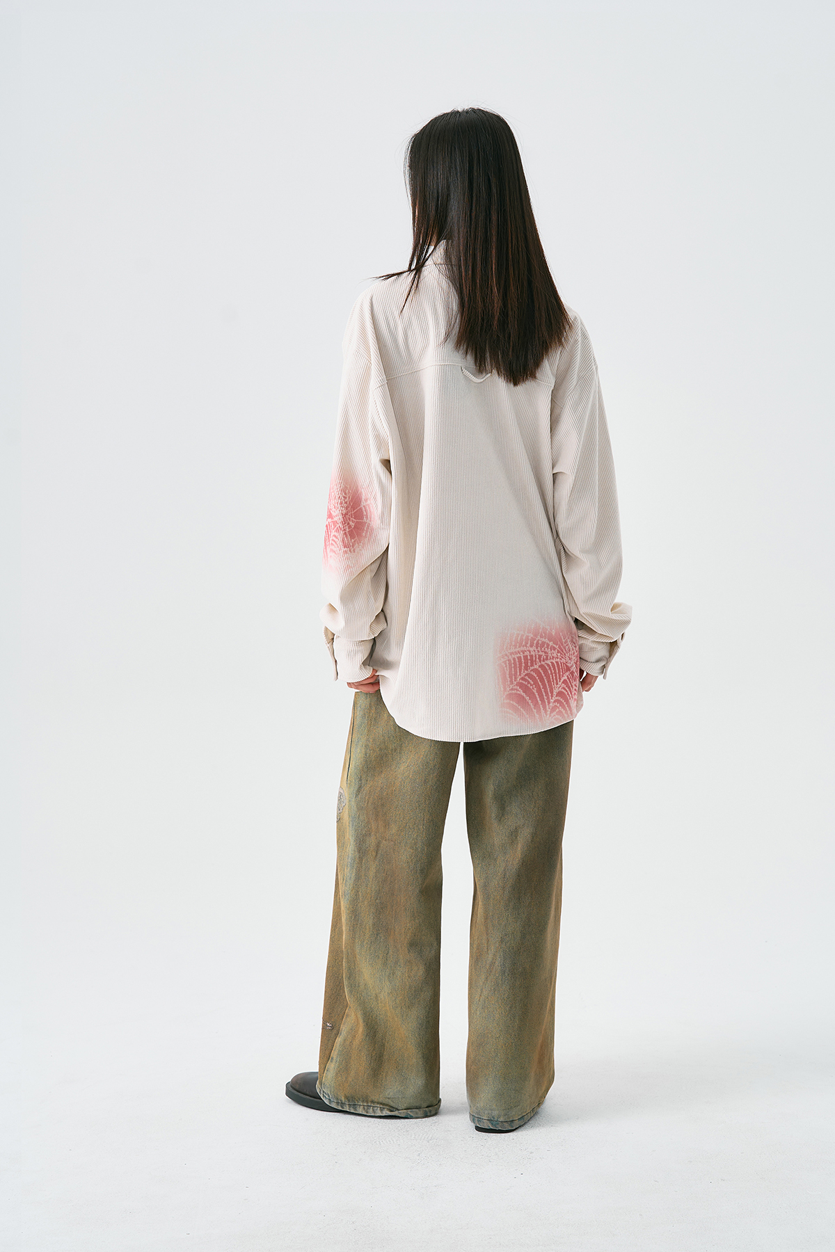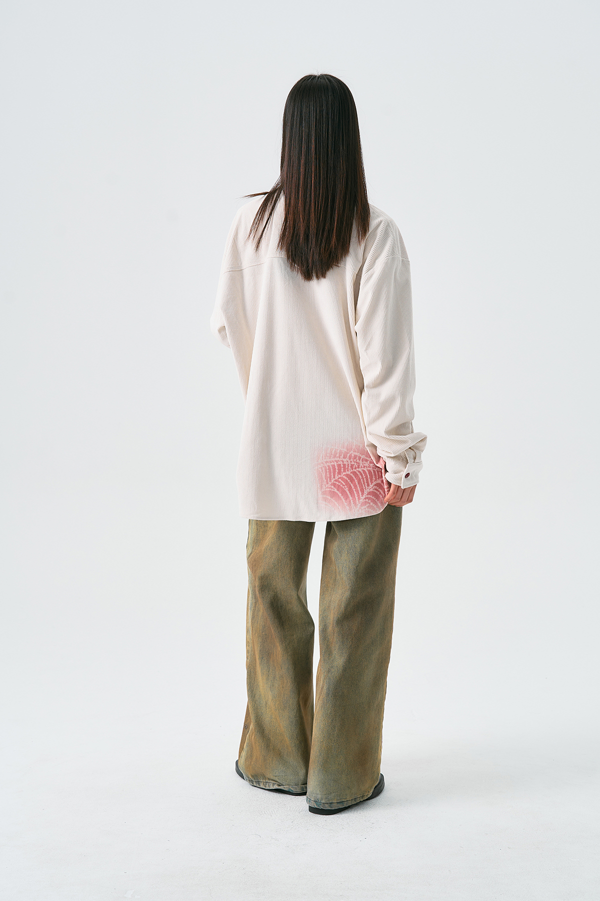 Pocket Design Corduroy Spray Print Long Sleeve Shirt WN18921
