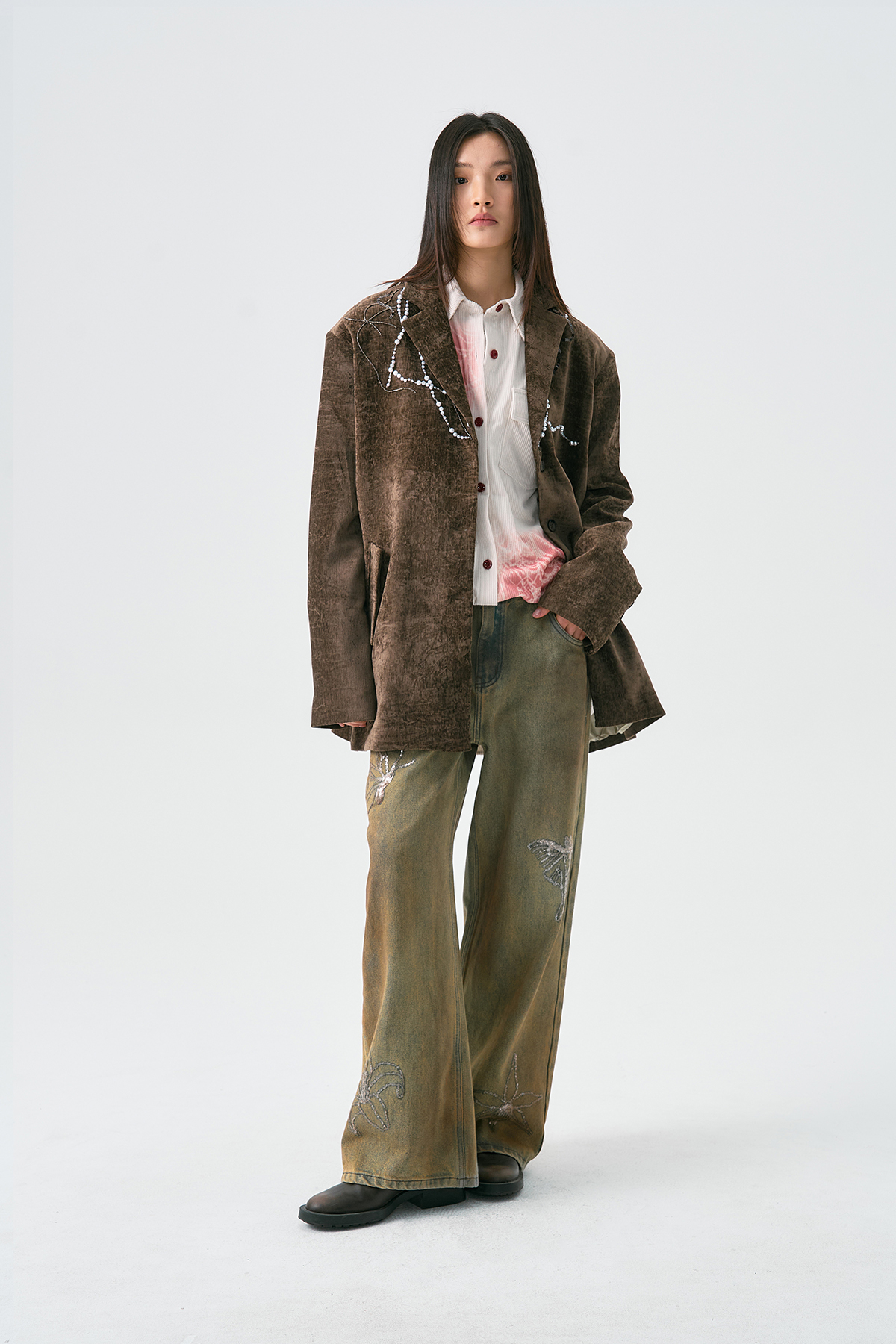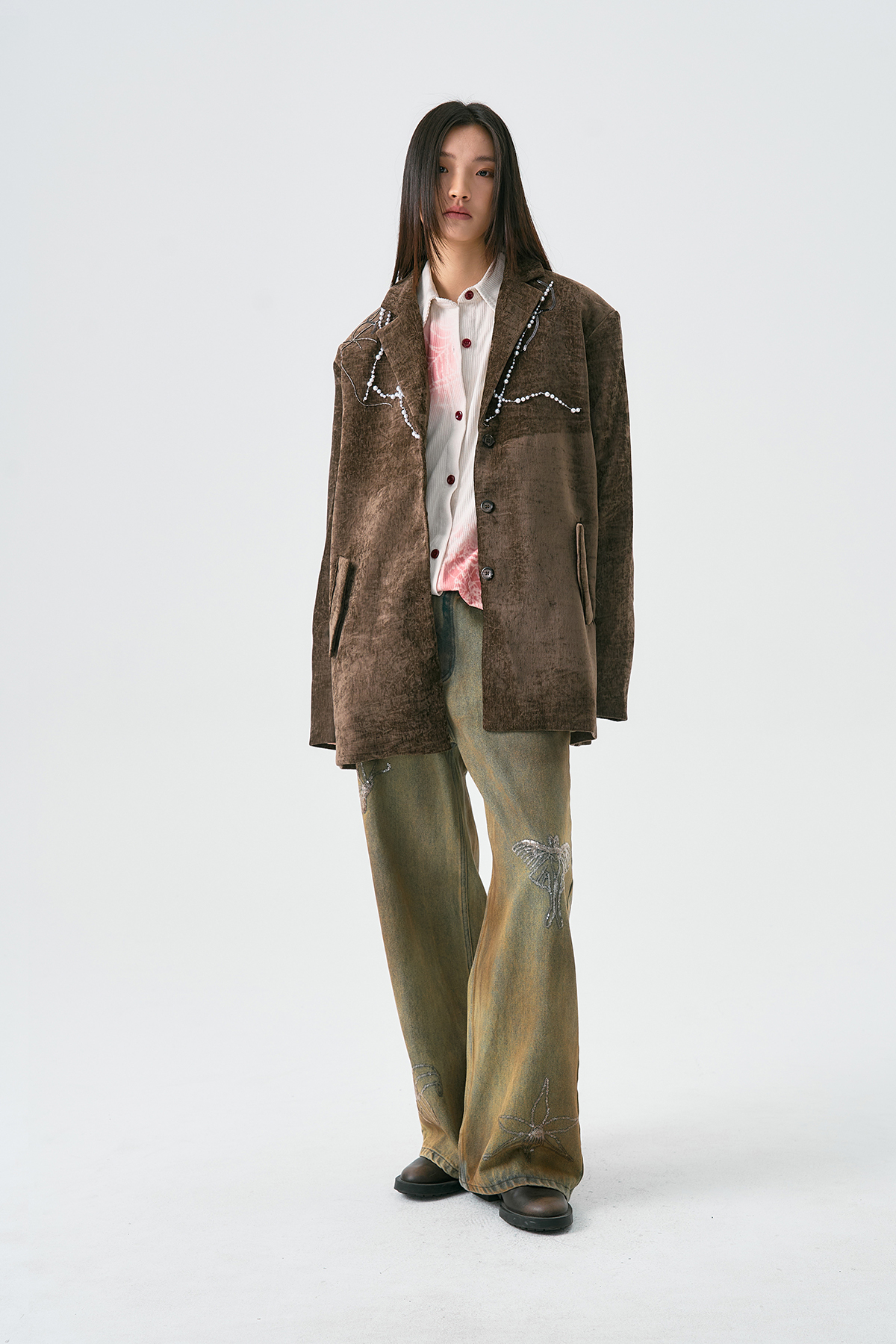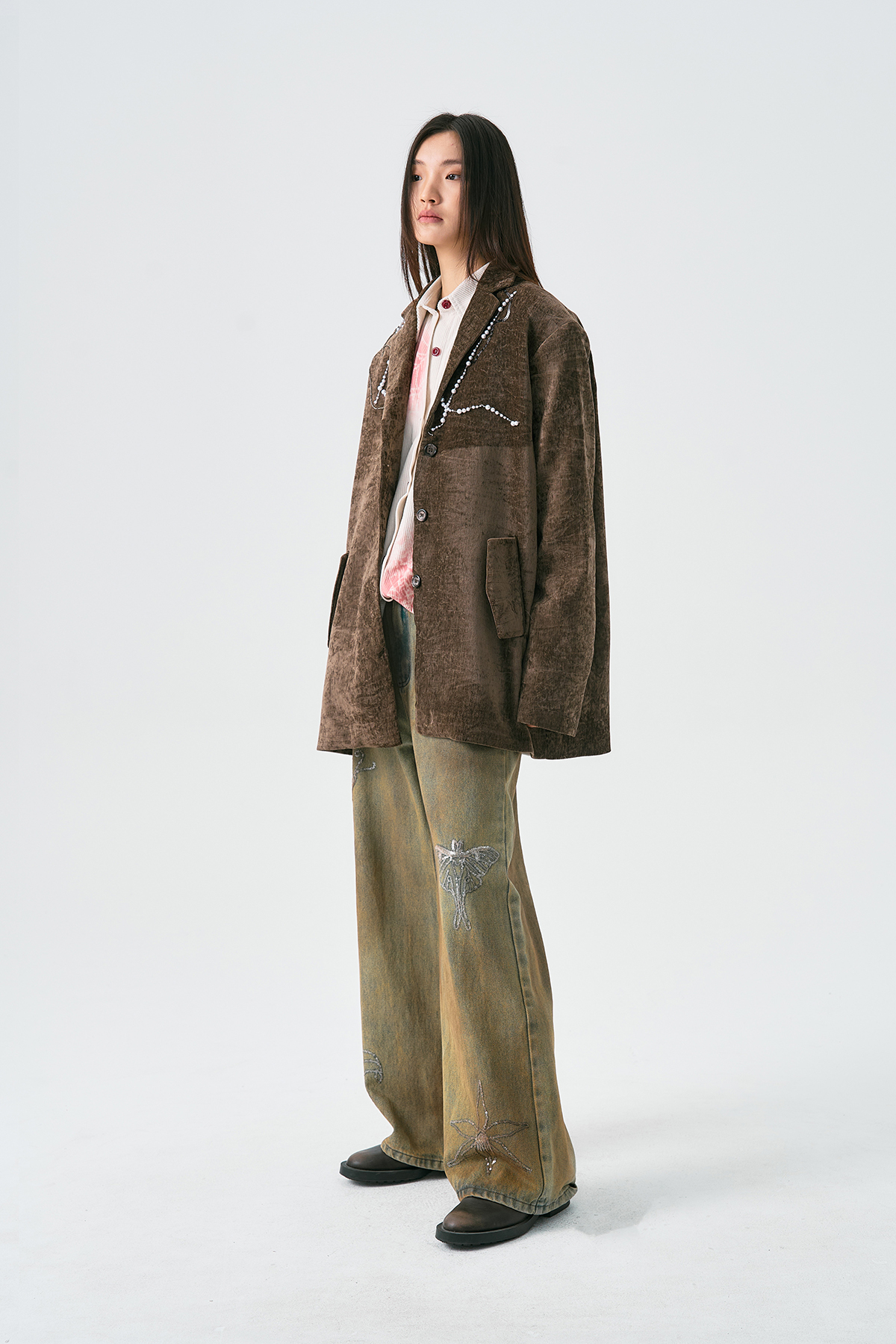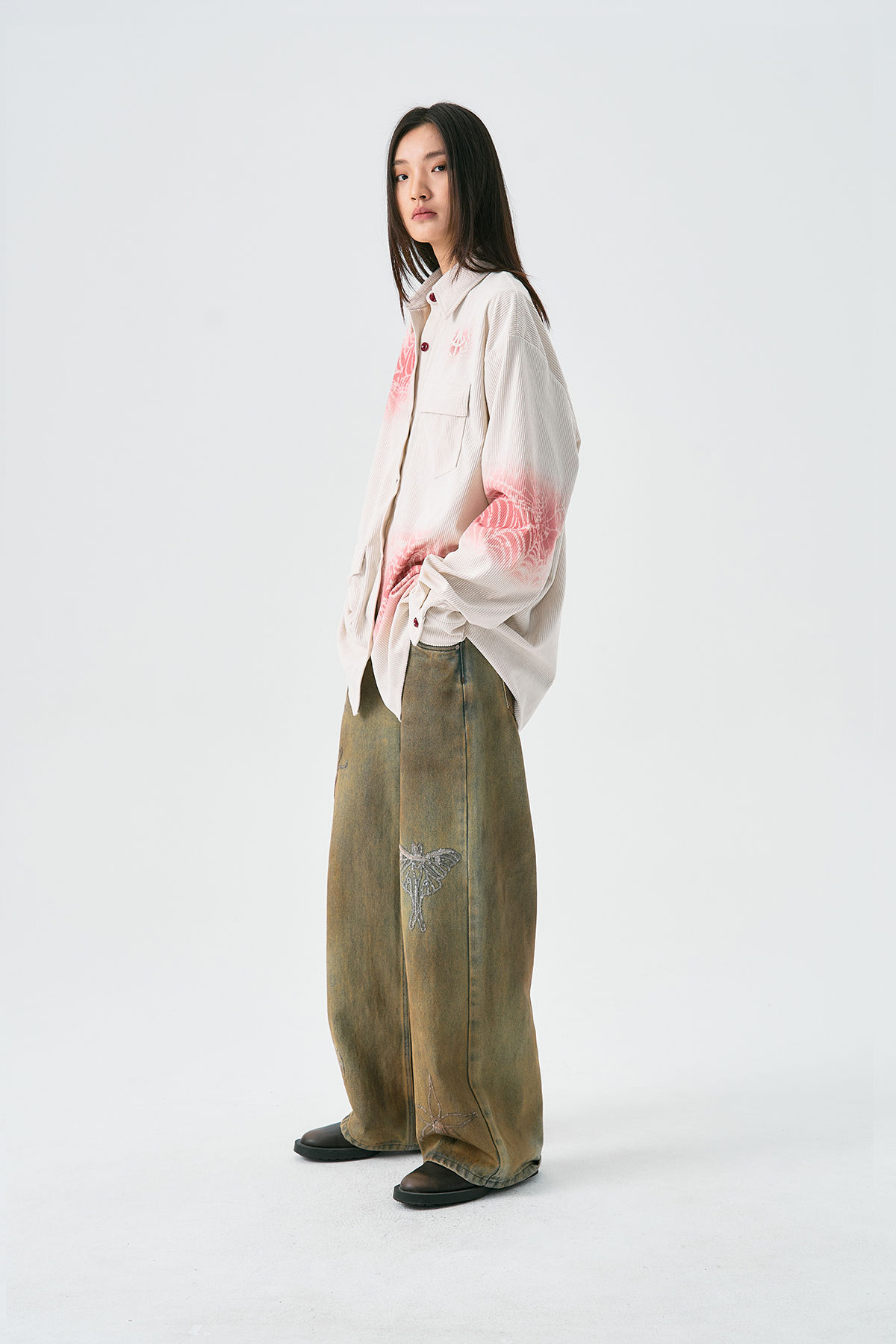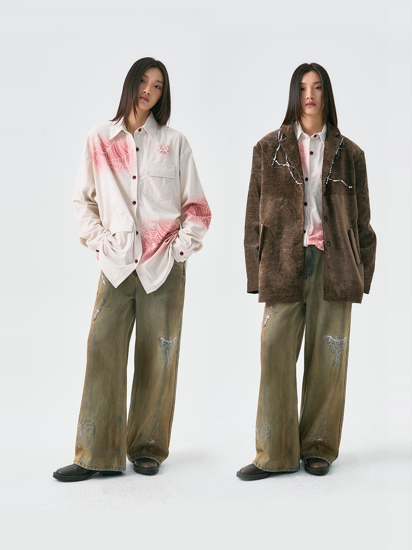 Pocket Design Corduroy Spray Print Long Sleeve Shirt WN18921