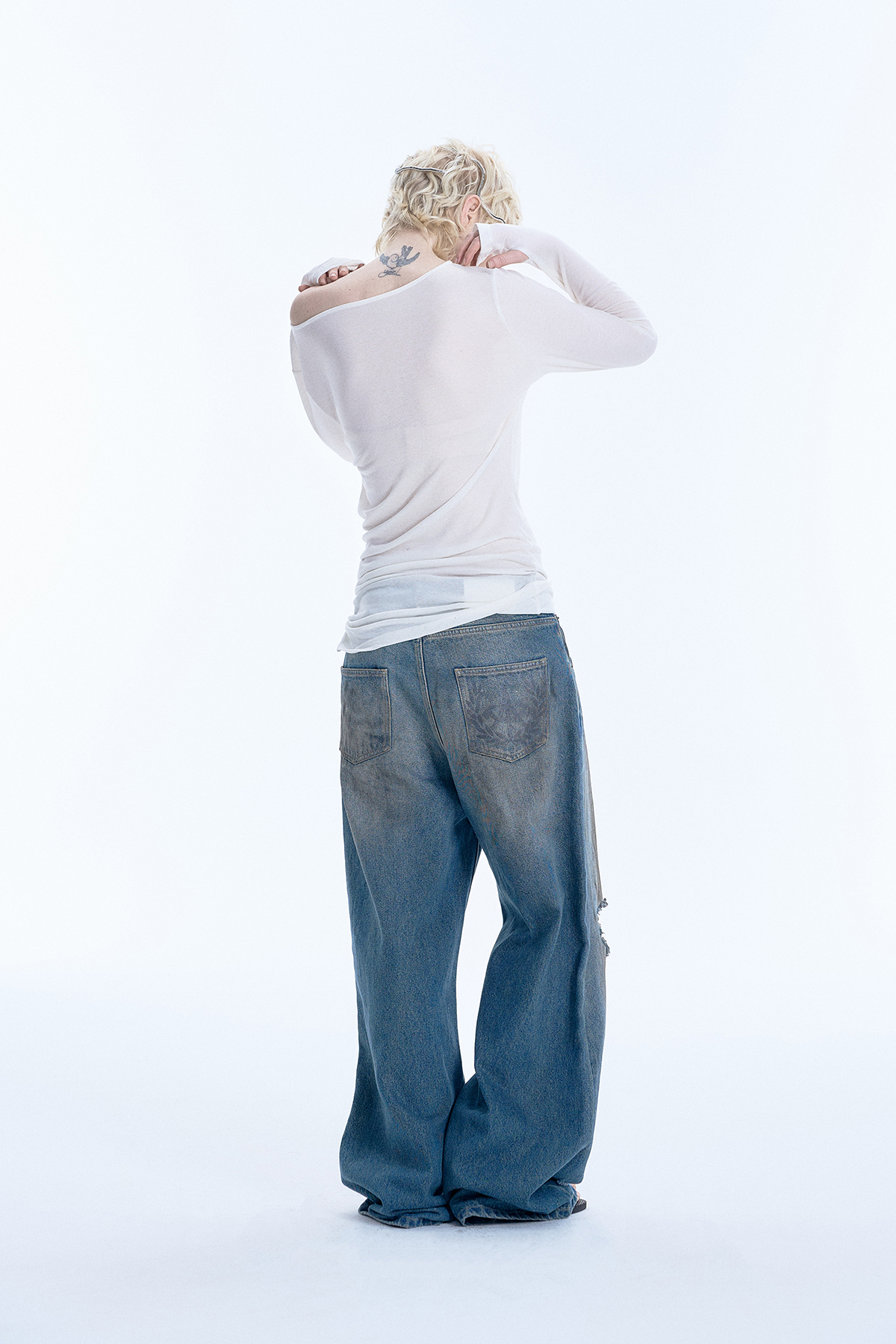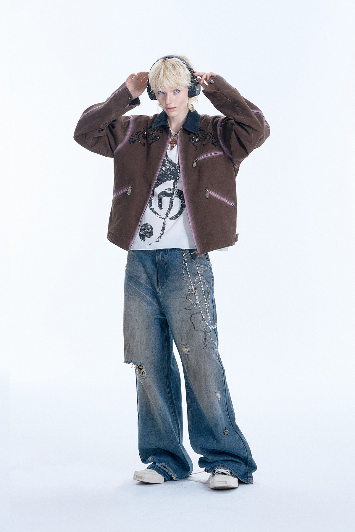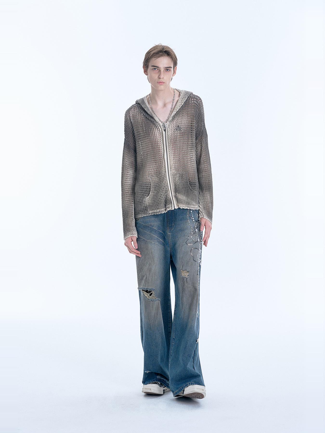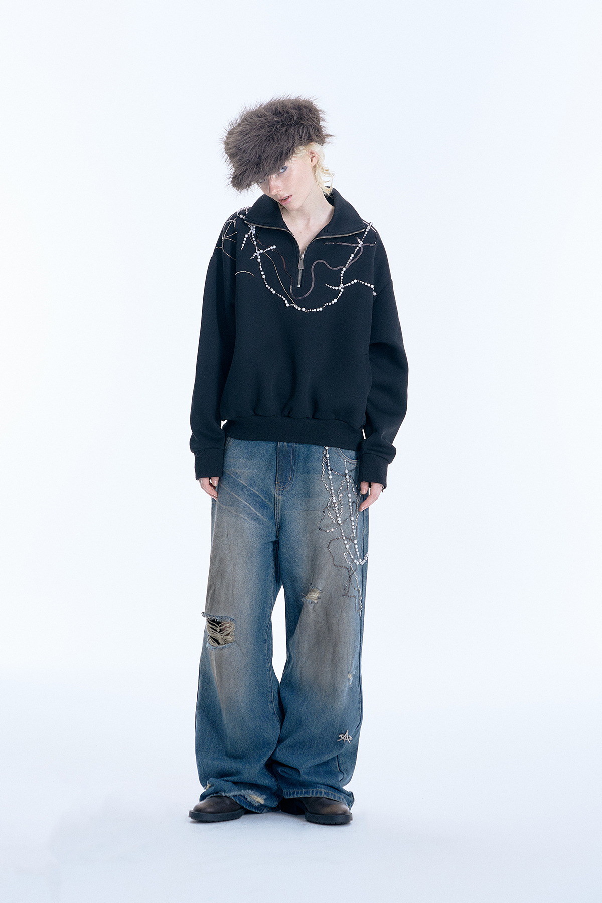 Sequin Embroidery Beaded Design Damage Wash Denim Jeans WN18927