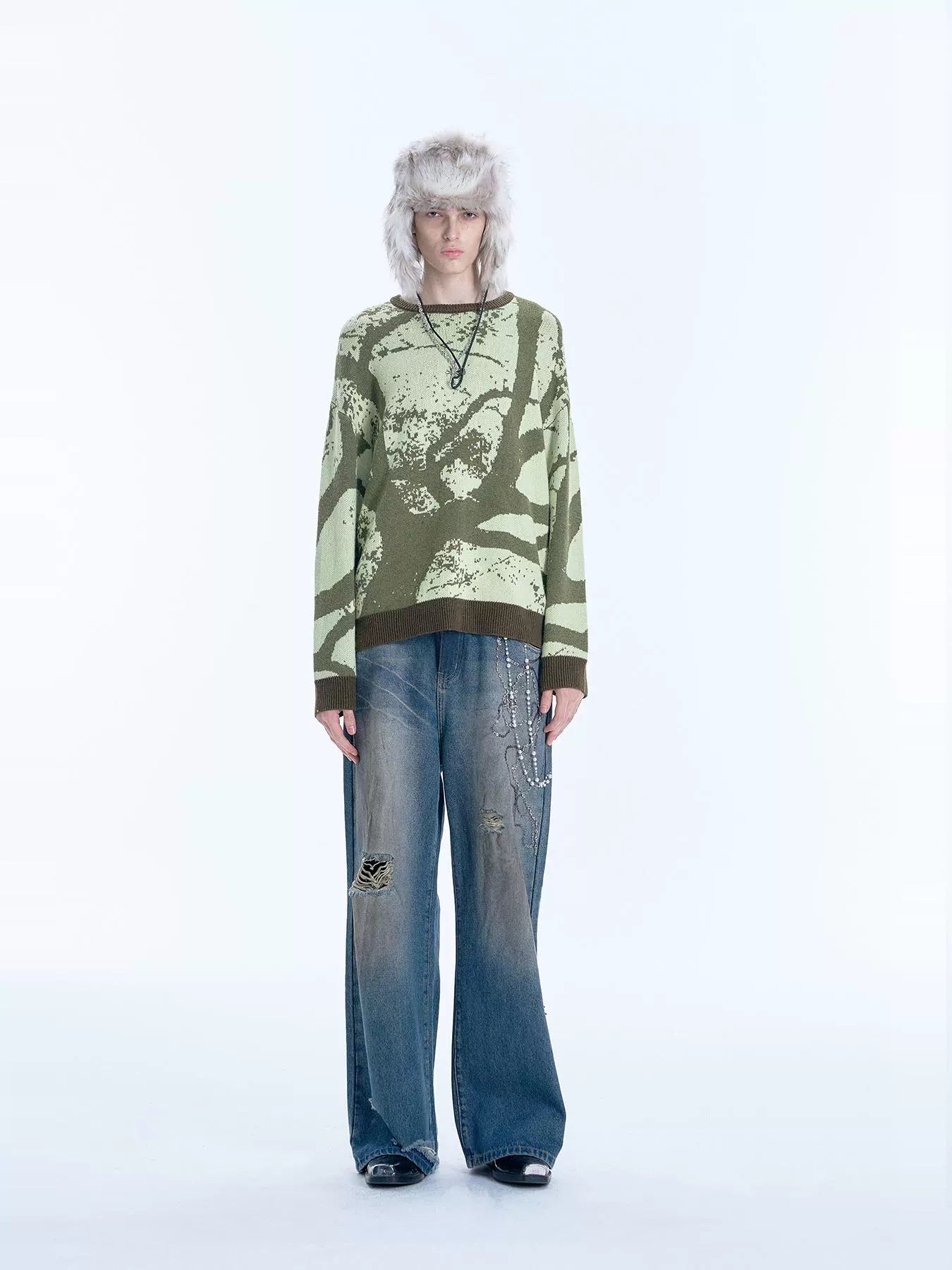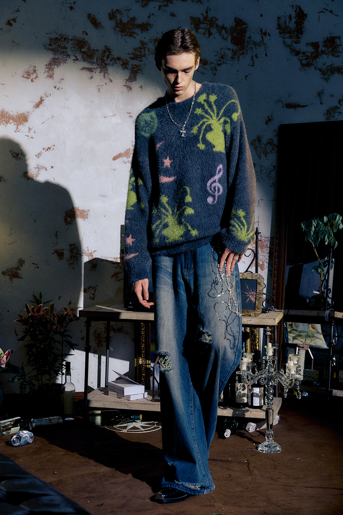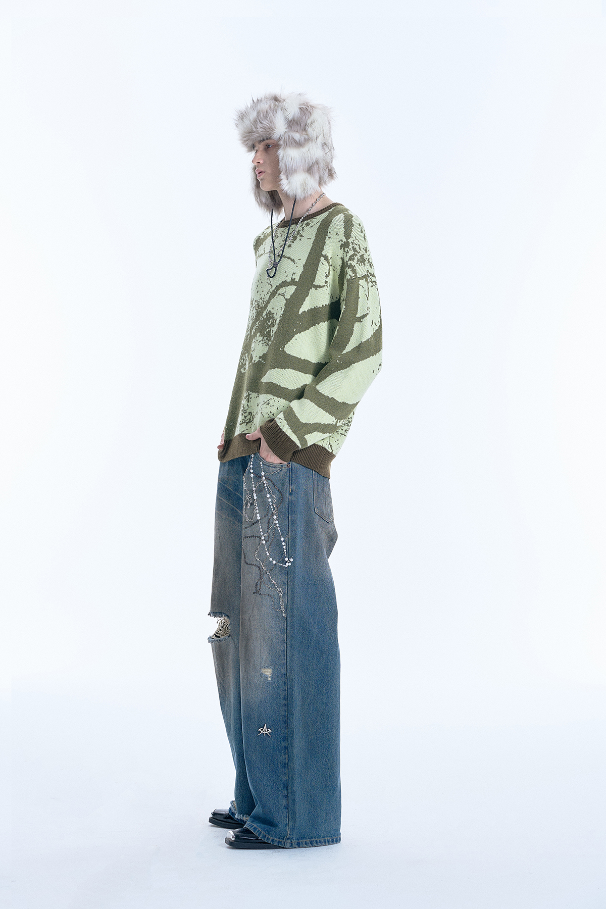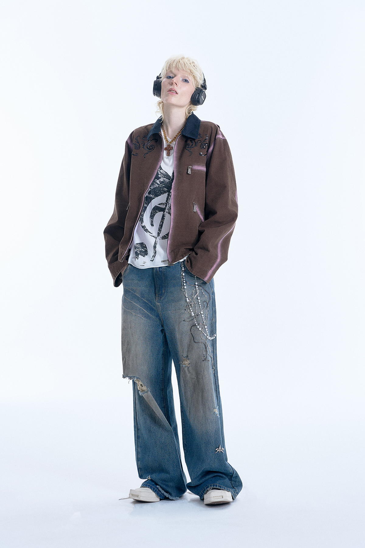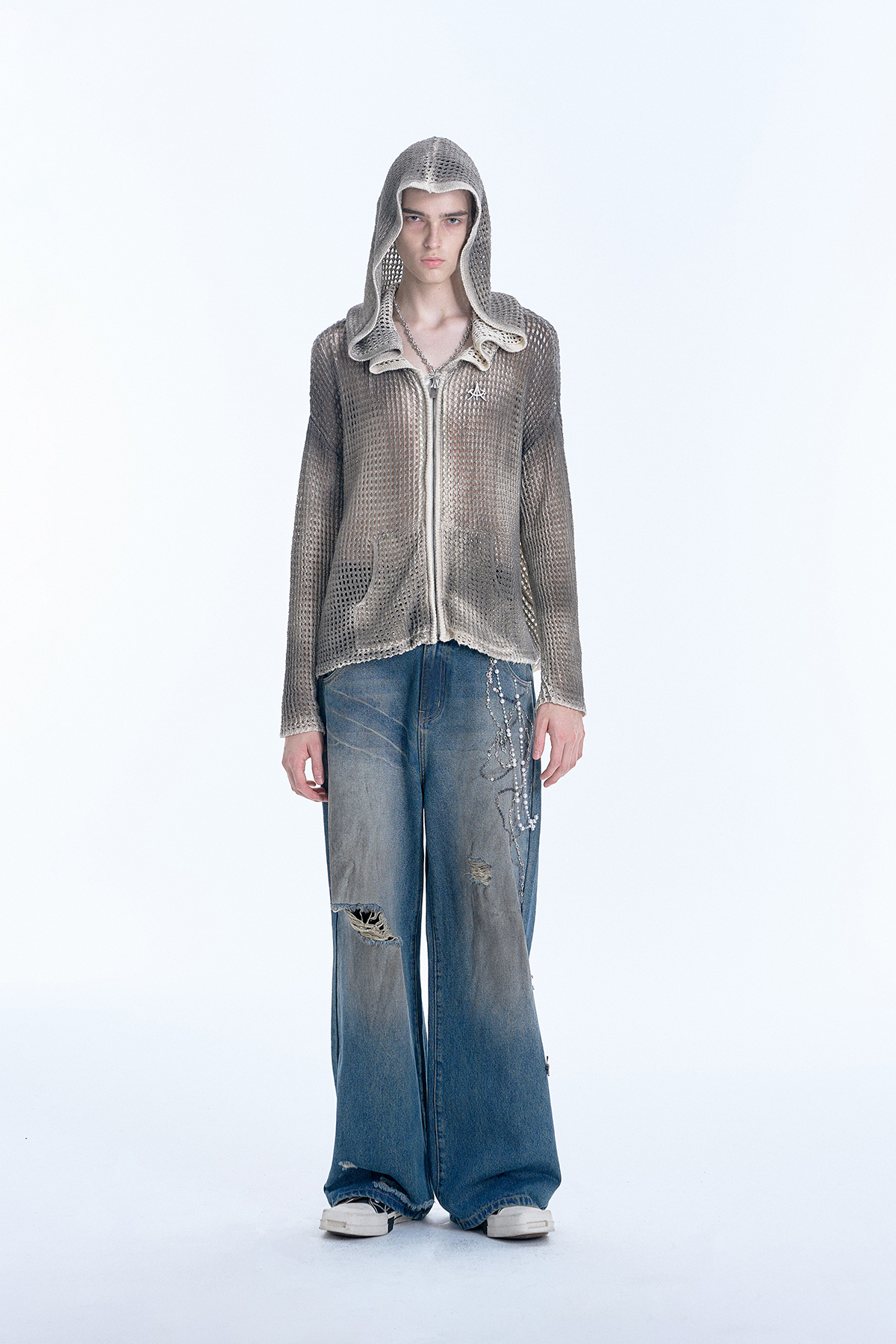 Sequin Embroidery Beaded Design Damage Wash Denim Jeans WN18927