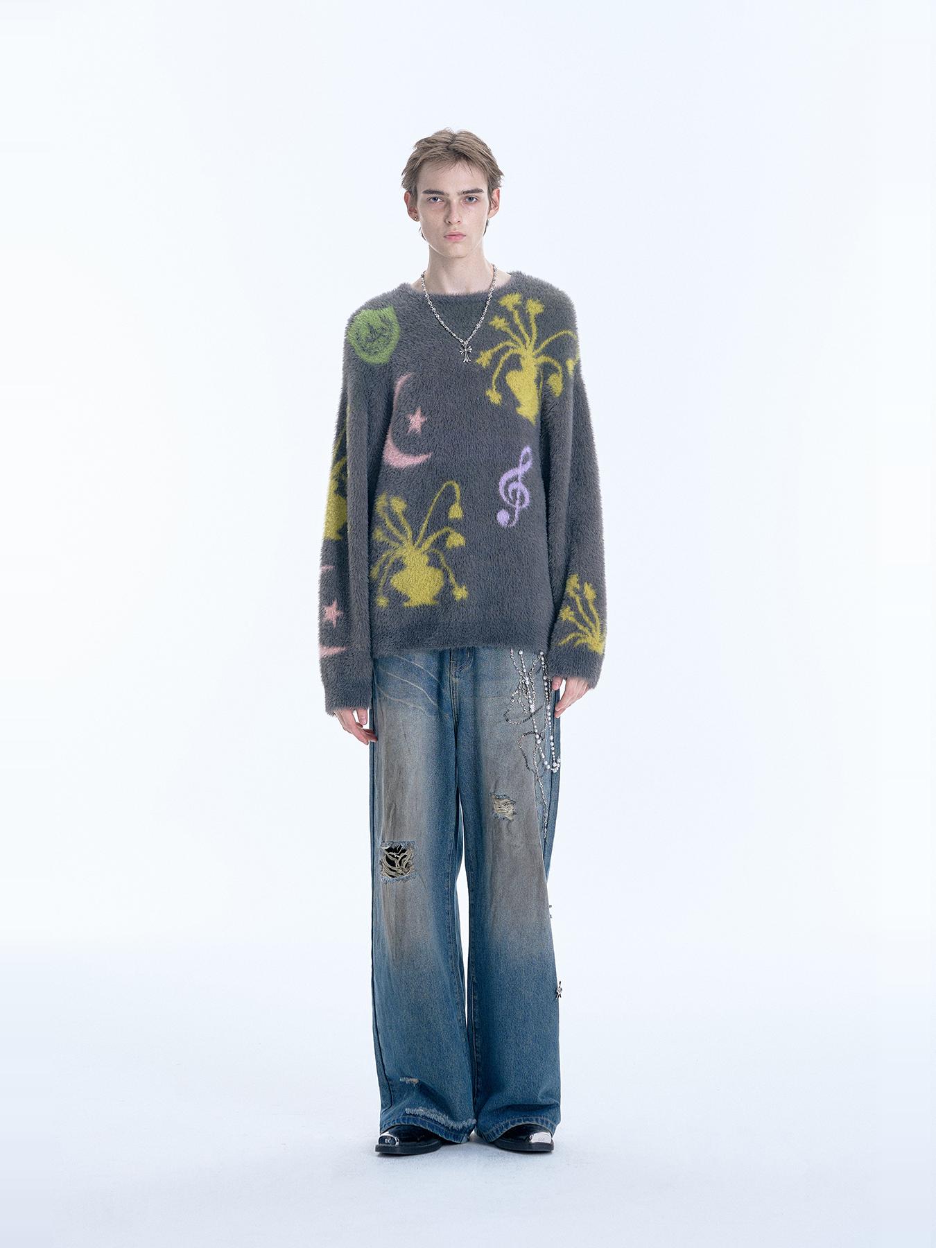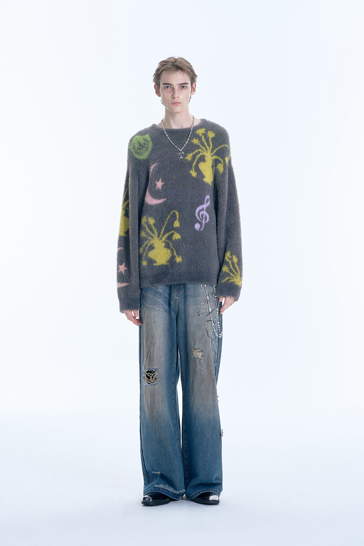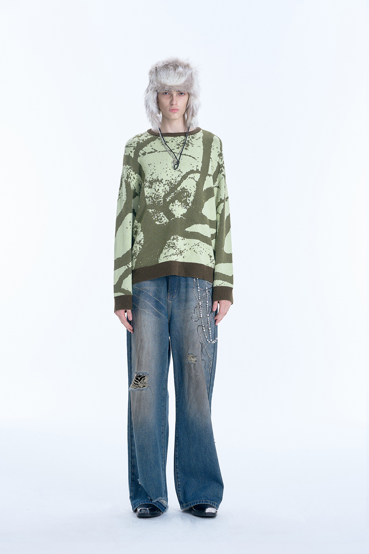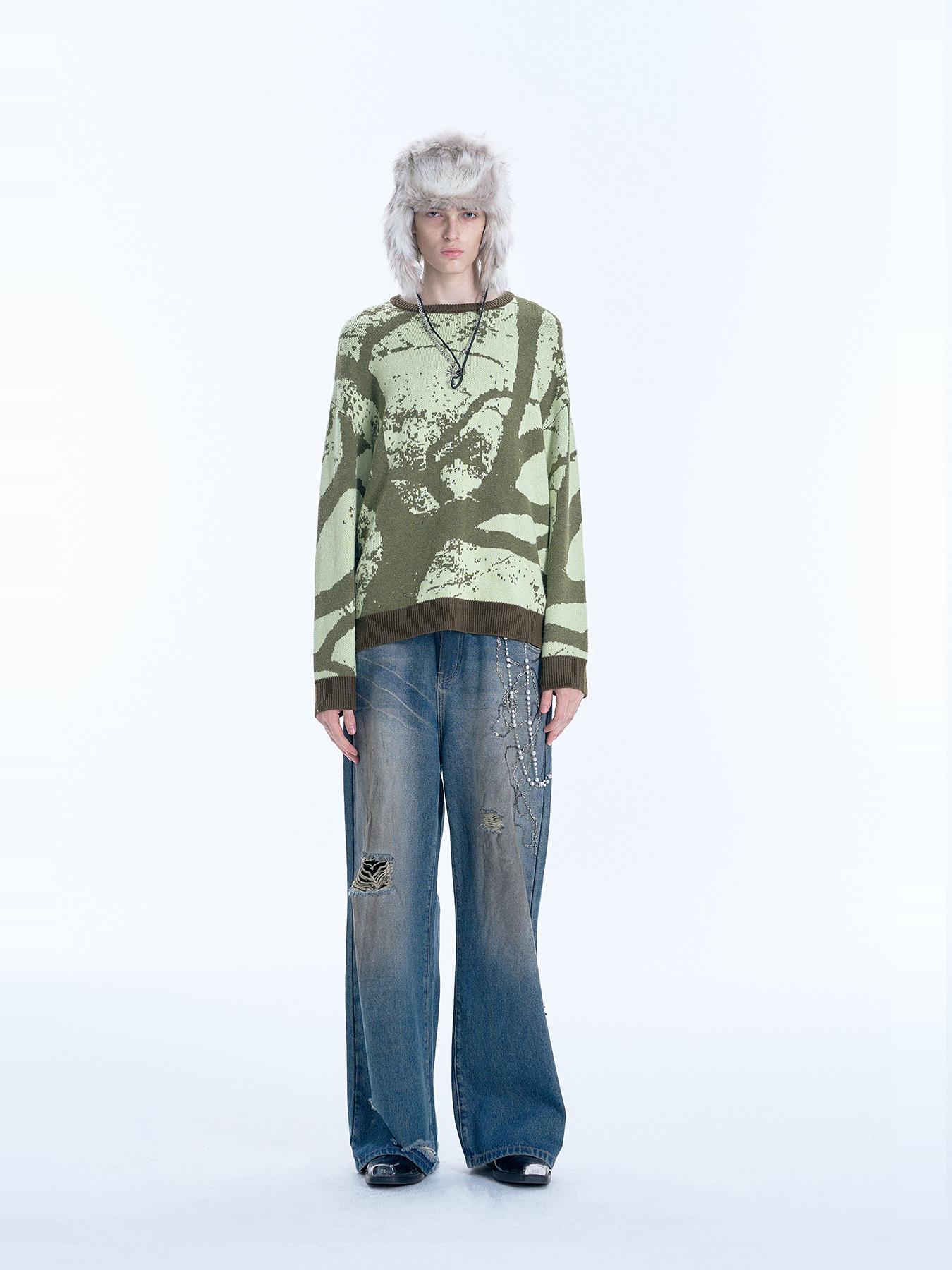 Sequin Embroidery Beaded Design Damage Wash Denim Jeans WN18927